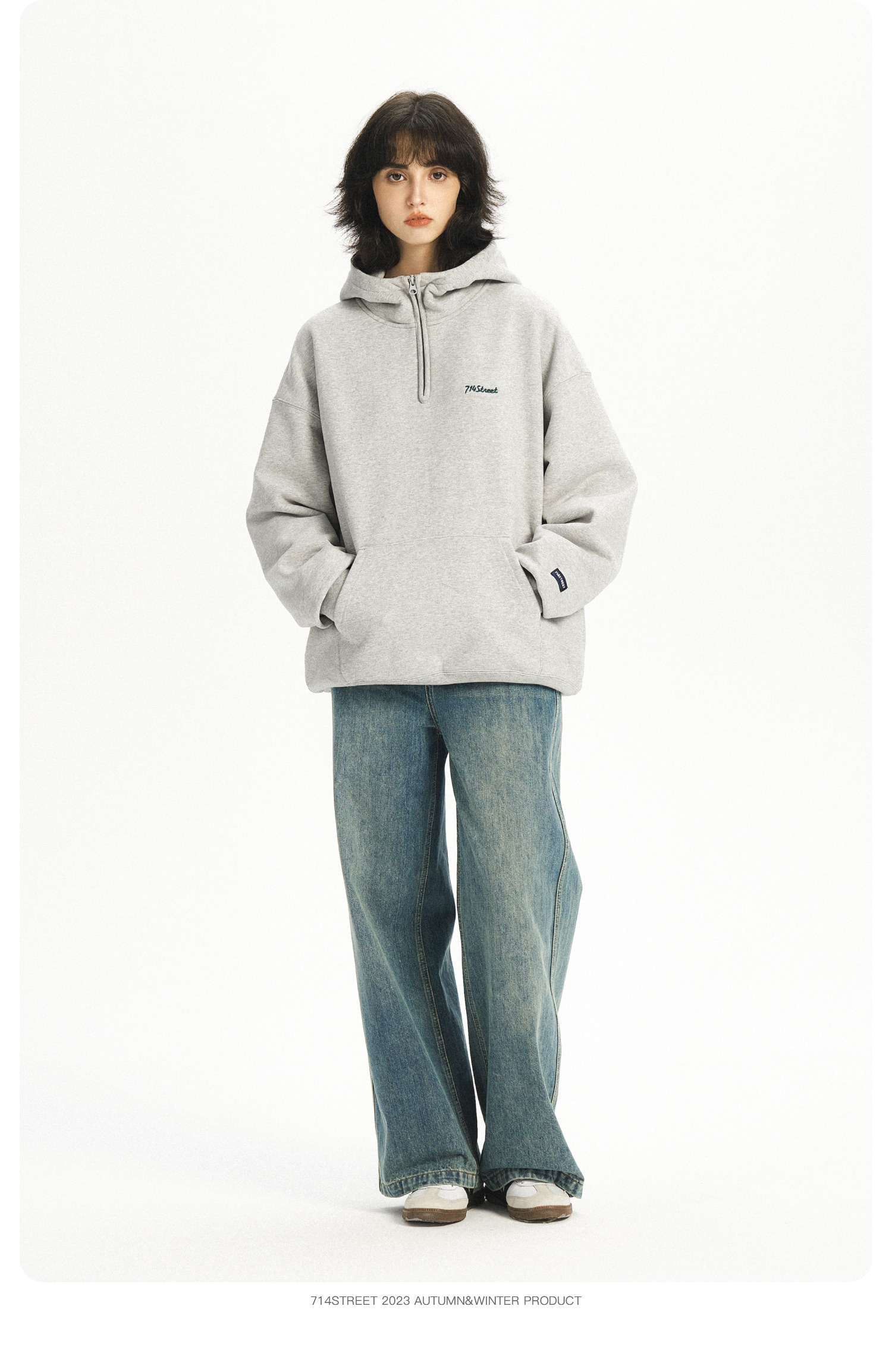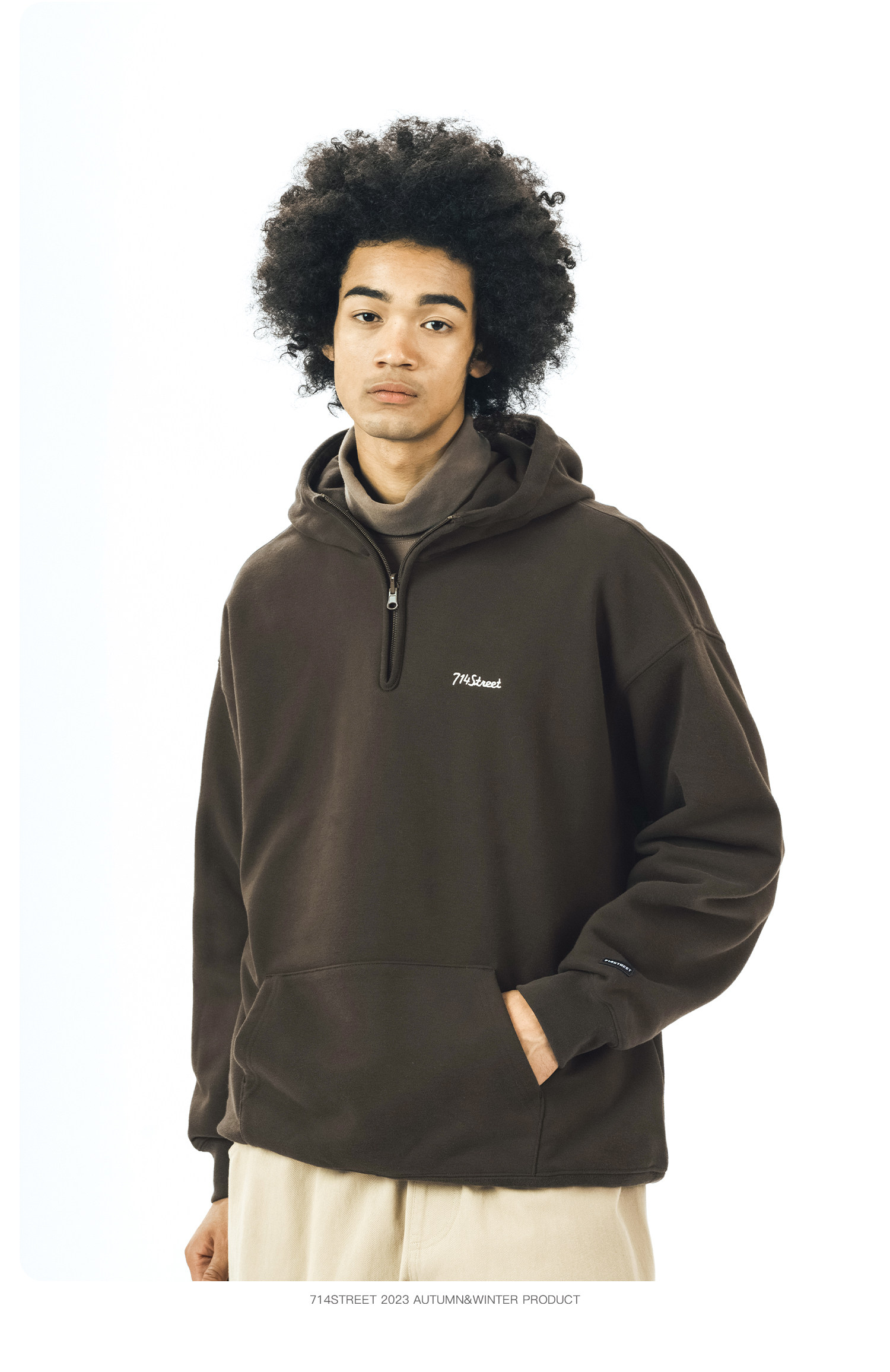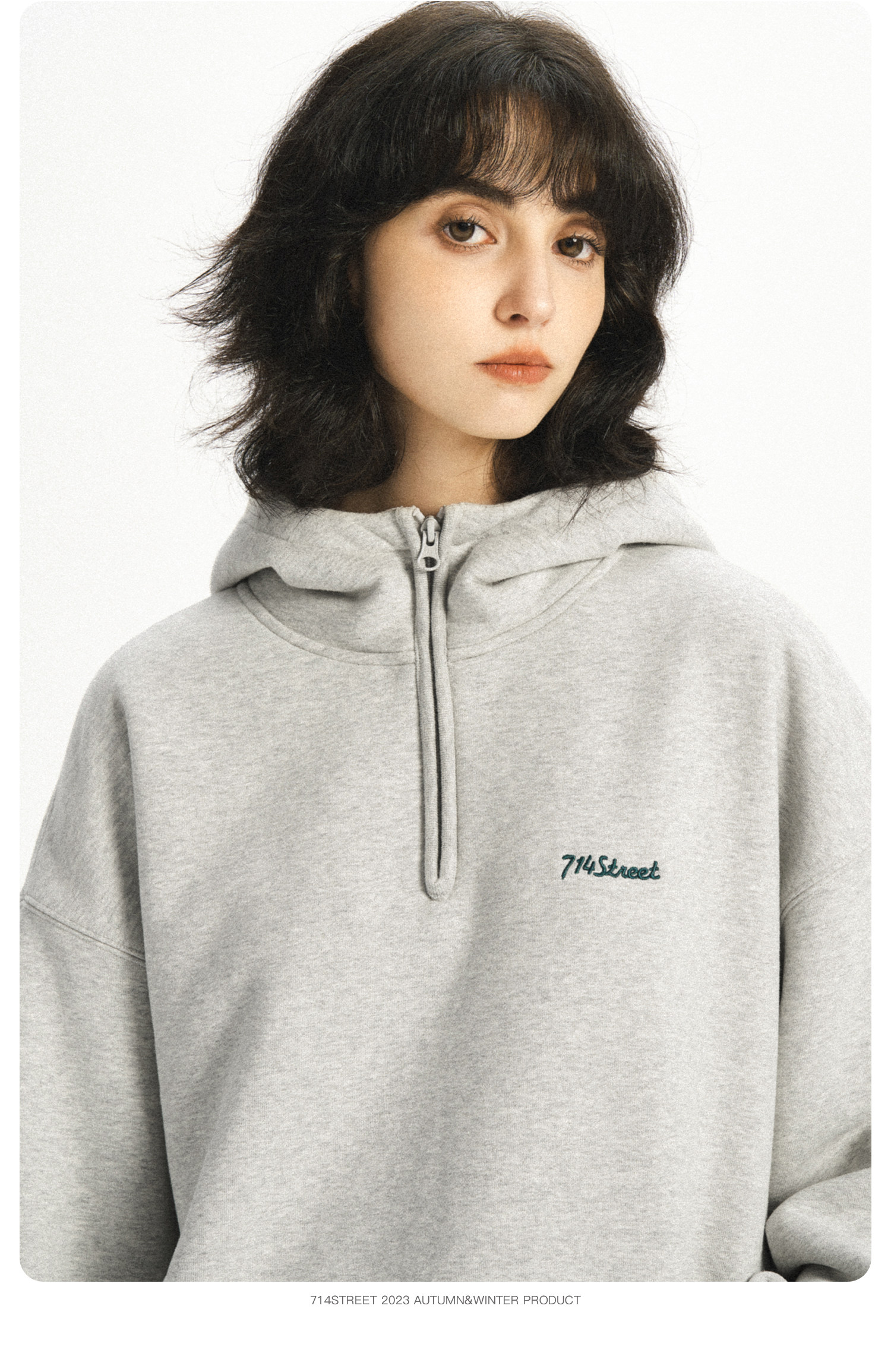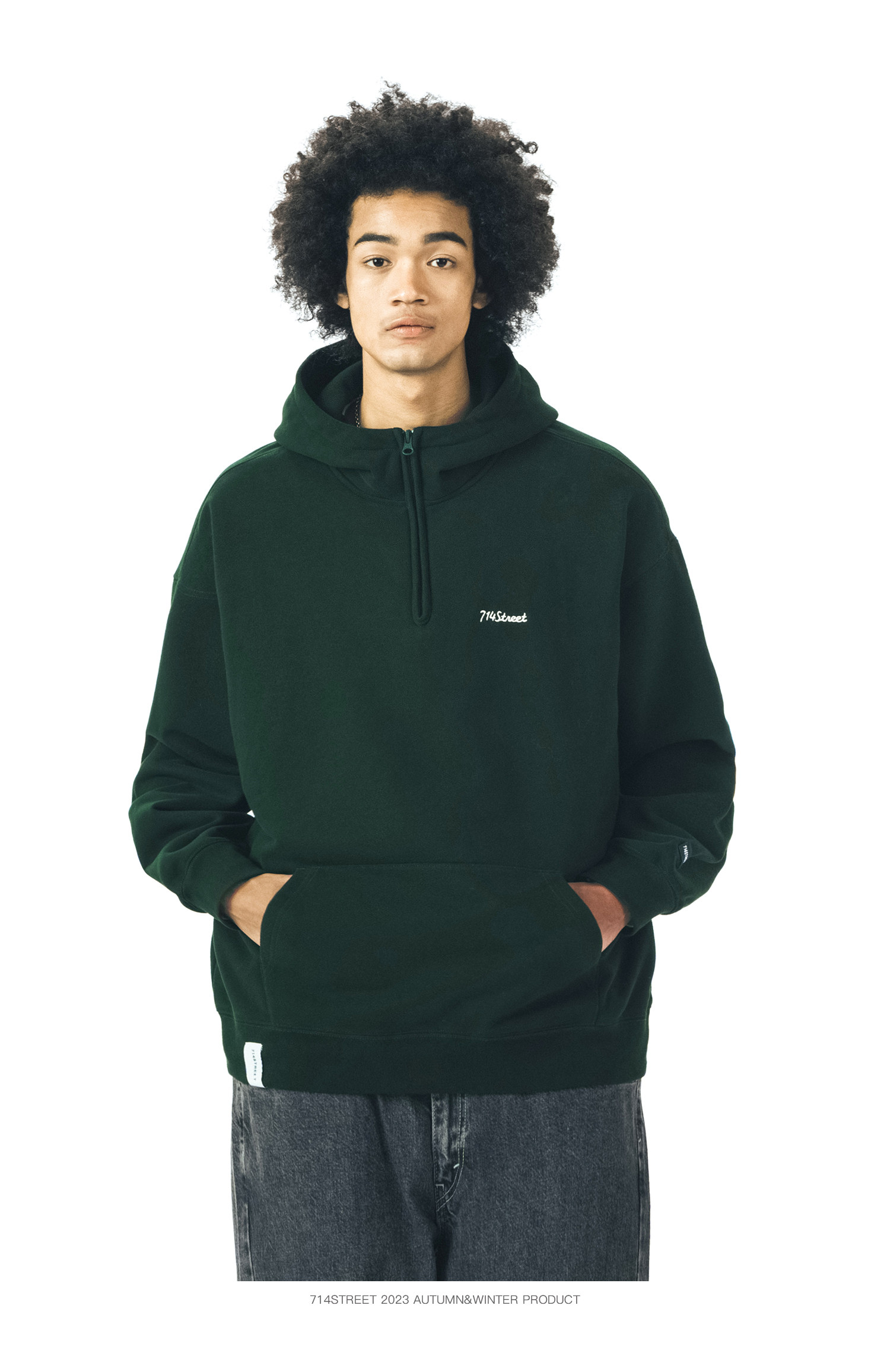 714street半拉链美式连帽卫衣男女2024春秋情侣装日系休闲外套