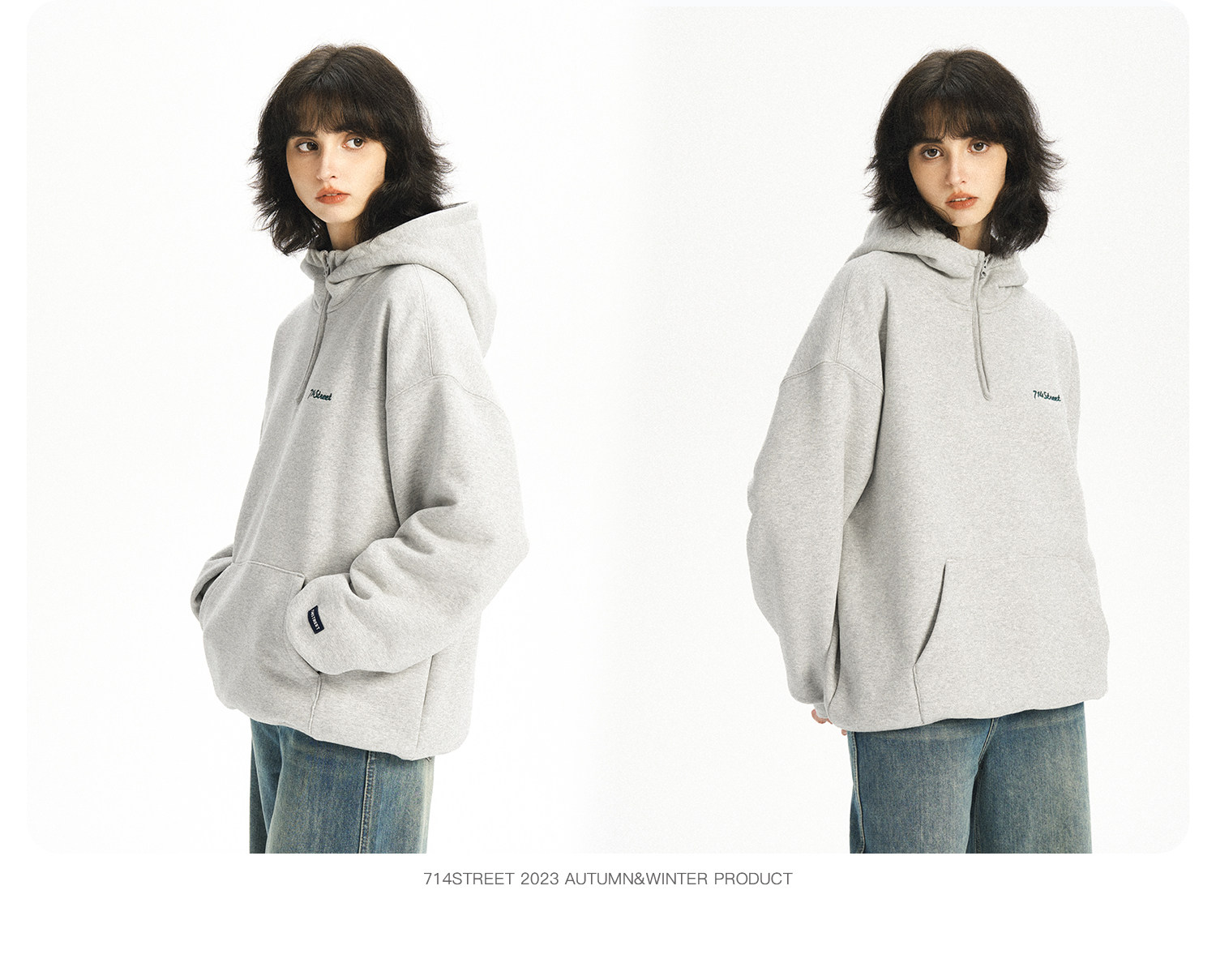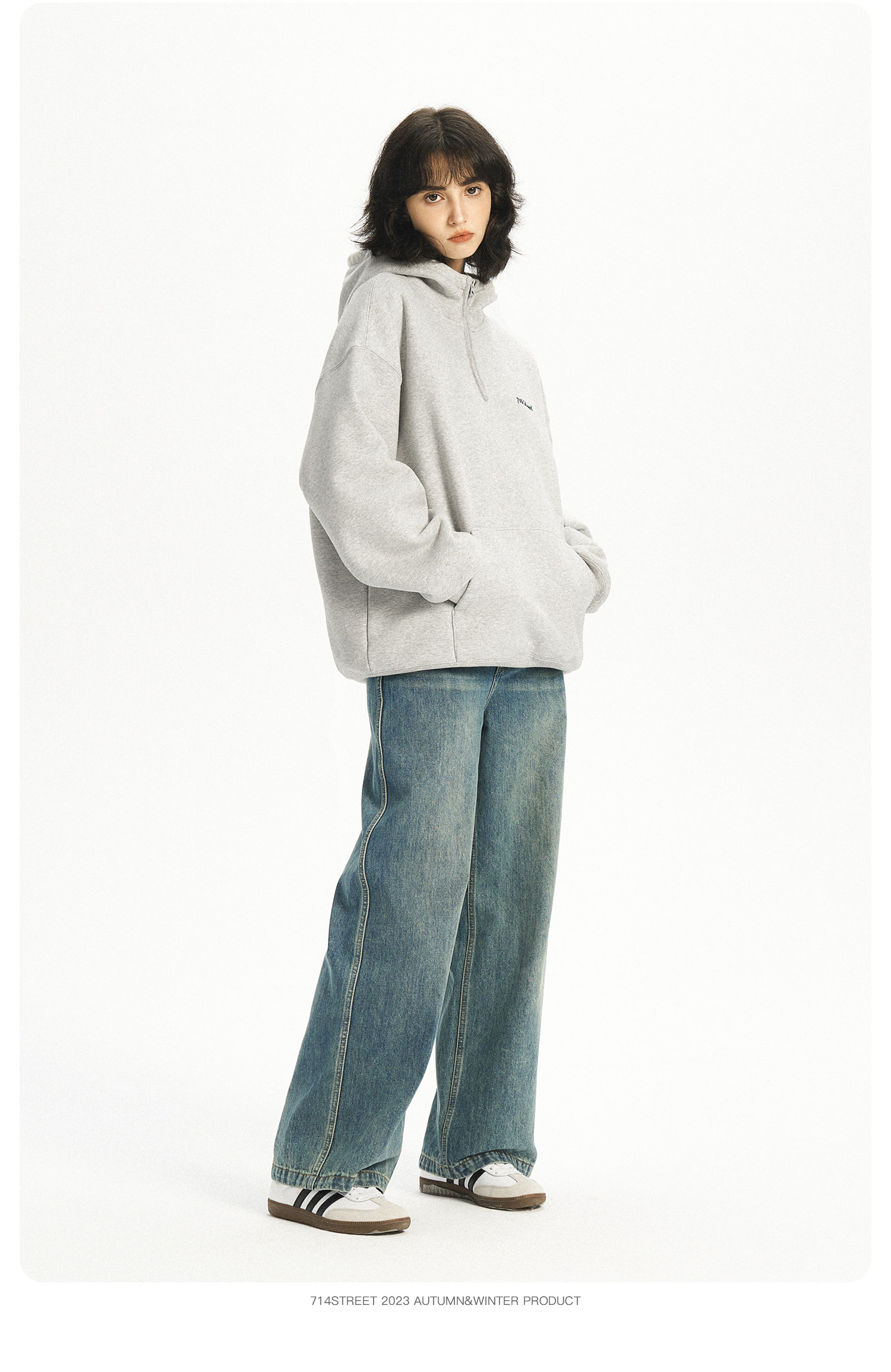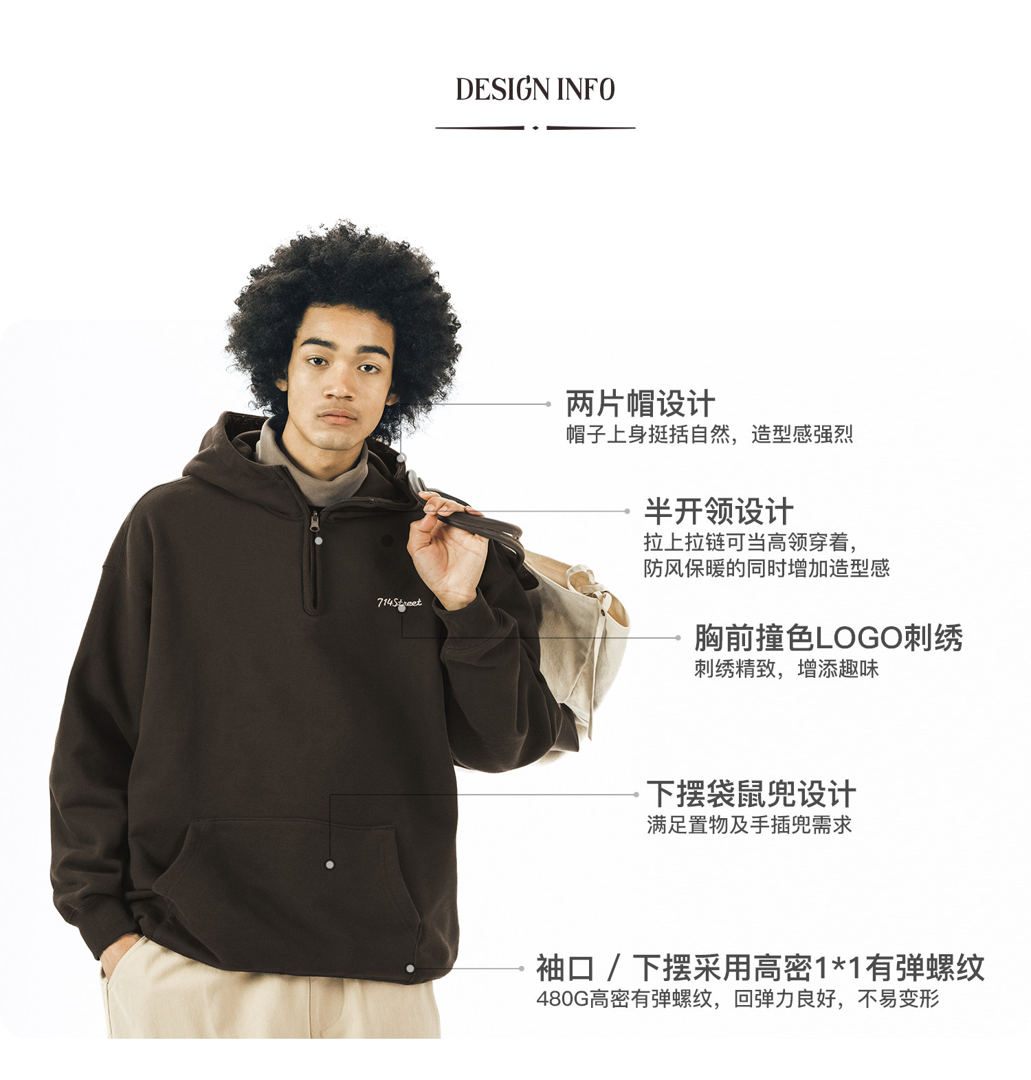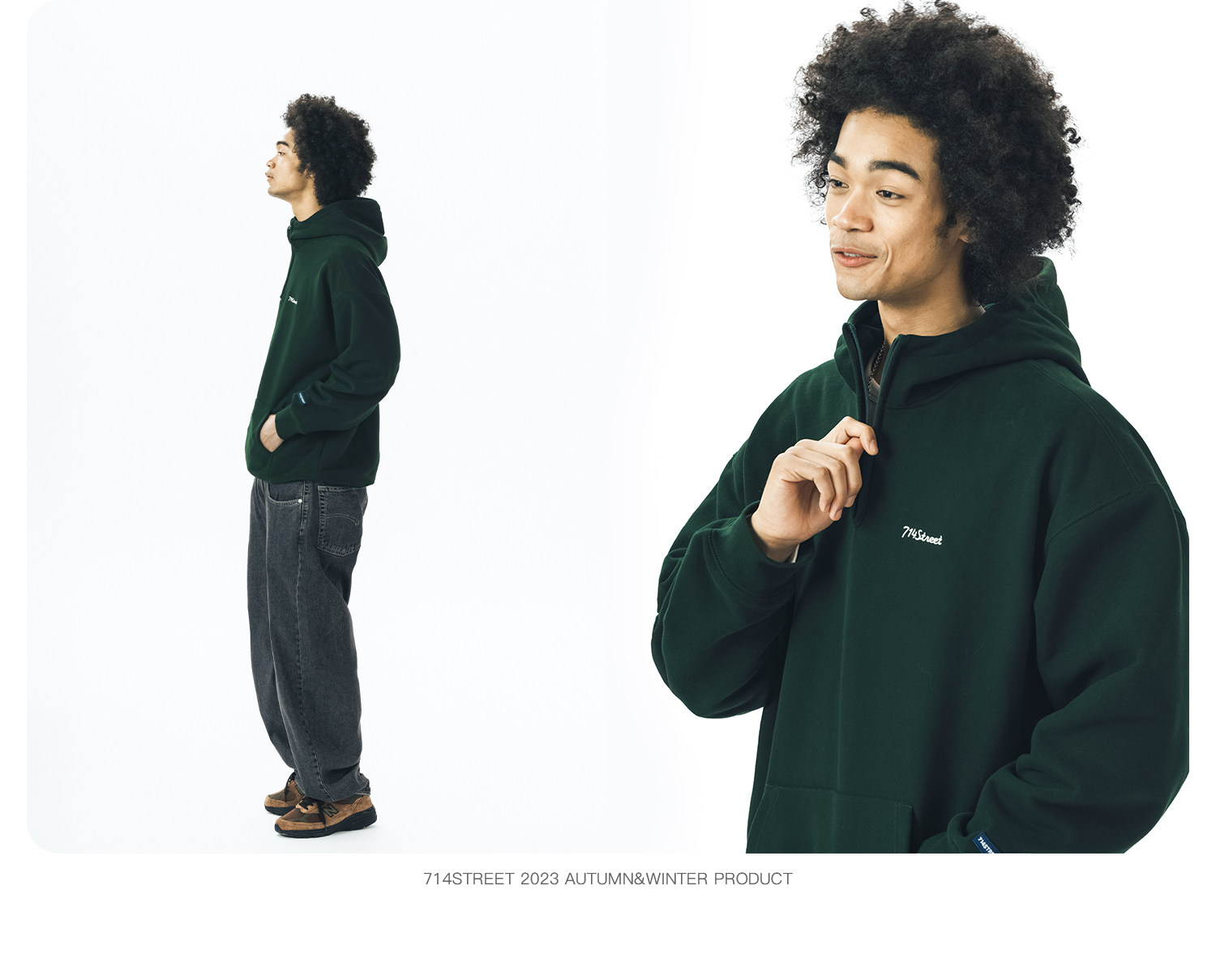 714street半拉链美式连帽卫衣男女2024春秋情侣装日系休闲外套