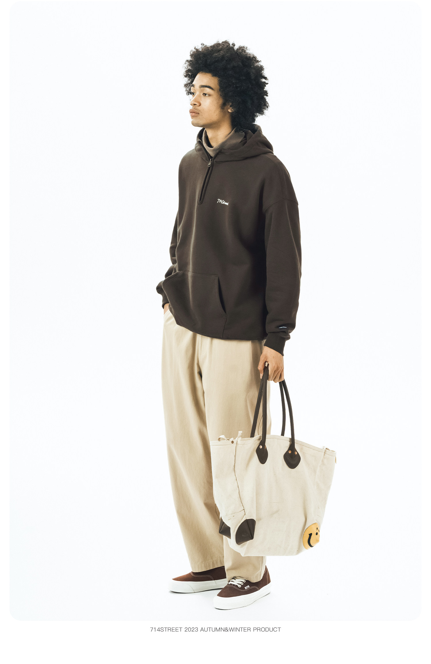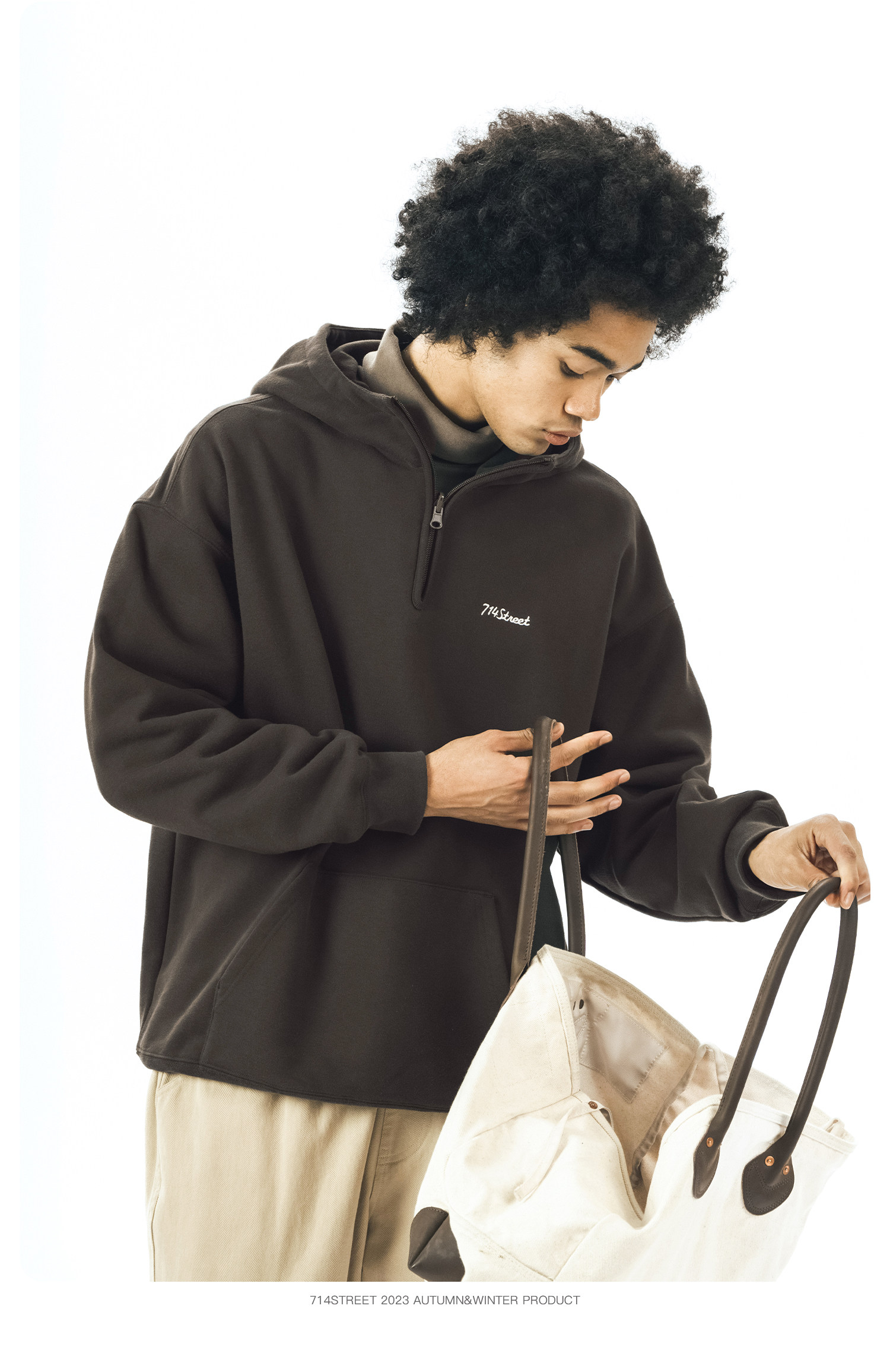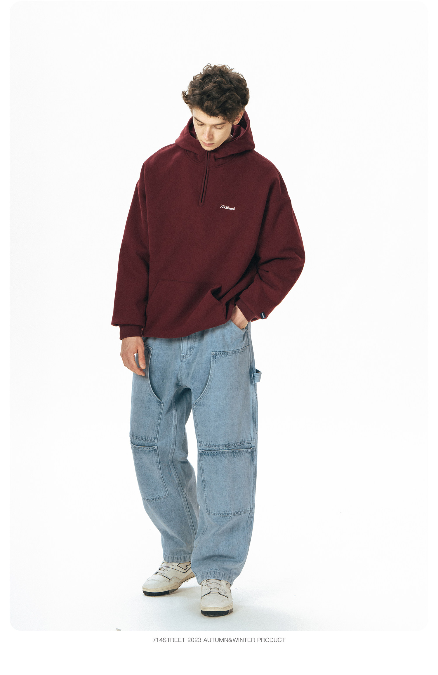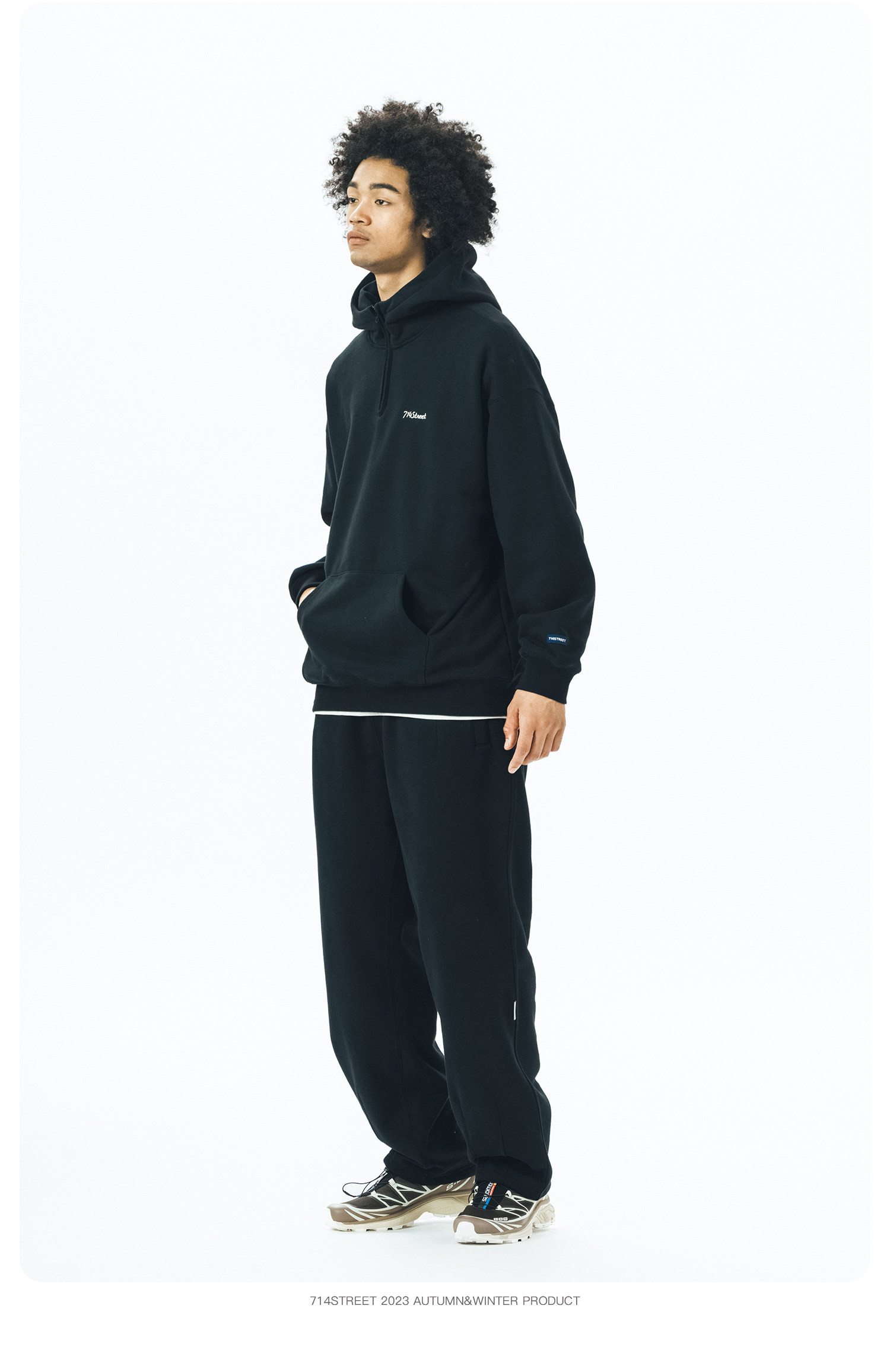 714street半拉链美式连帽卫衣男女2024春秋情侣装日系休闲外套