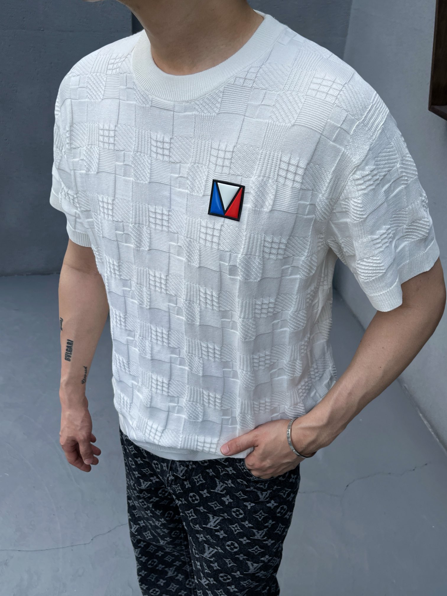 驴家 三色胶章格子短袖 (JN)
