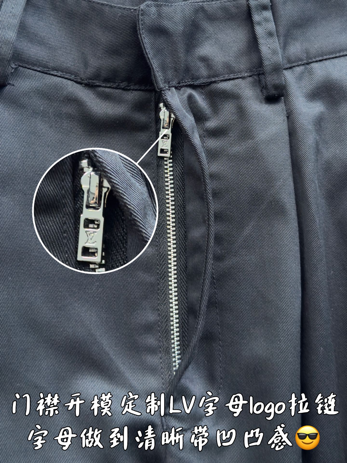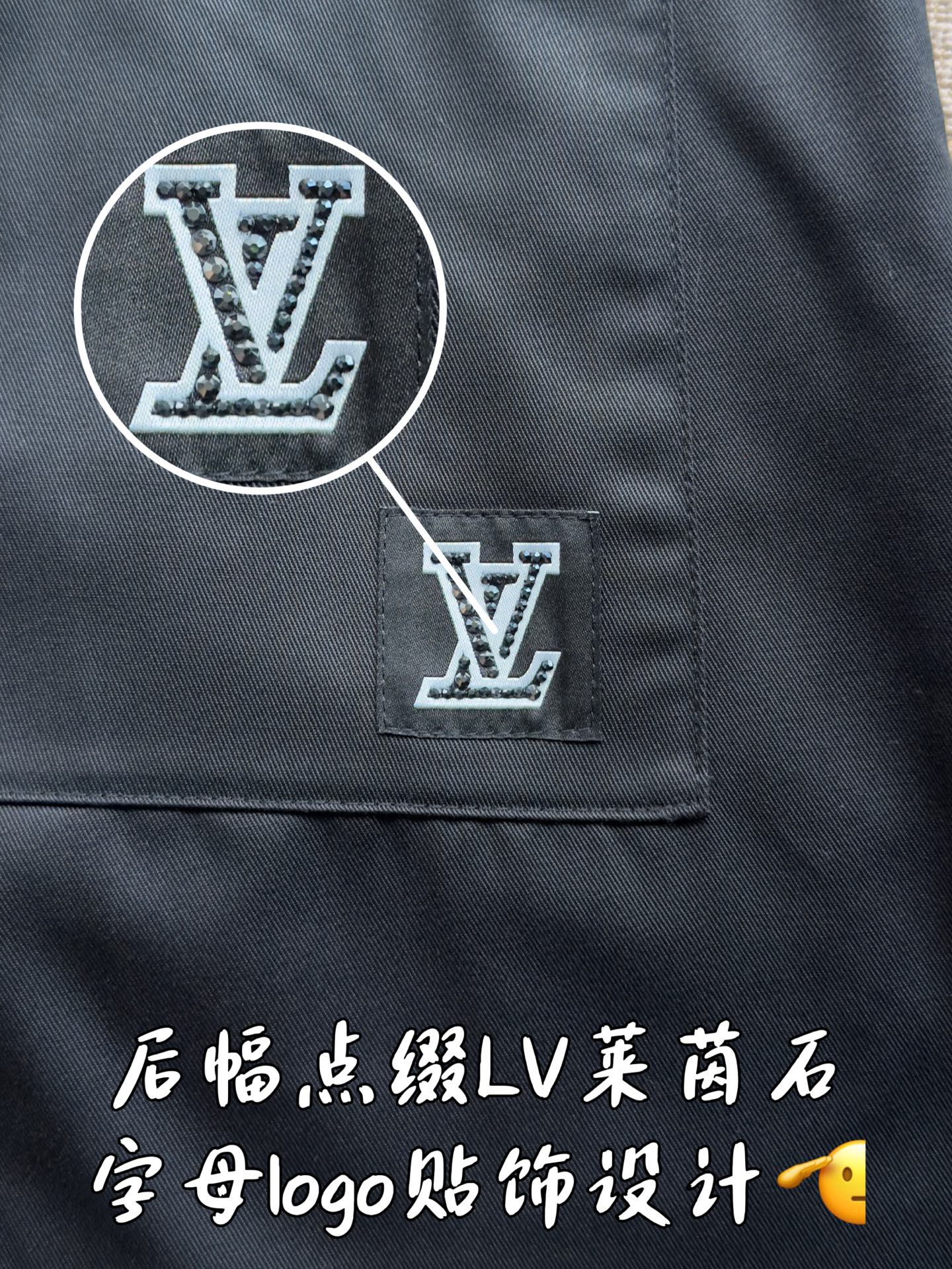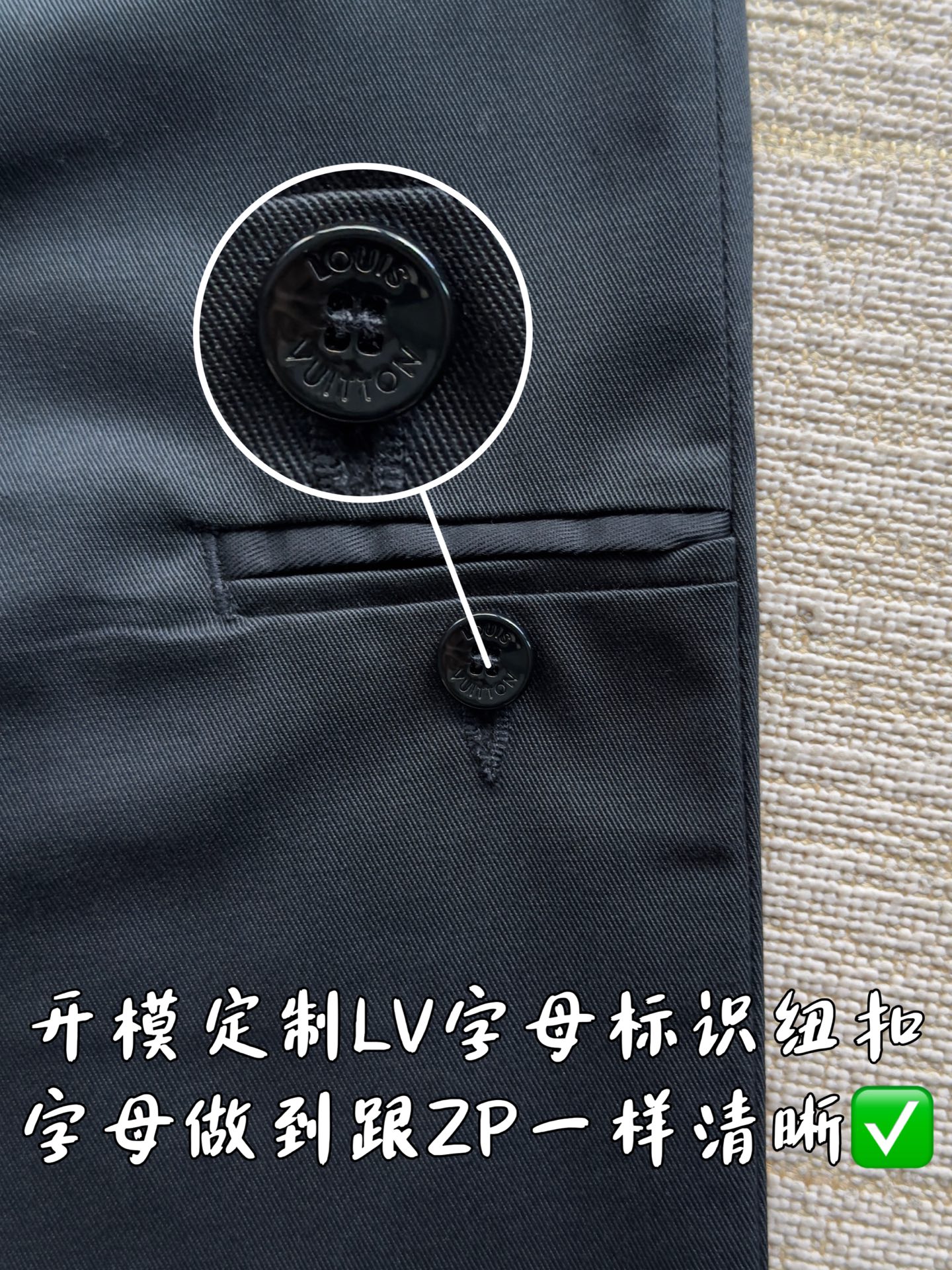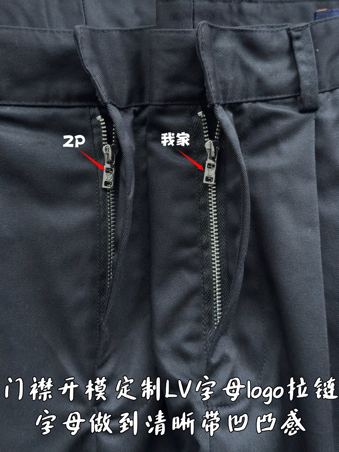 ✍️细节对比 后侧口袋开模定制LV字母标识纽扣 字母做到清晰立体🫡 后幅口袋饰以LV字母logo莱茵石设计 侧边工装口袋LV刺绣字母标识提花设计🤔 门襟开模定制LV字母logo拉链 字母做到跟ZP一样清晰✅