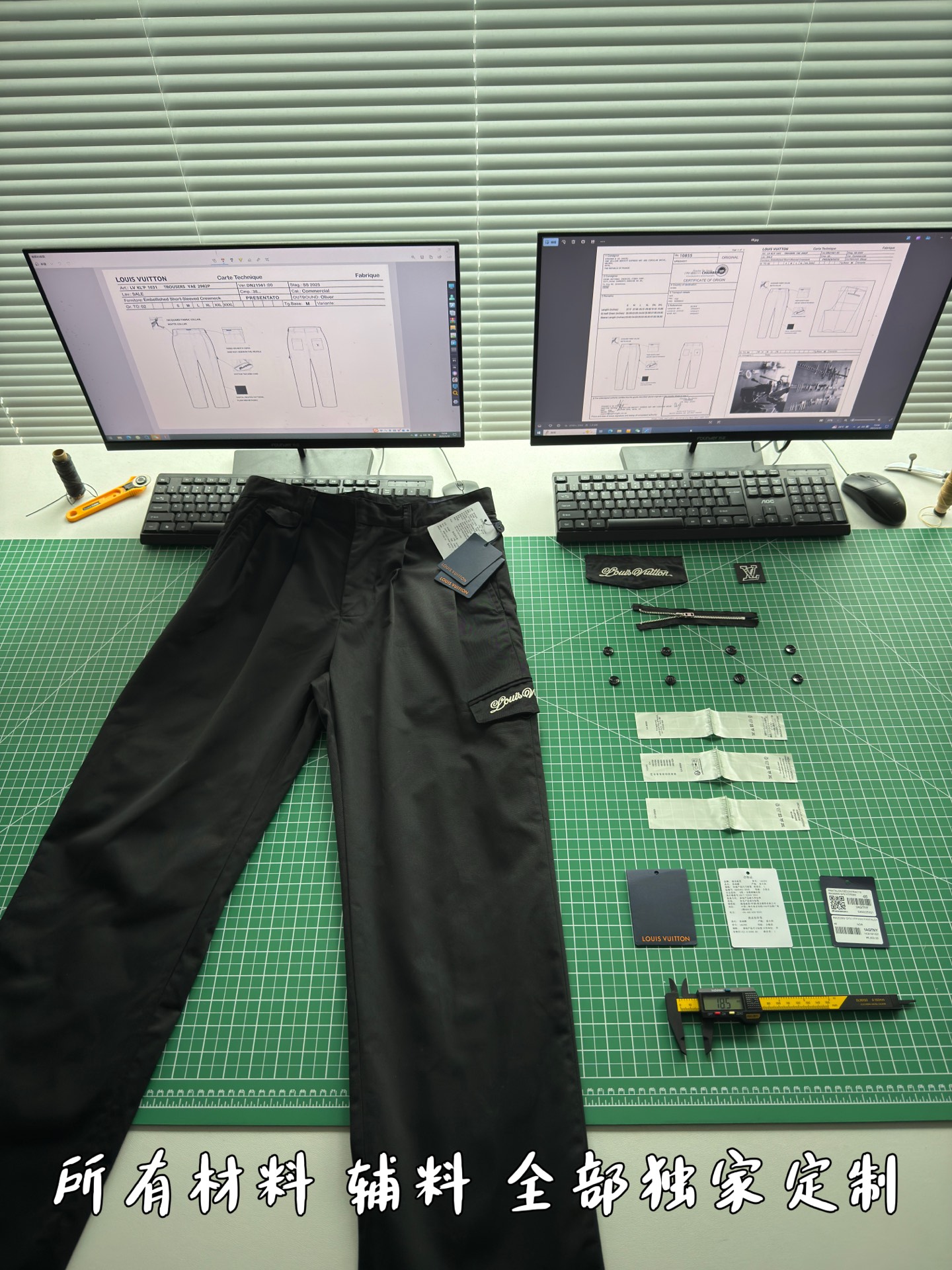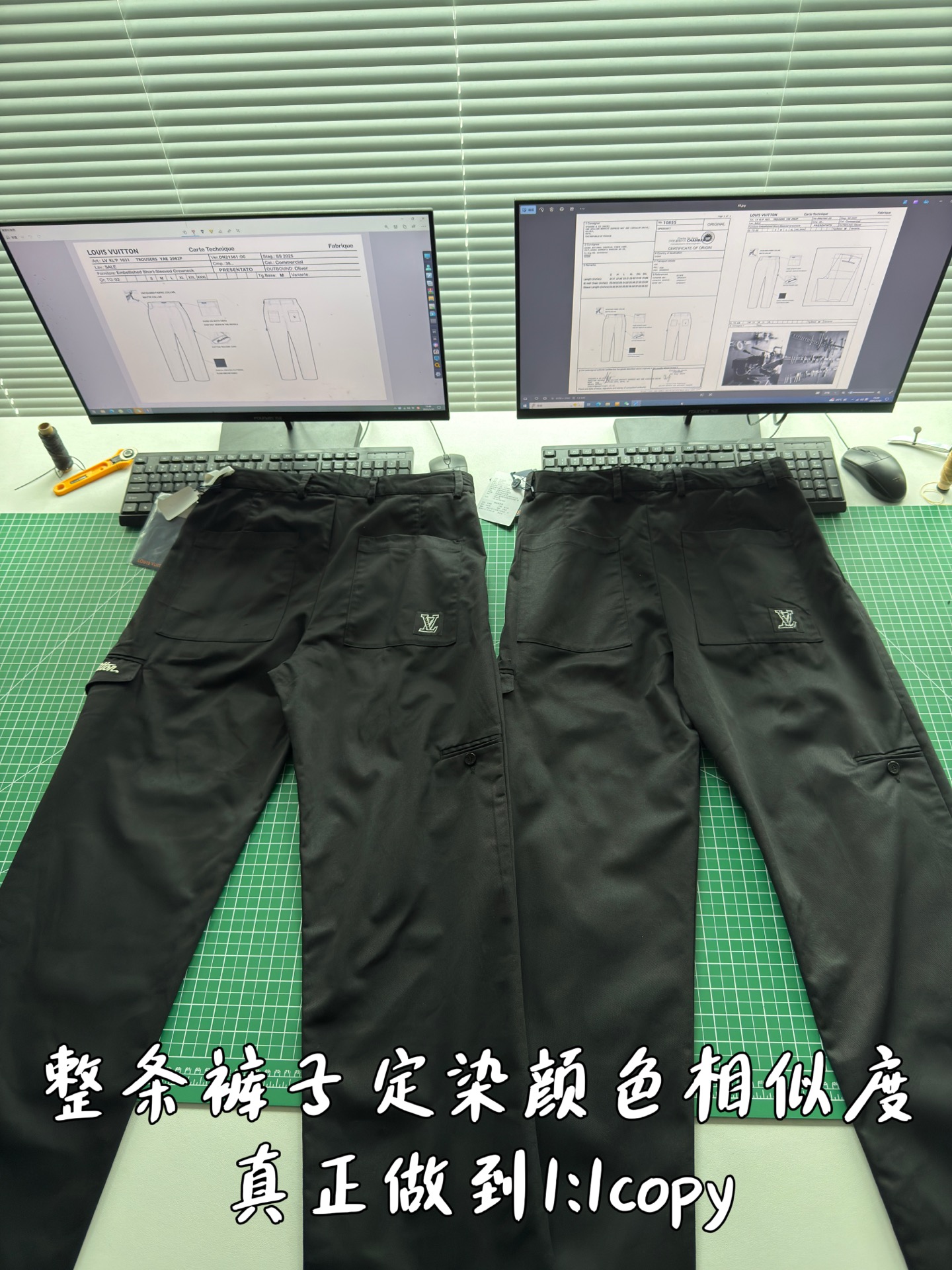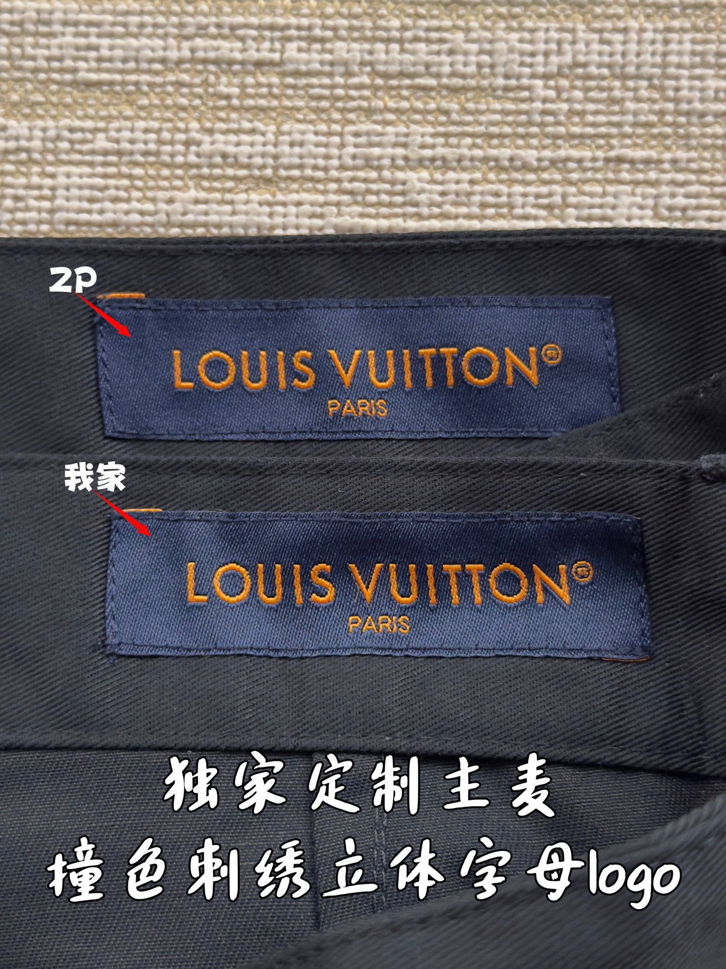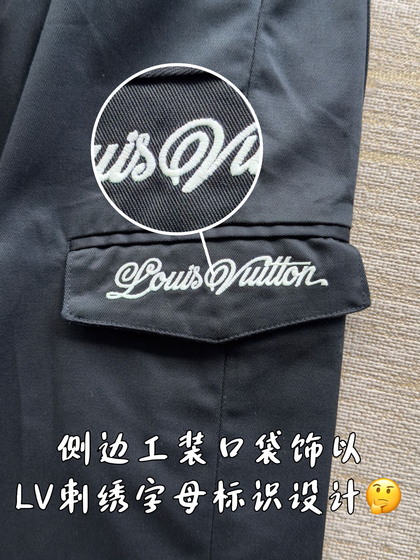 ✍️细节对比 后侧口袋开模定制LV字母标识纽扣 字母做到清晰立体🫡 后幅口袋饰以LV字母logo莱茵石设计 侧边工装口袋LV刺绣字母标识提花设计🤔 门襟开模定制LV字母logo拉链 字母做到跟ZP一样清晰✅