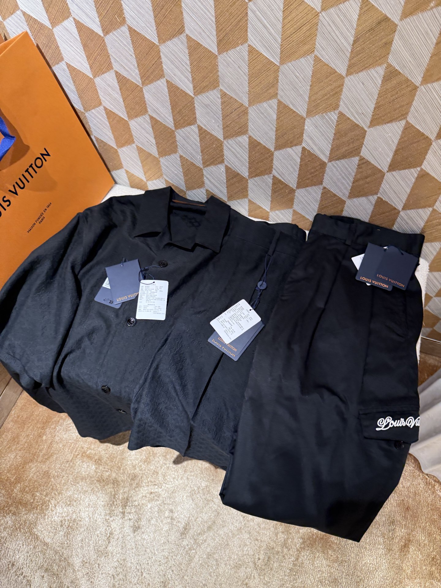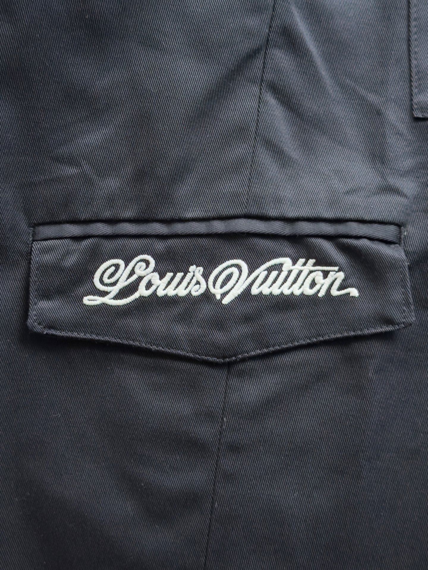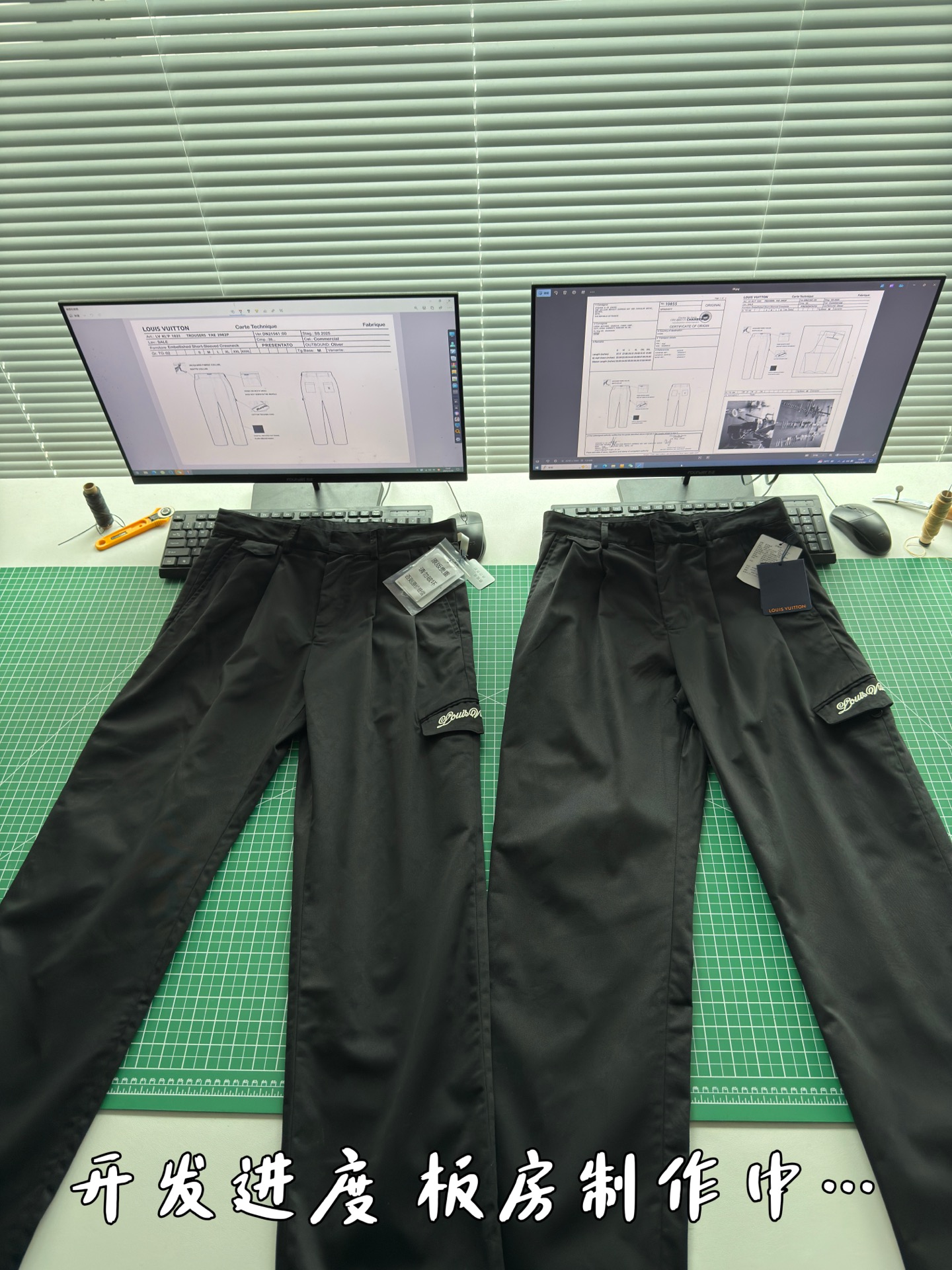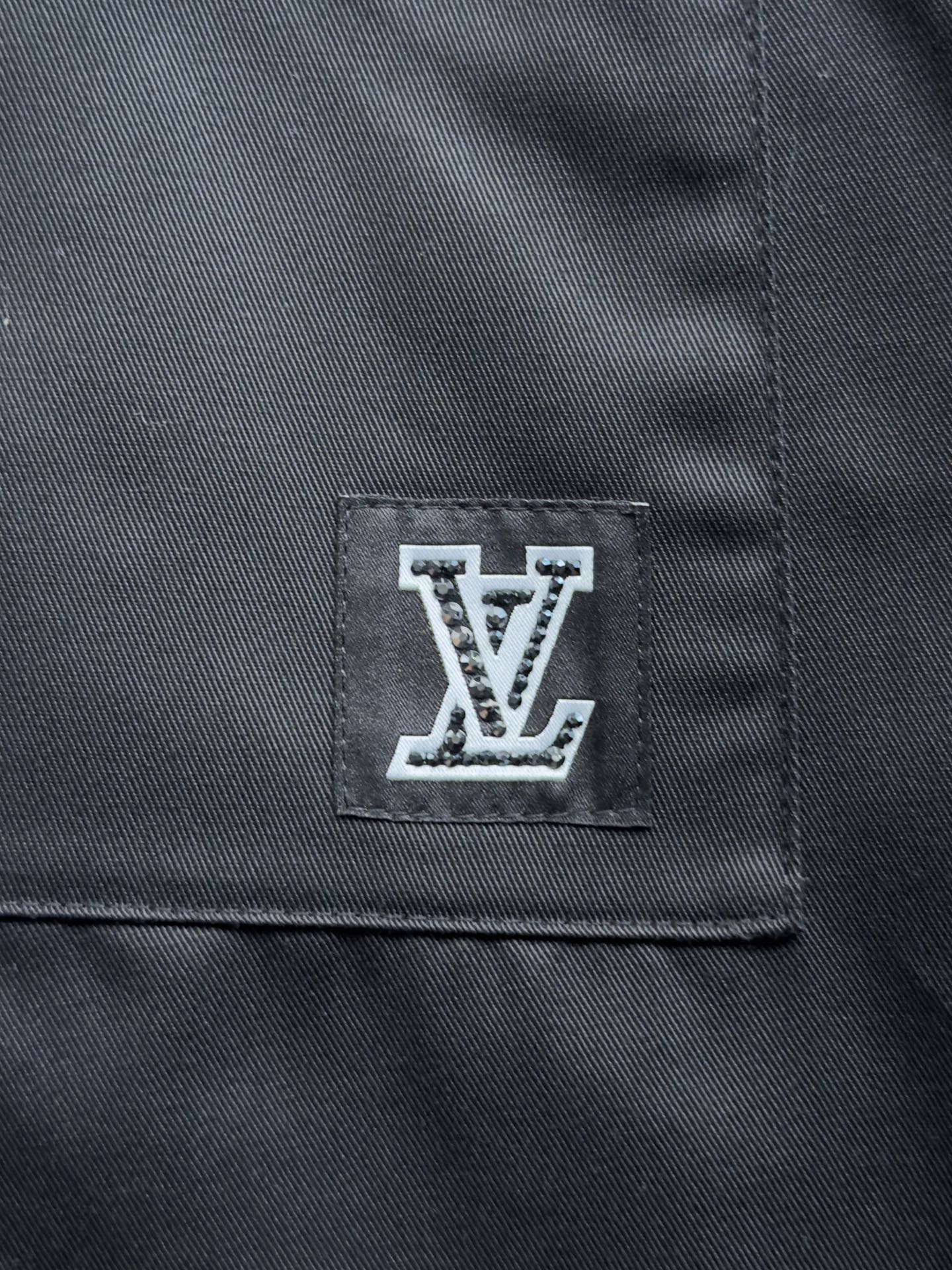 ✍️细节对比 后侧口袋开模定制LV字母标识纽扣 字母做到清晰立体🫡 后幅口袋饰以LV字母logo莱茵石设计 侧边工装口袋LV刺绣字母标识提花设计🤔 门襟开模定制LV字母logo拉链 字母做到跟ZP一样清晰✅