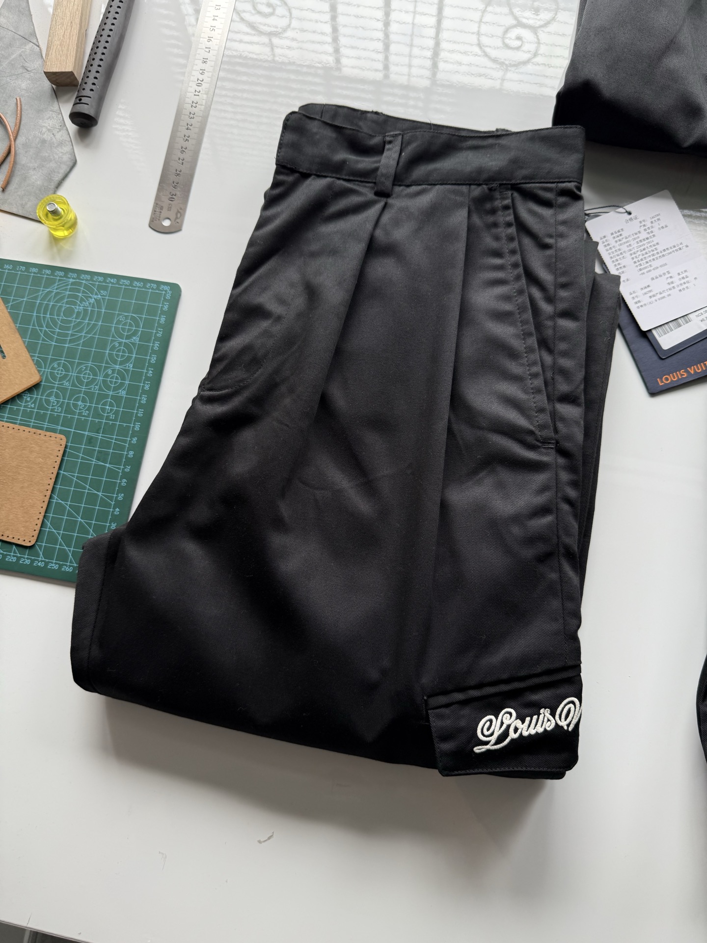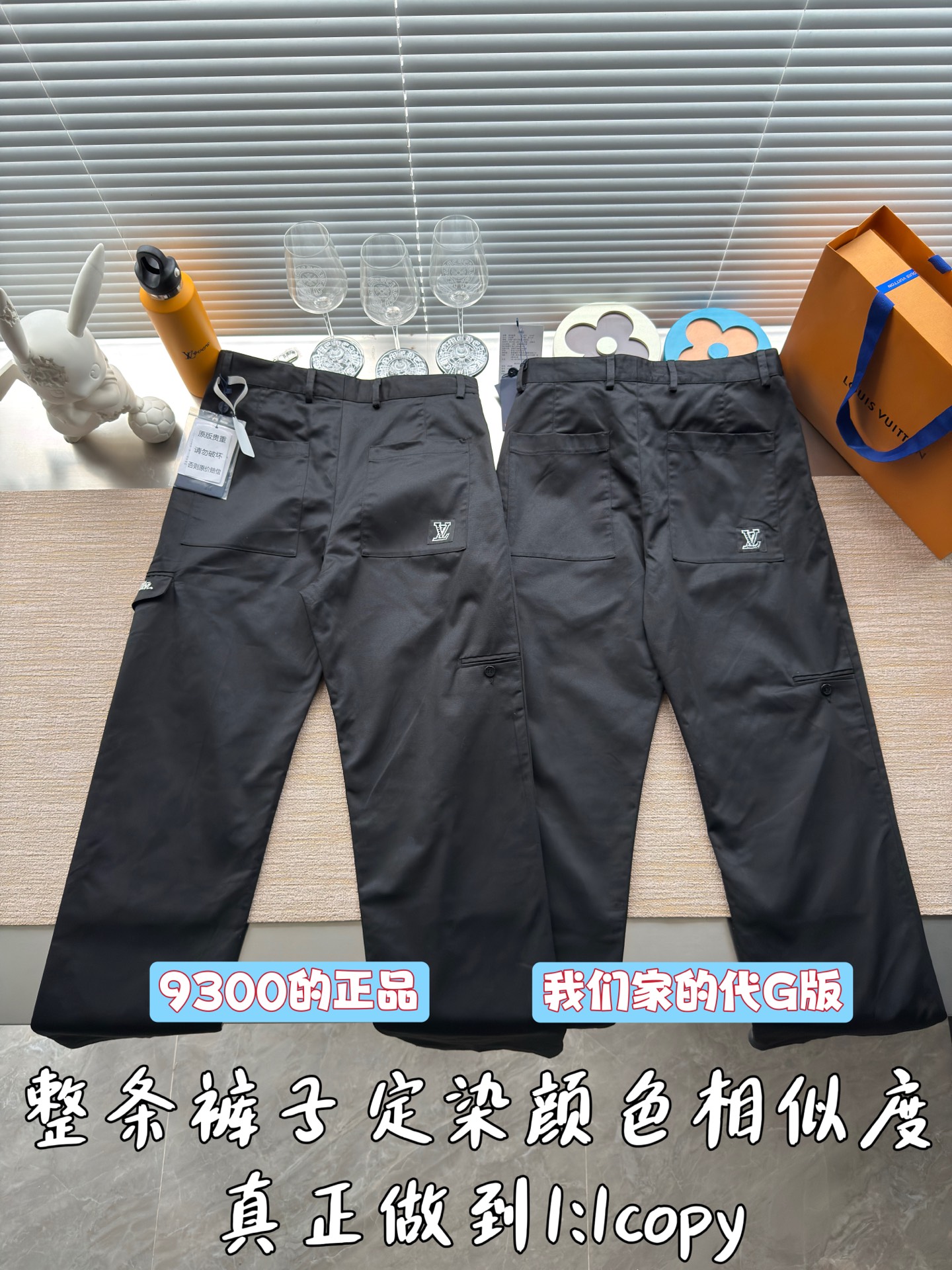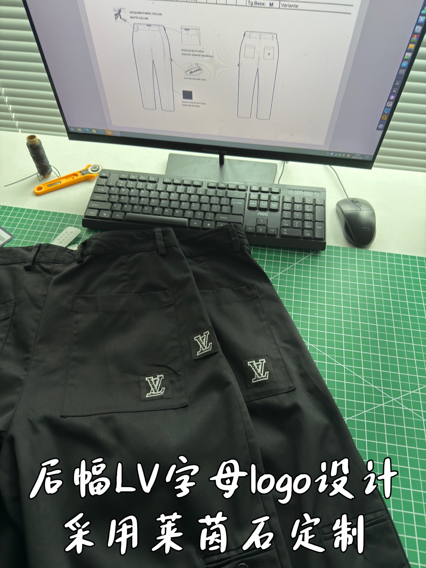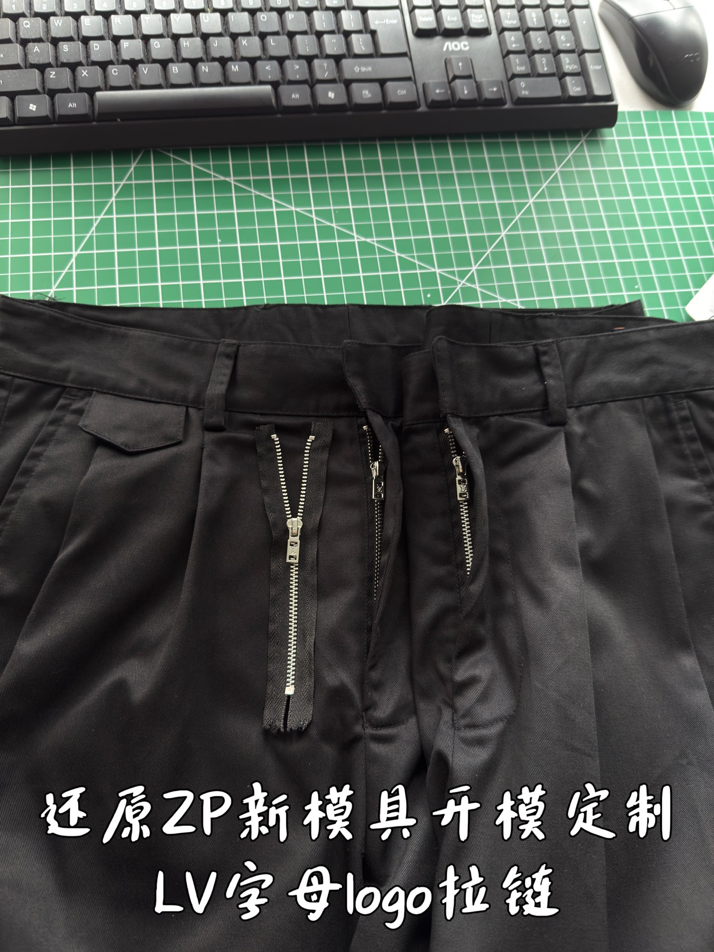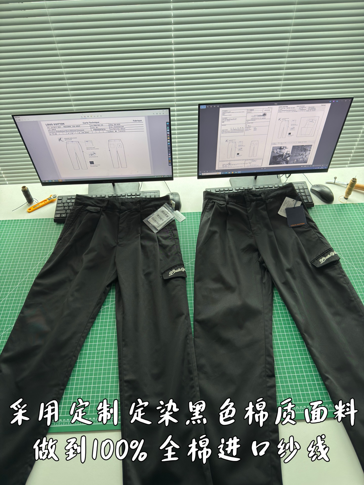 整条裤子9300购买ZP拆解打造,采用定制黑色棉质面料,做到100%全棉进口纱线,整条裤子工装设计,门襟开模定制LV字母logo拉链,内里纽扣设计,侧边工装口袋饰以LV刺绣字母标识设计,后幅口袋饰以LV字母logo莱茵石设计,真正做到1:1copy
