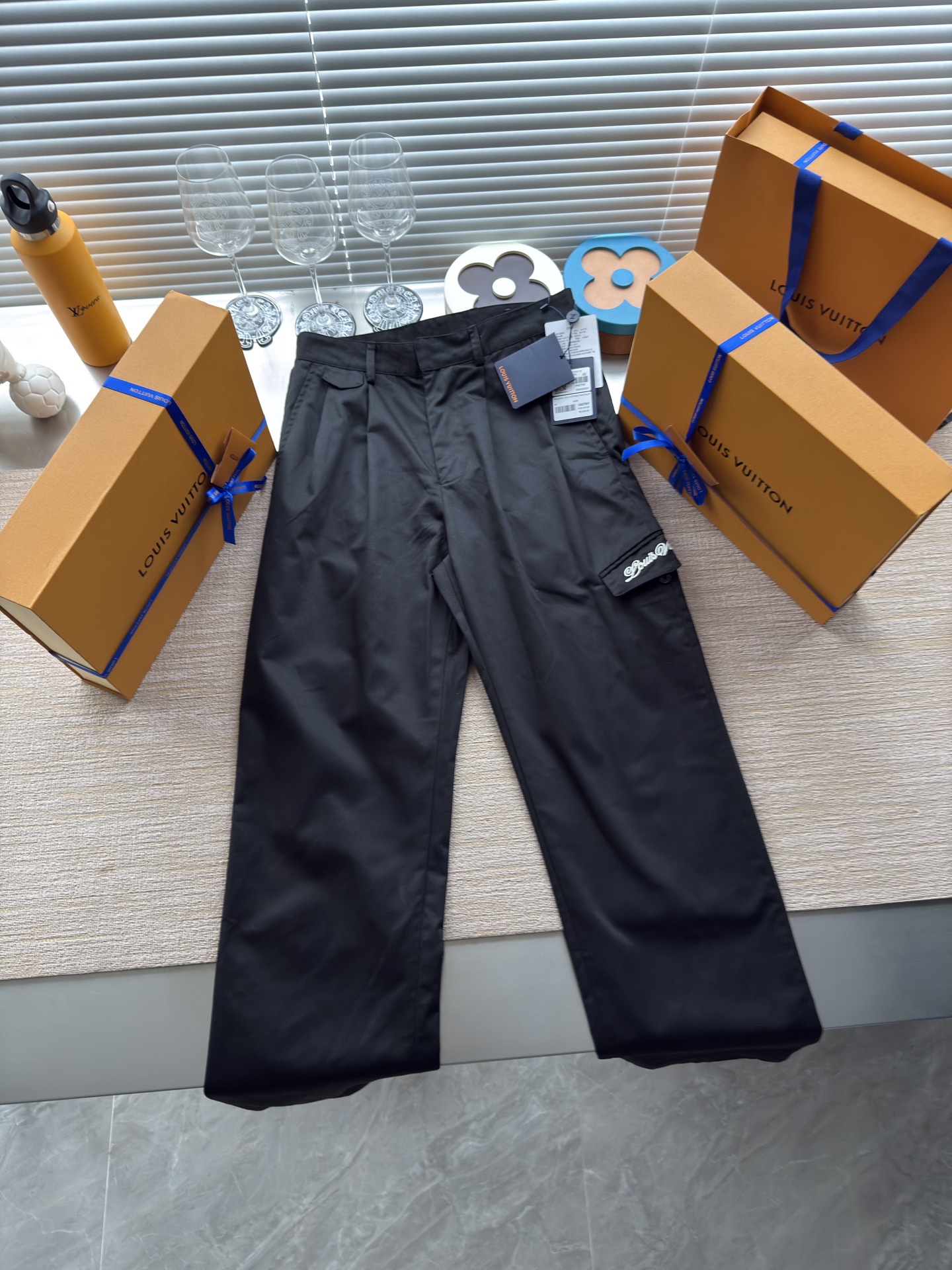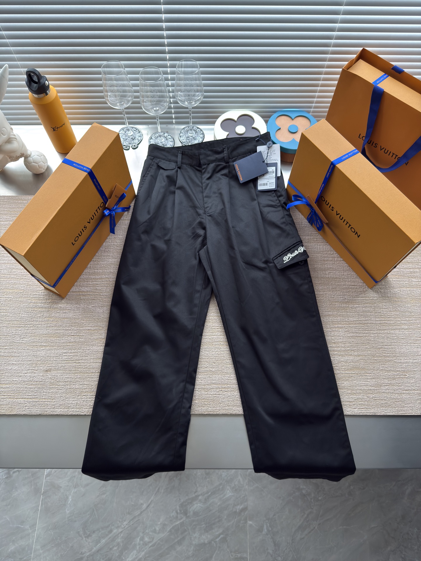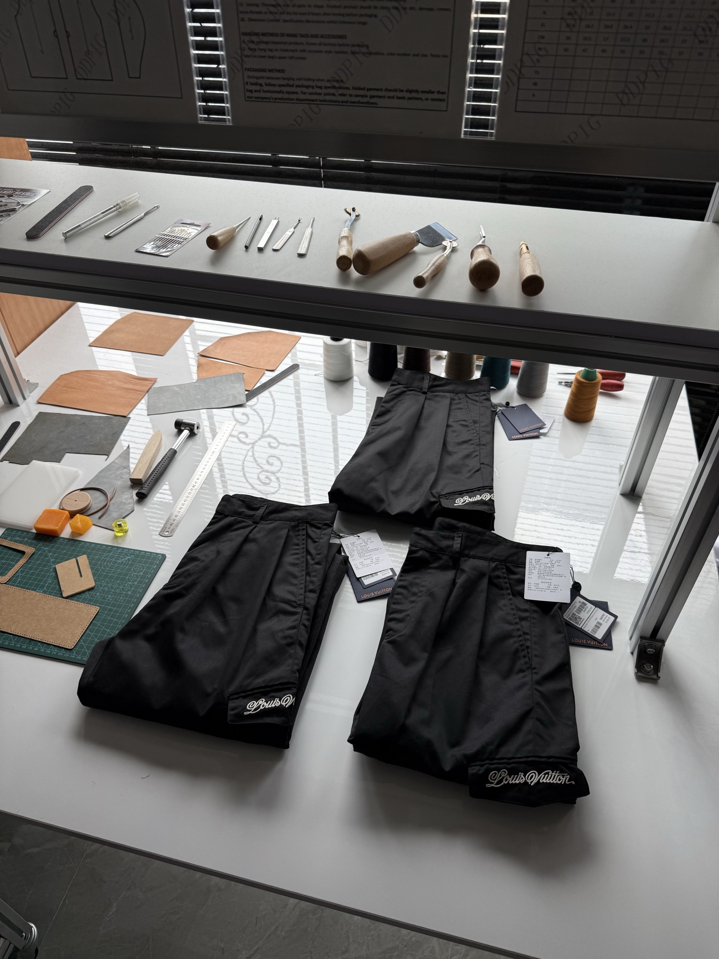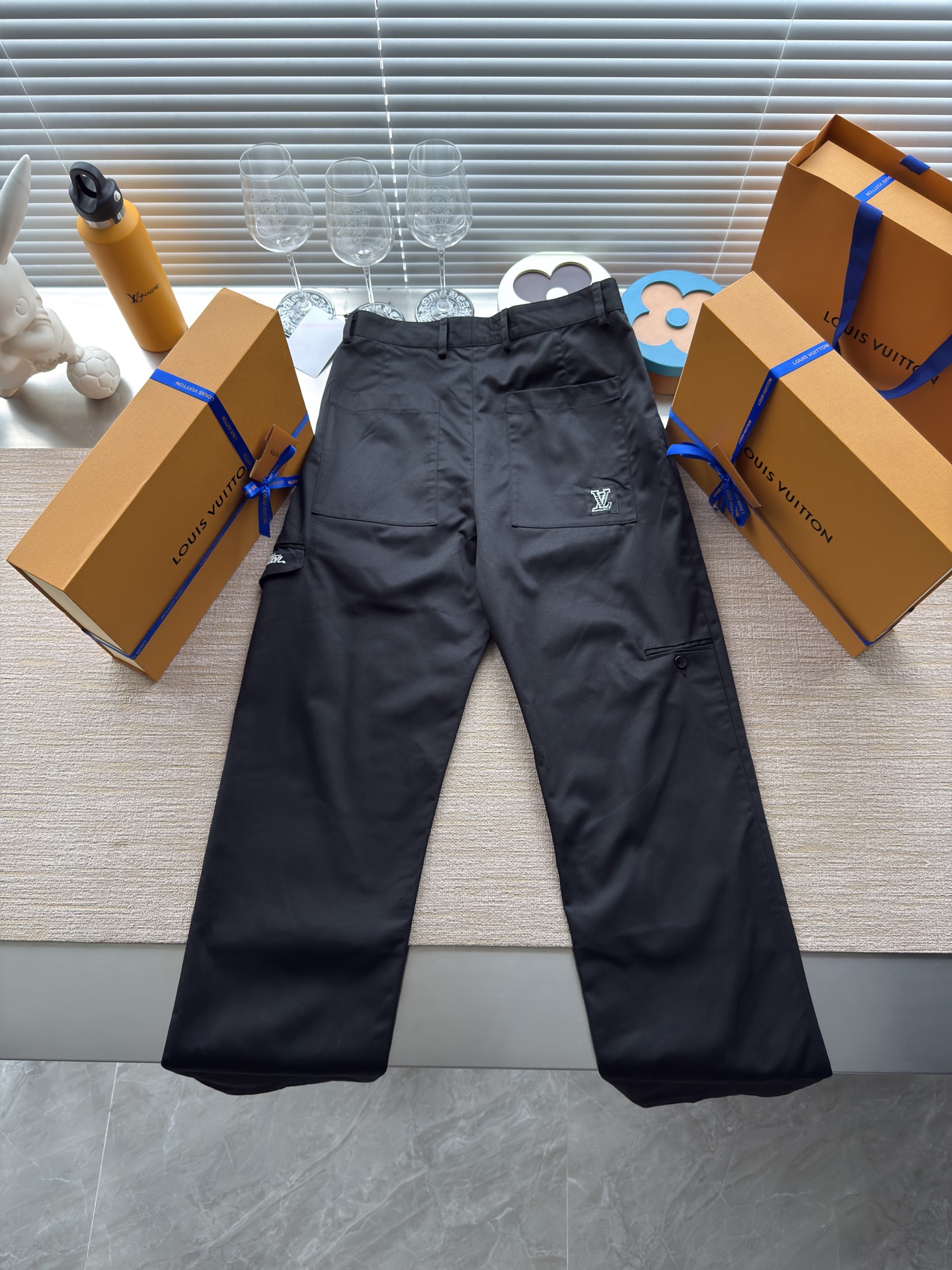 整条裤子9300购买ZP拆解打造,采用定制黑色棉质面料,做到100%全棉进口纱线,整条裤子工装设计,门襟开模定制LV字母logo拉链,内里纽扣设计,侧边工装口袋饰以LV刺绣字母标识设计,后幅口袋饰以LV字母logo莱茵石设计,真正做到1:1copy