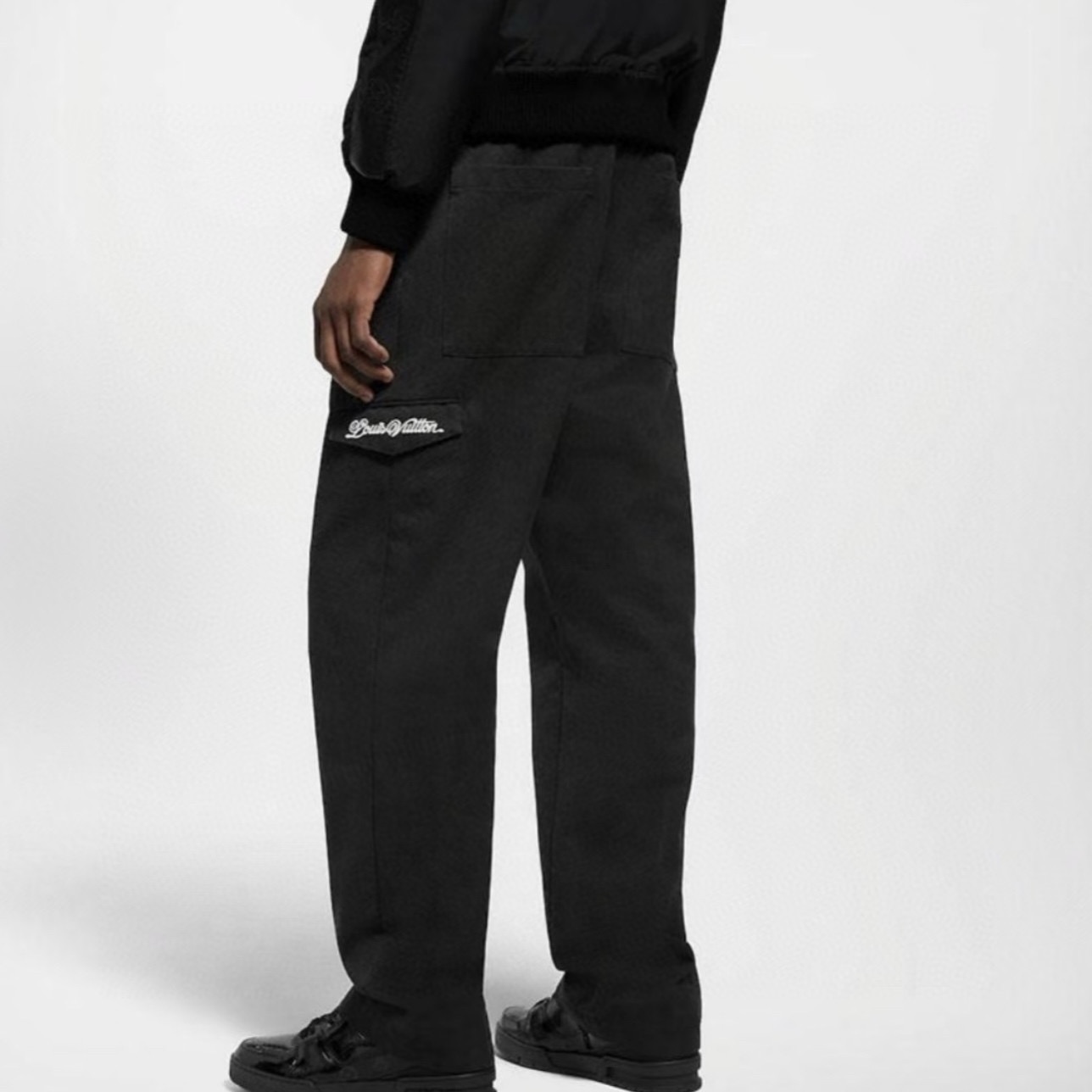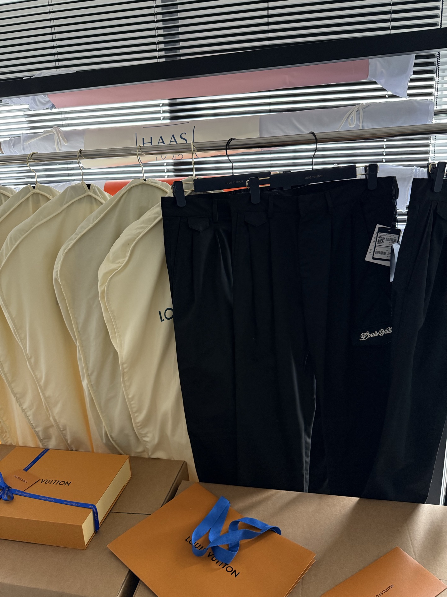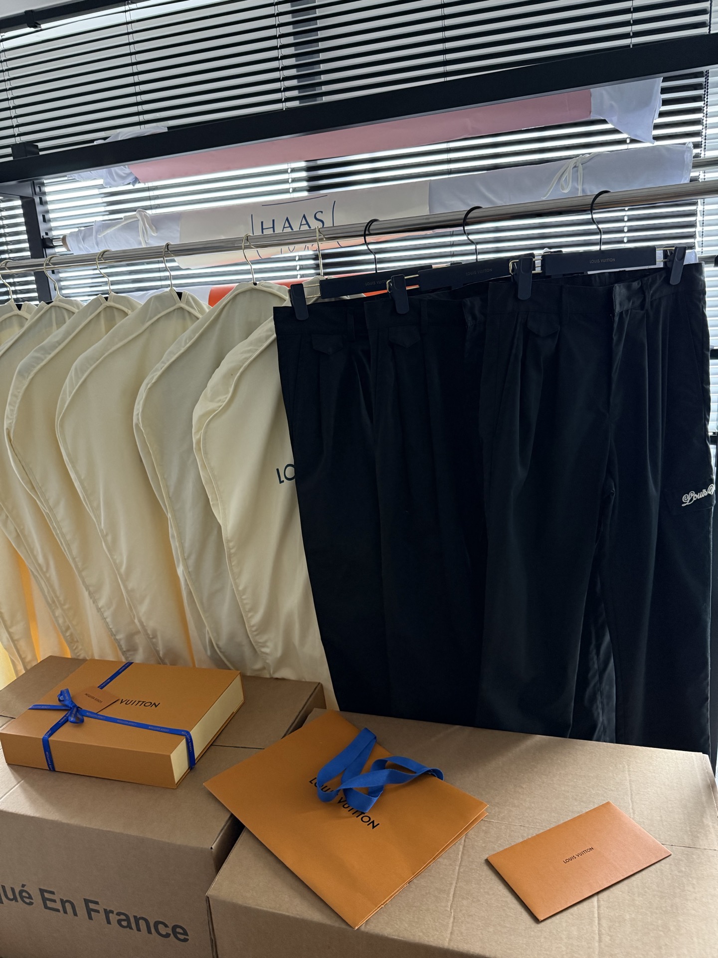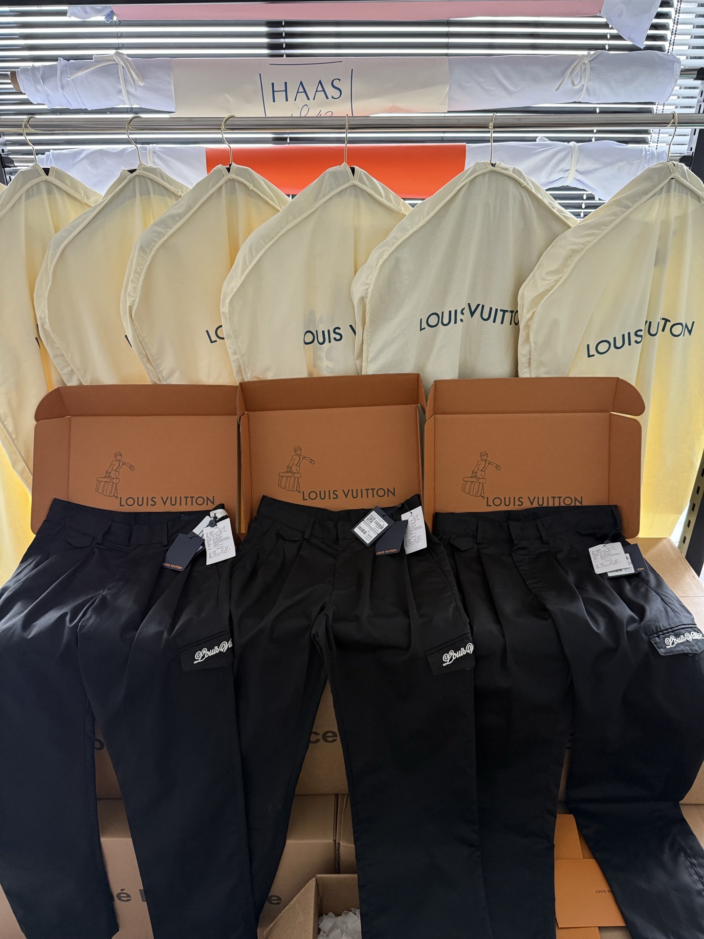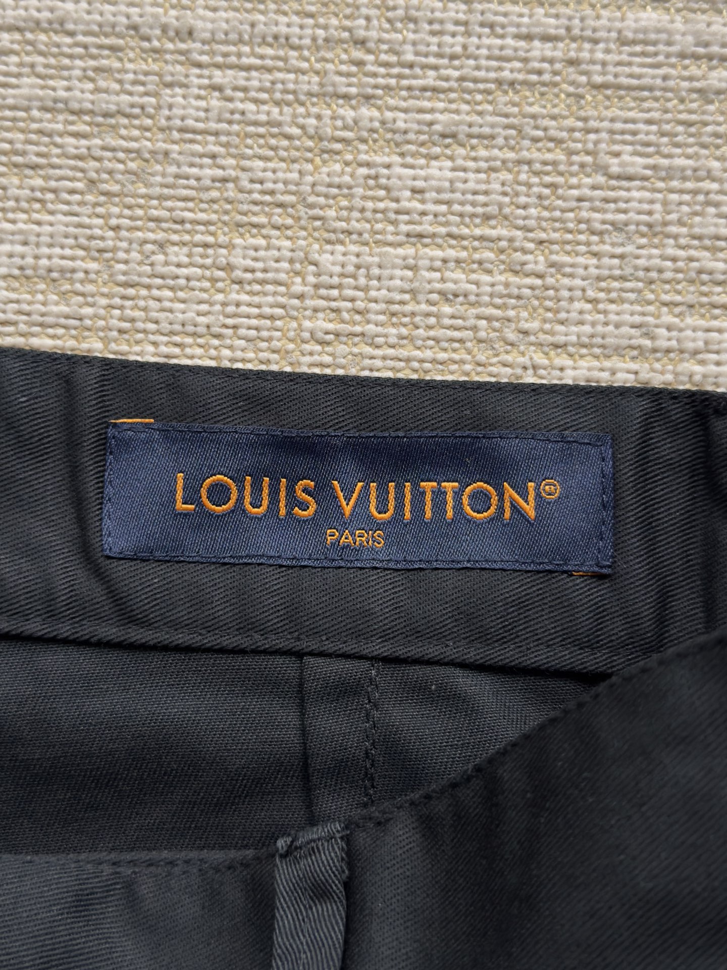 整条裤子9300购买ZP拆解打造,采用定制黑色棉质面料,做到100%全棉进口纱线,整条裤子工装设计,门襟开模定制LV字母logo拉链,内里纽扣设计,侧边工装口袋饰以LV刺绣字母标识设计,后幅口袋饰以LV字母logo莱茵石设计,真正做到1:1copy