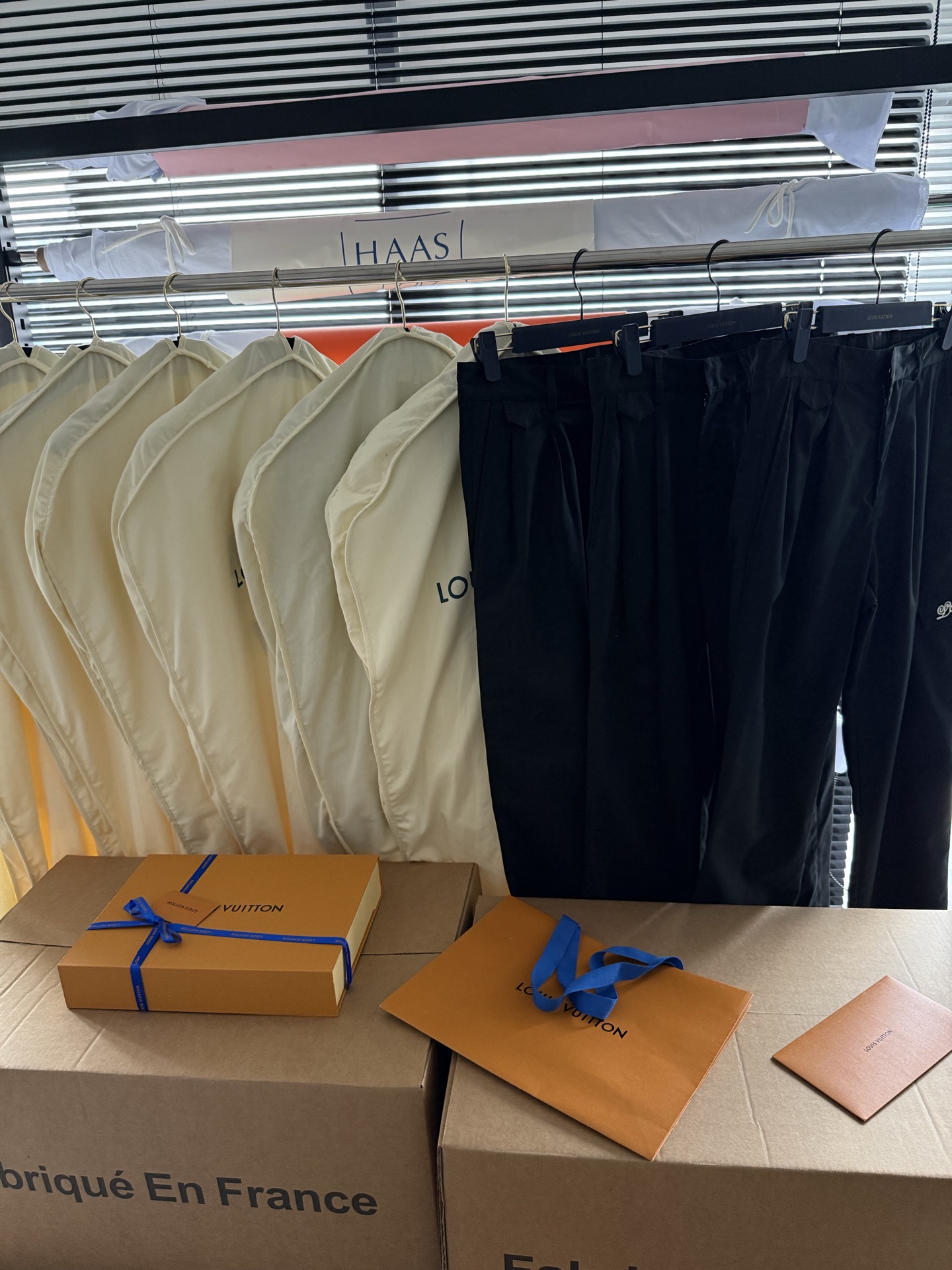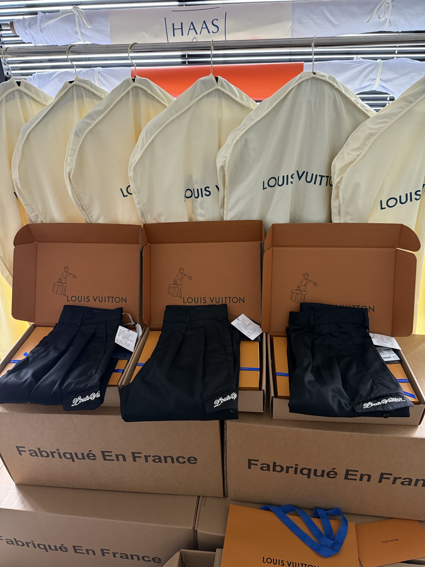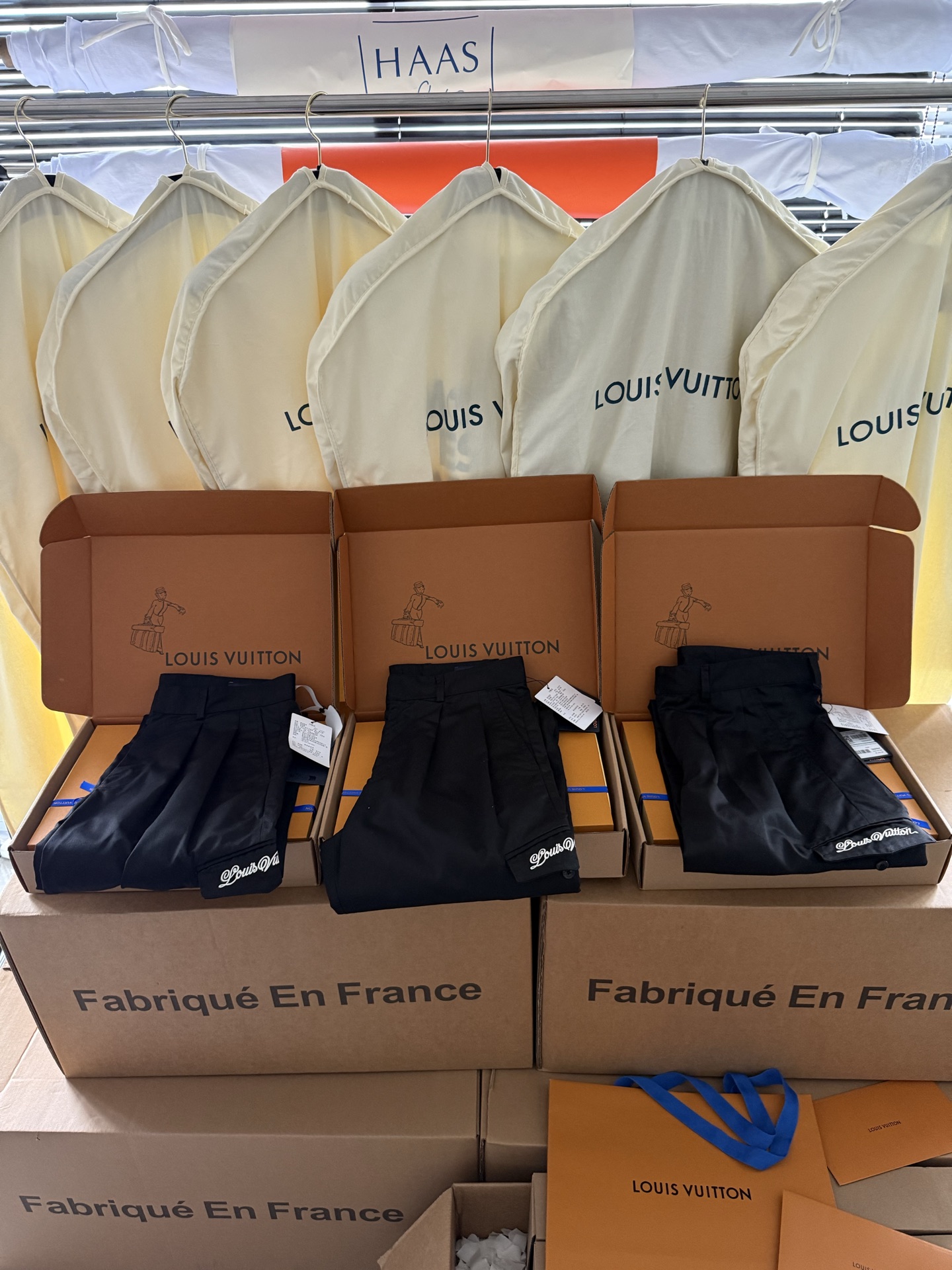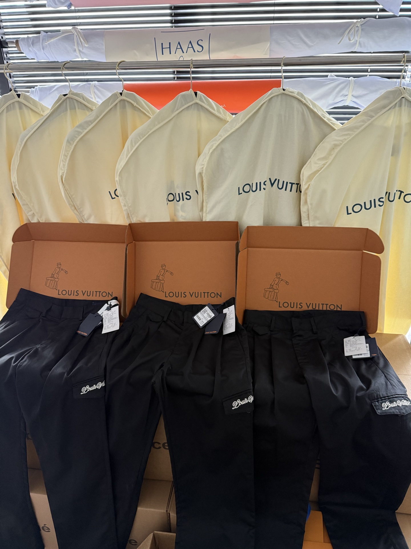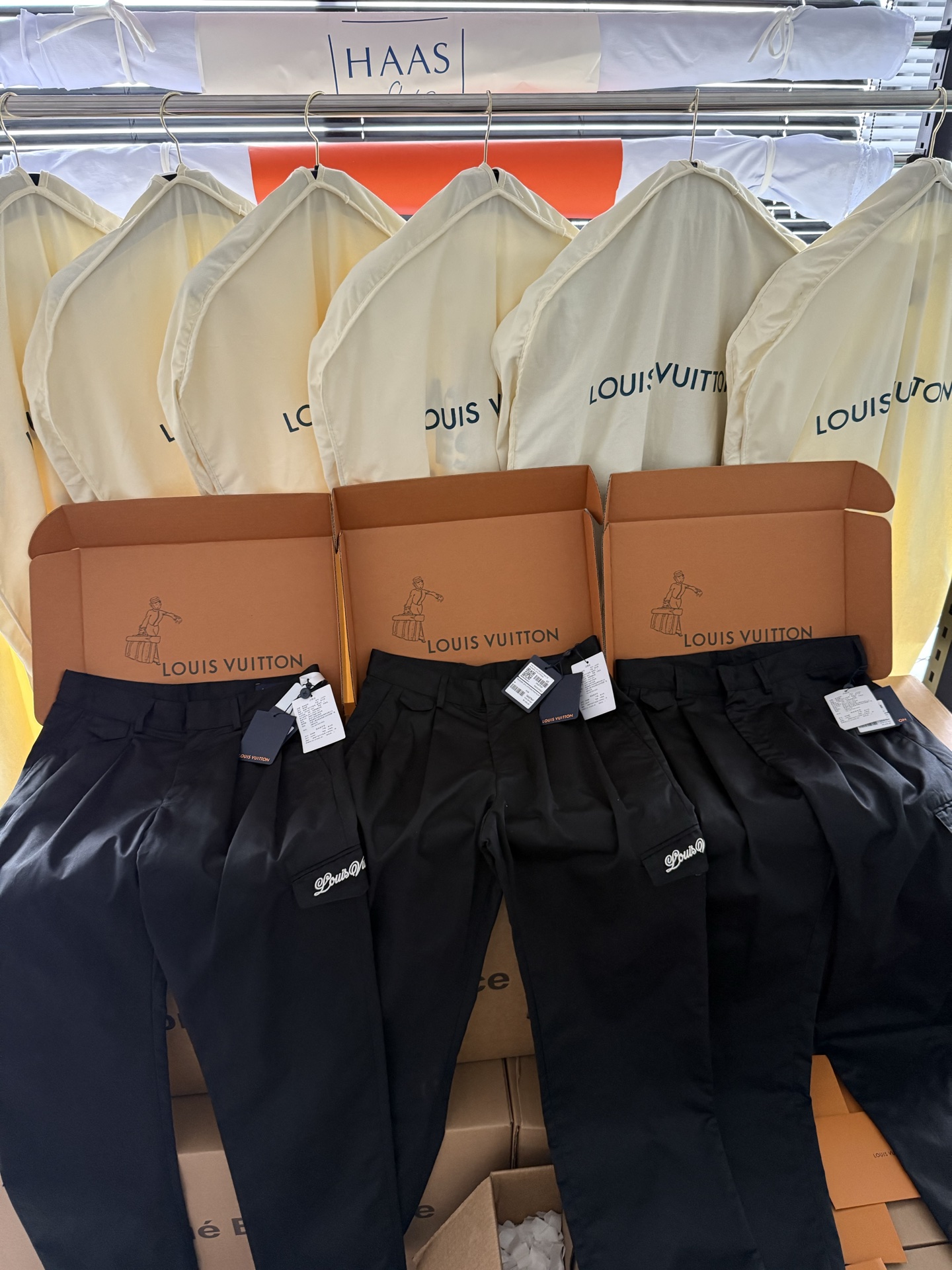 整条裤子9300购买ZP拆解打造,采用定制黑色棉质面料,做到100%全棉进口纱线,整条裤子工装设计,门襟开模定制LV字母logo拉链,内里纽扣设计,侧边工装口袋饰以LV刺绣字母标识设计,后幅口袋饰以LV字母logo莱茵石设计,真正做到1:1copy
