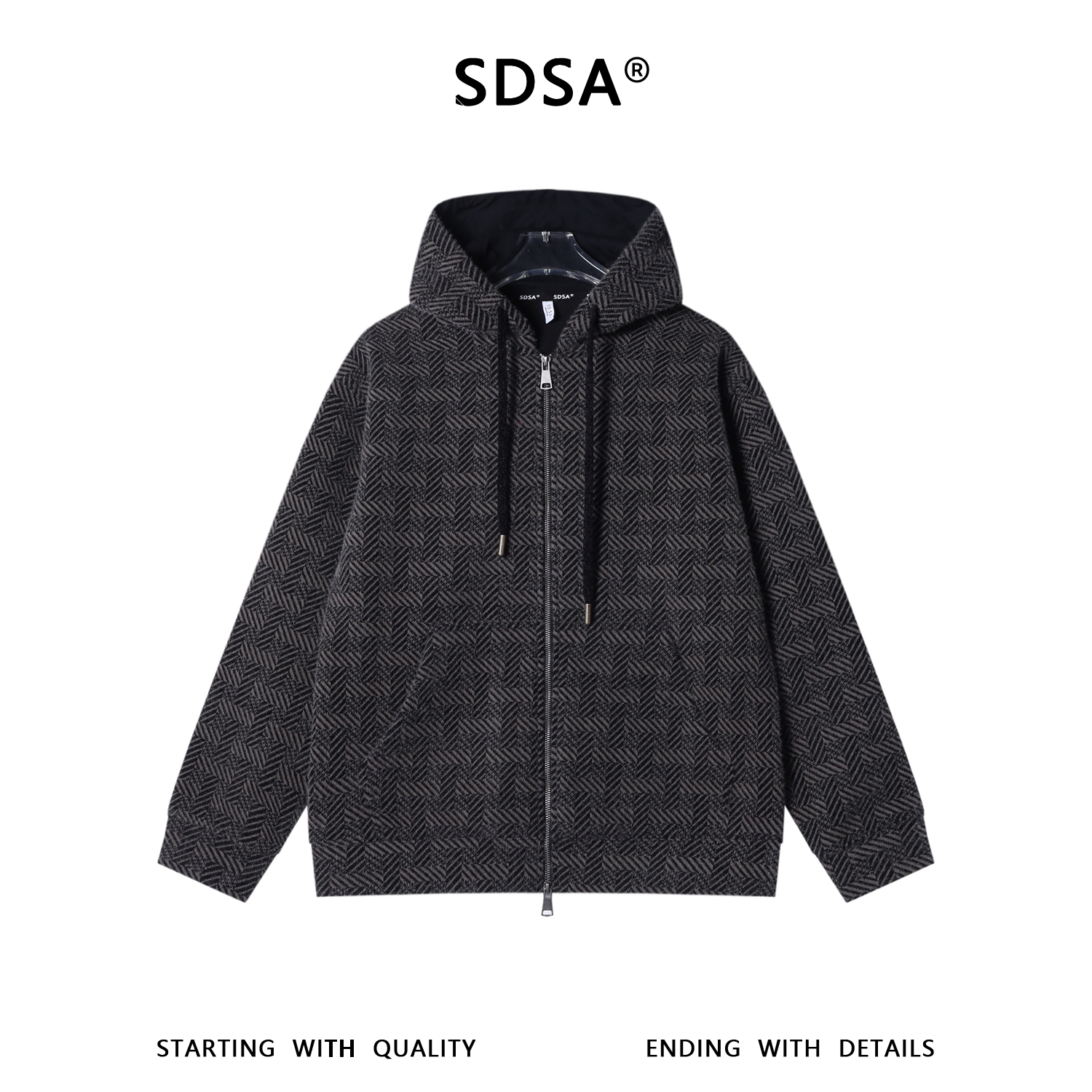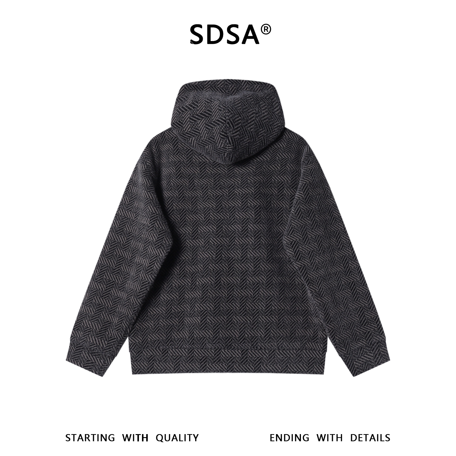 WT306SDSA男士秋冬新款痞帅男装潮牌撞色格子绒毛拉链连帽卫衣百搭时尚