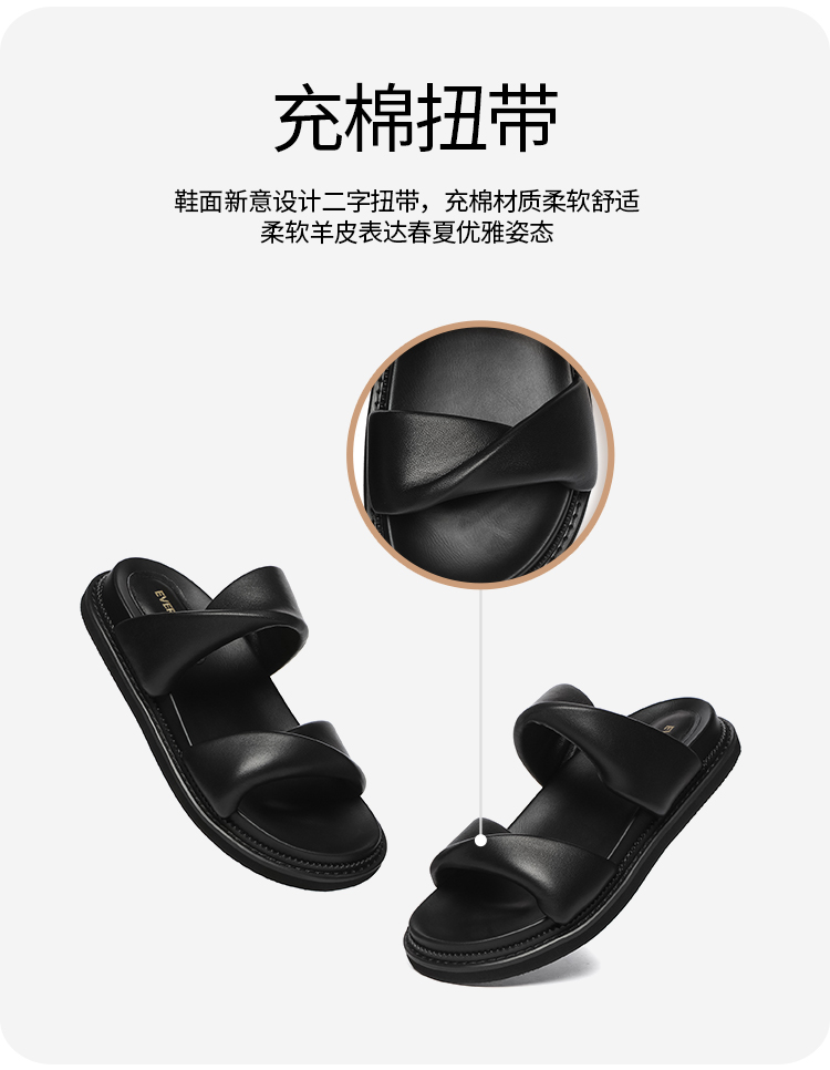 【澳洲品牌】EVERAU春夏女鞋双带充棉凉鞋扭转带设计简约灵动清爽EA7038