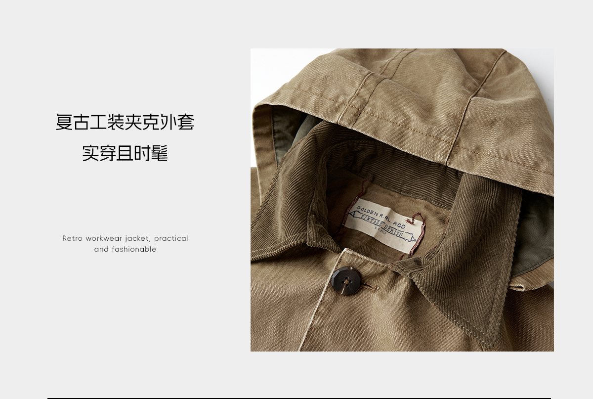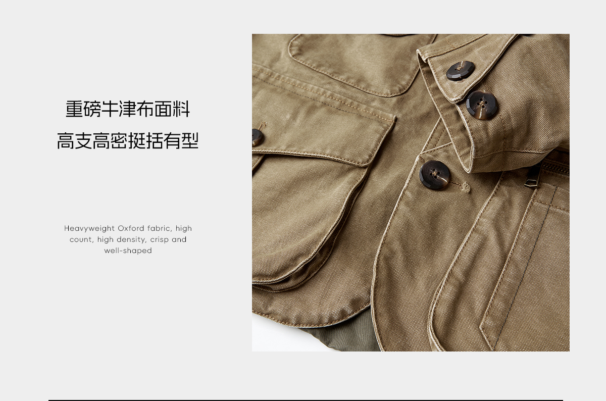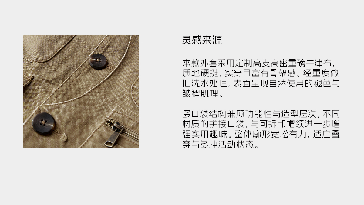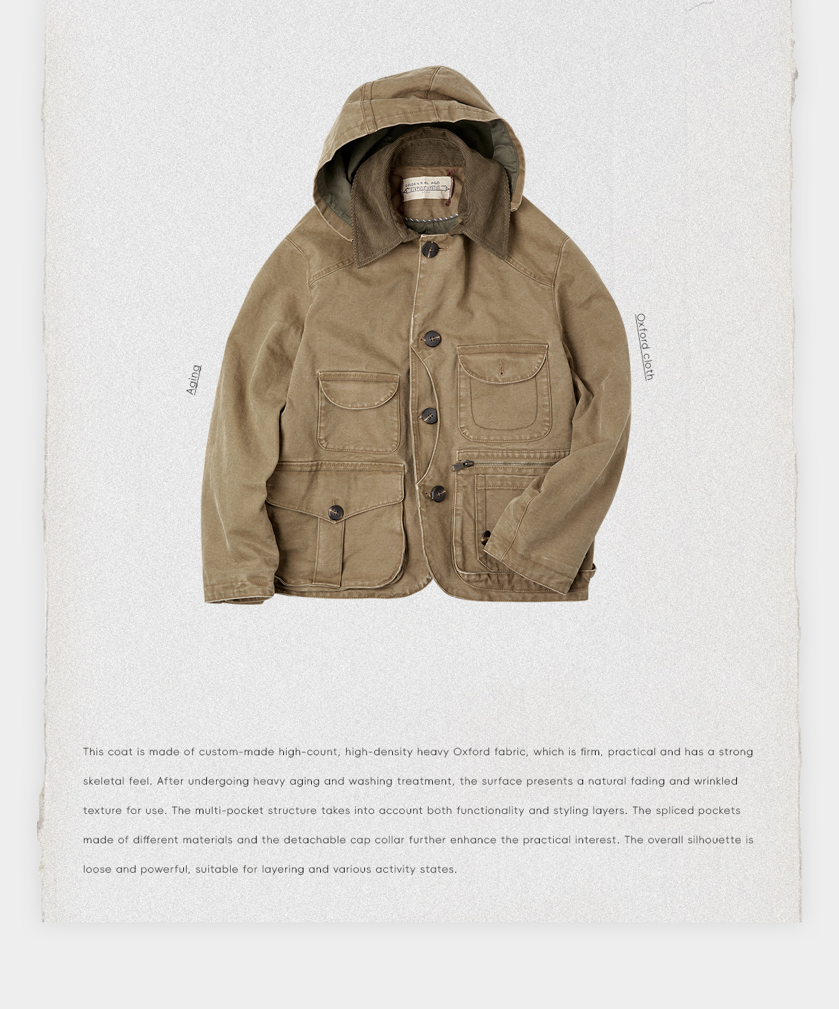 ROMI STUDIO“夹克季”重磅牛津布做旧多口袋秋冬厚外套RWCAWY6066【帽子可拆卸】
