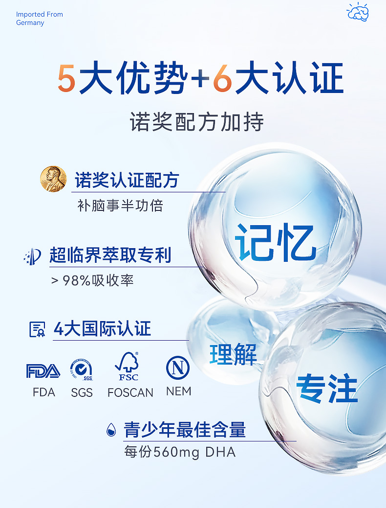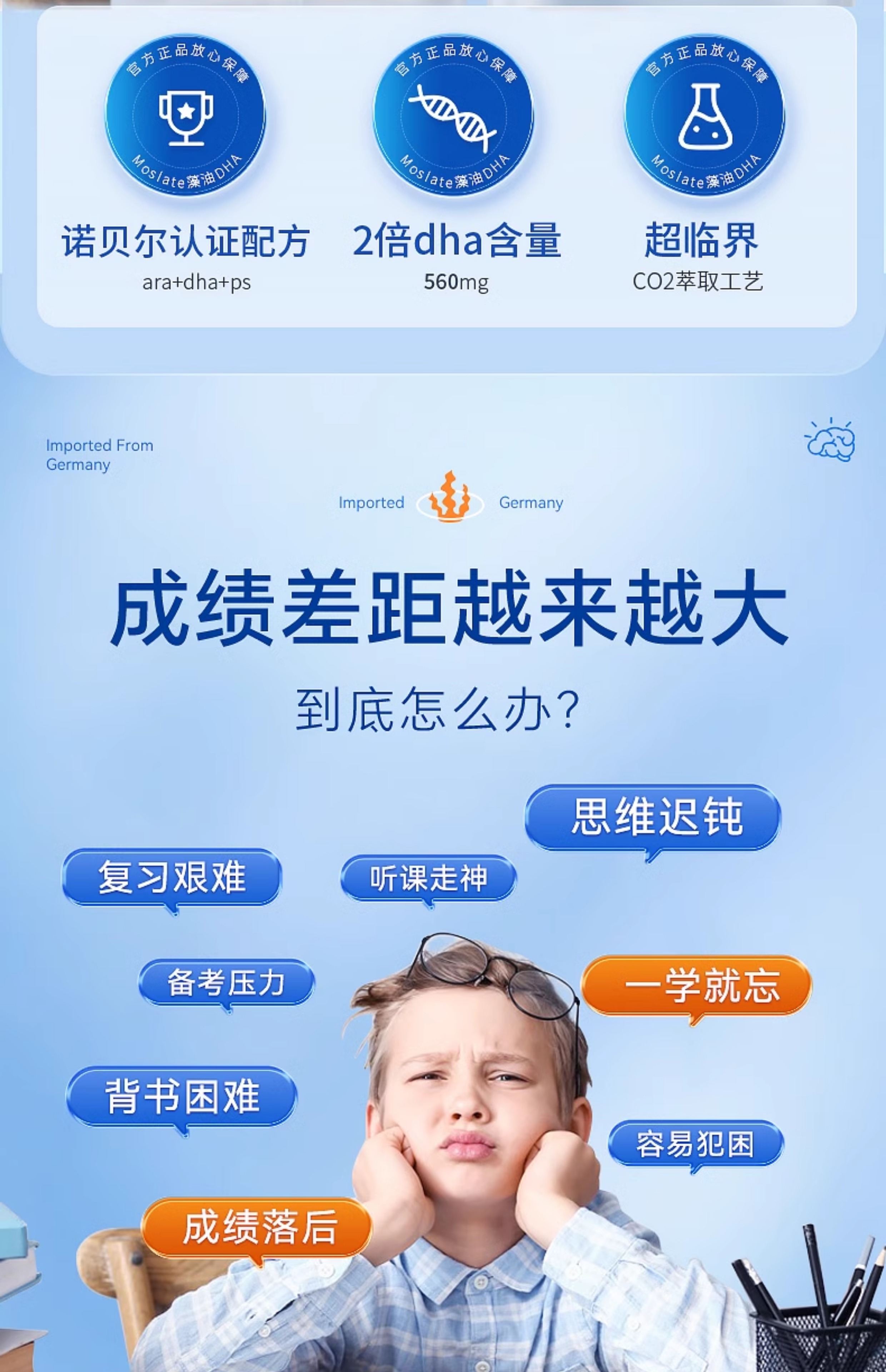 【巅峰含量】moslate德国高端原装进口280mgdha儿童青少年记忆力