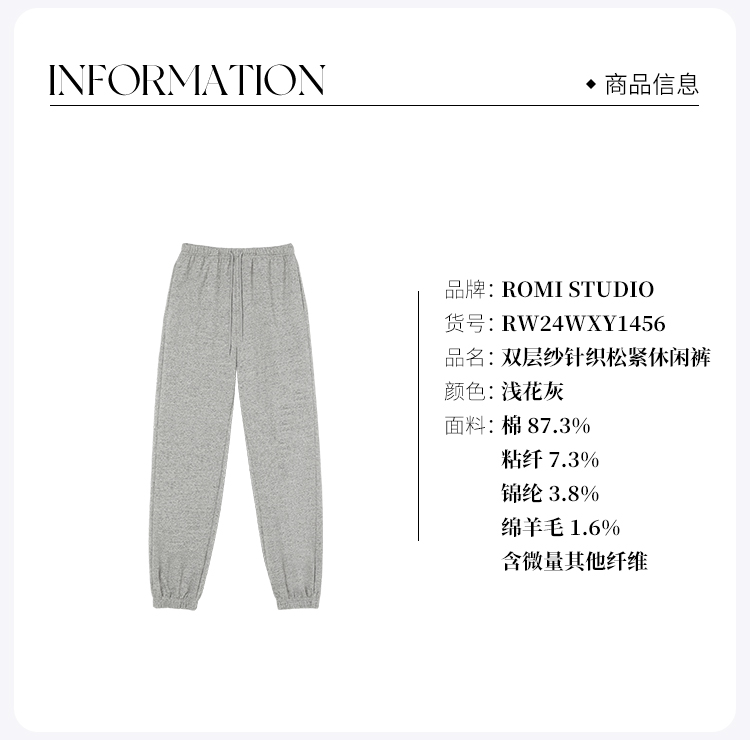 ROMI STUDIO“格雷秋意”绵羊毛混纺保暖松紧腰休闲裤RW24WXY1456