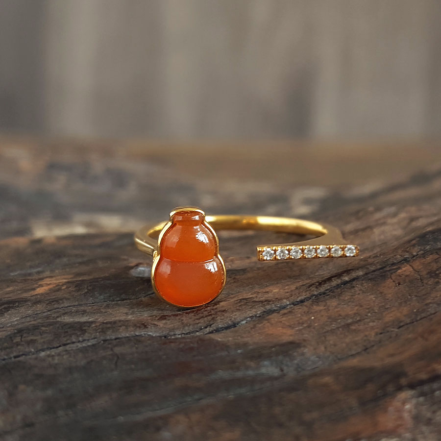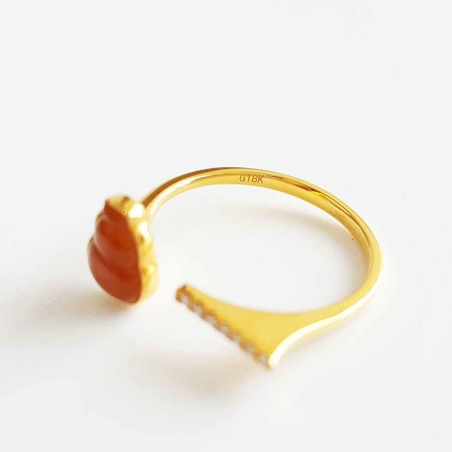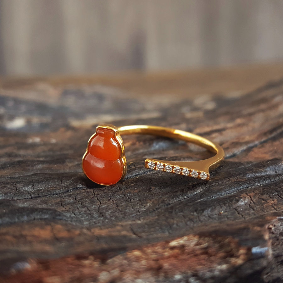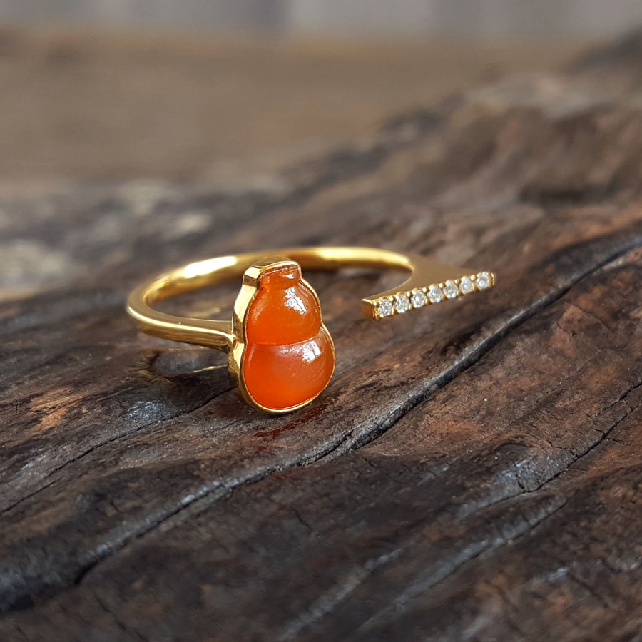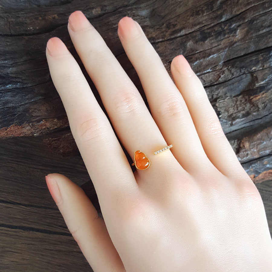 名称 | AU750黄金镶钻镶天然细腻冰种葫芦(福禄平安)黄翡开口戒指 |