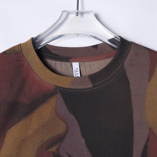 T2605夏季新款时尚个性美式抽象撞色圆领短袖T恤小众设计高级感上衣