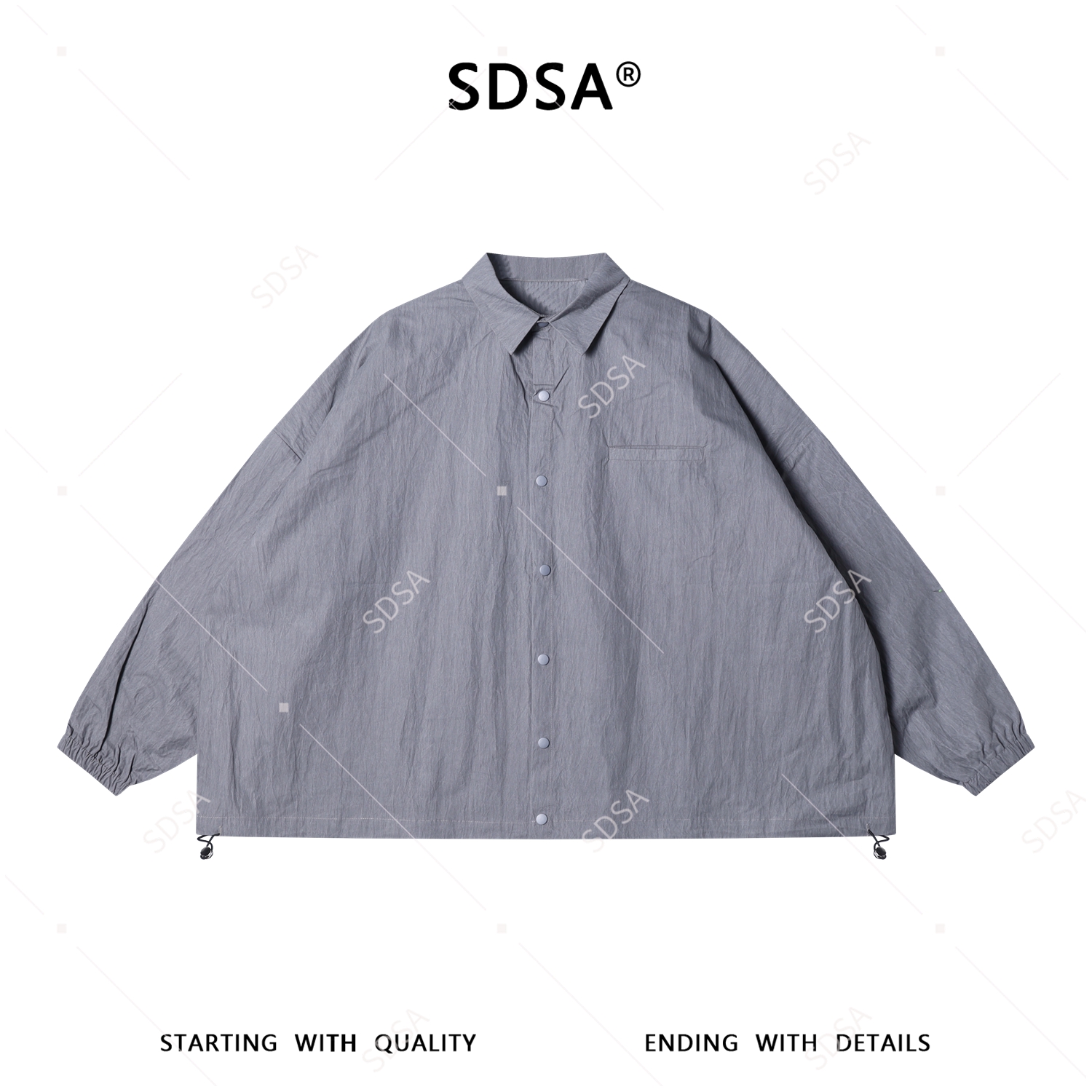 SDSA男装2026新款高贵轻奢韩版纯色按扣长袖衬衫下摆松紧设计百搭