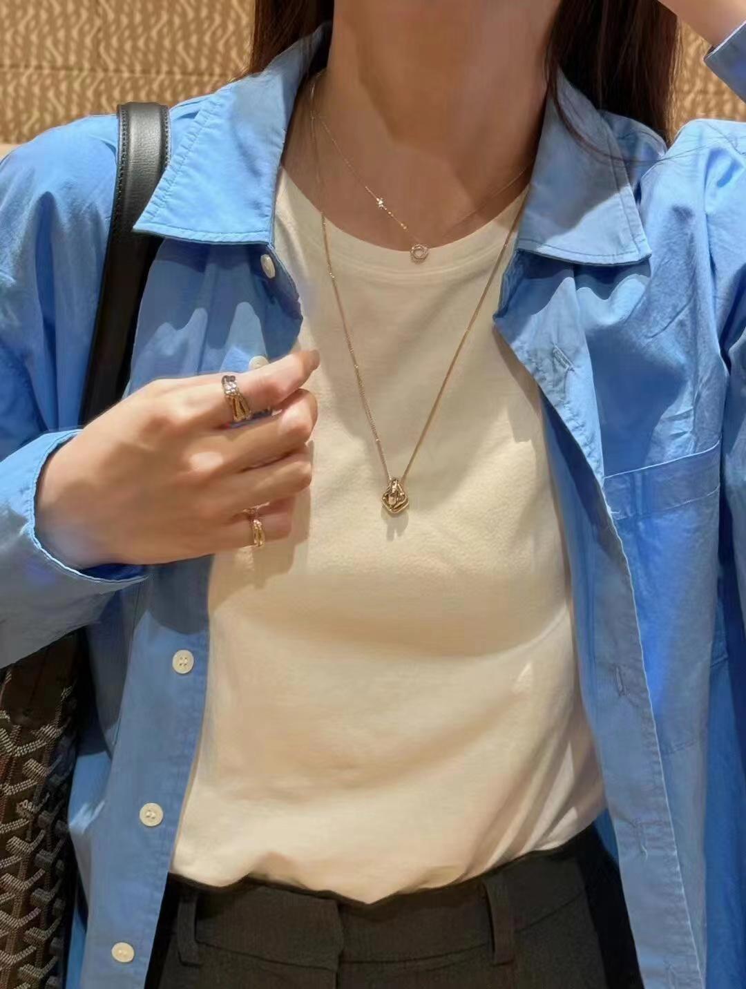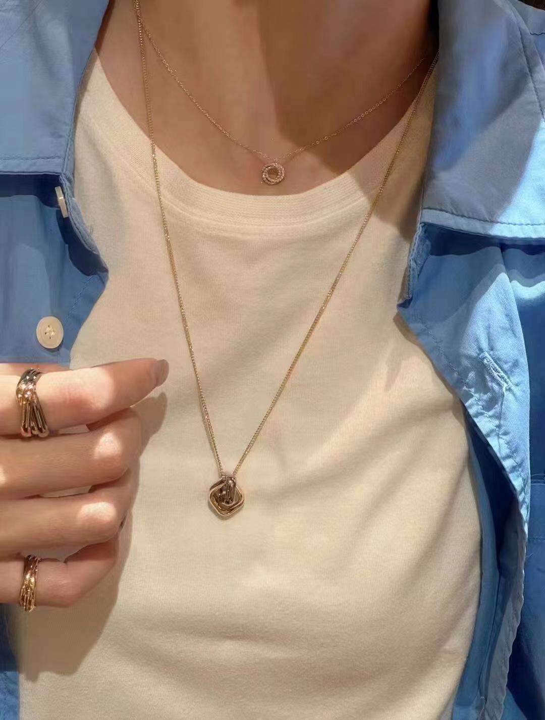 Trinity枕形三色环项链,Trinity系列珠宝相呼应,每个环圈都代表着我的不同身份,三枚环圈交织,犹如每一面的我都不可分割,互相联结交融,共同编织成不被限制的自我