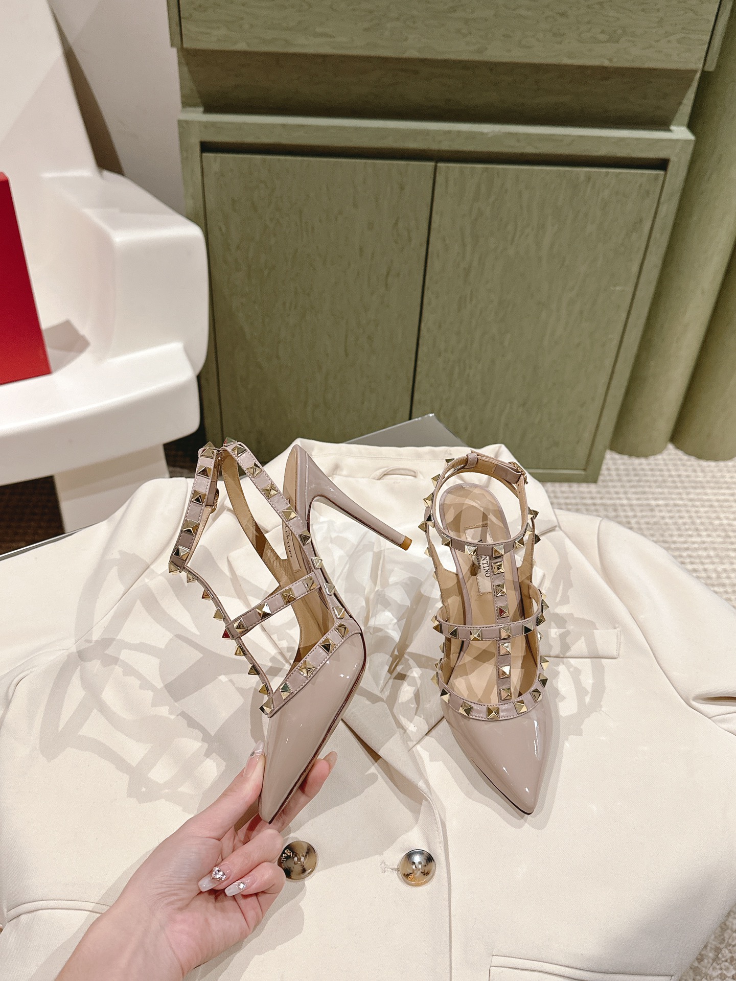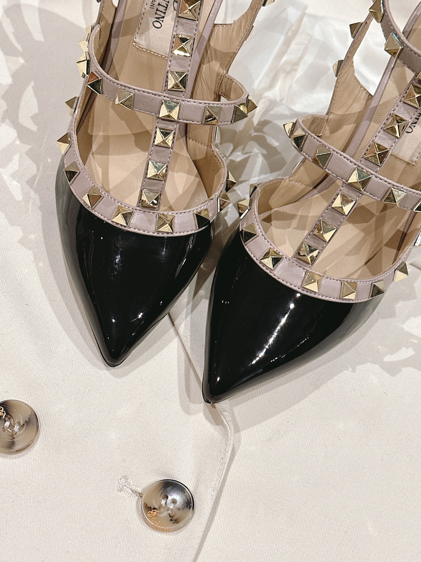 四季百搭系列!你的鞋柜缺一双吧?[得意]代购级别!🔥 VALENTINO 整个系列台资工厂出品!进出专柜无压力!ROCKSTUD 华伦天奴铆钉漆皮芭蕾舞平底鞋 ONE STUD复古工艺金字塔大柳钉扣平底鞋/高跟鞋