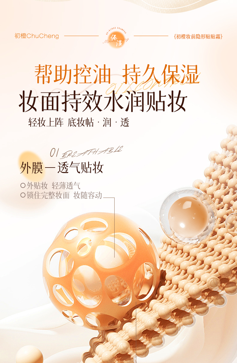 初橙贴贴霜妆前乳保湿隔离霜轻盈养肤型隐形女毛孔控油