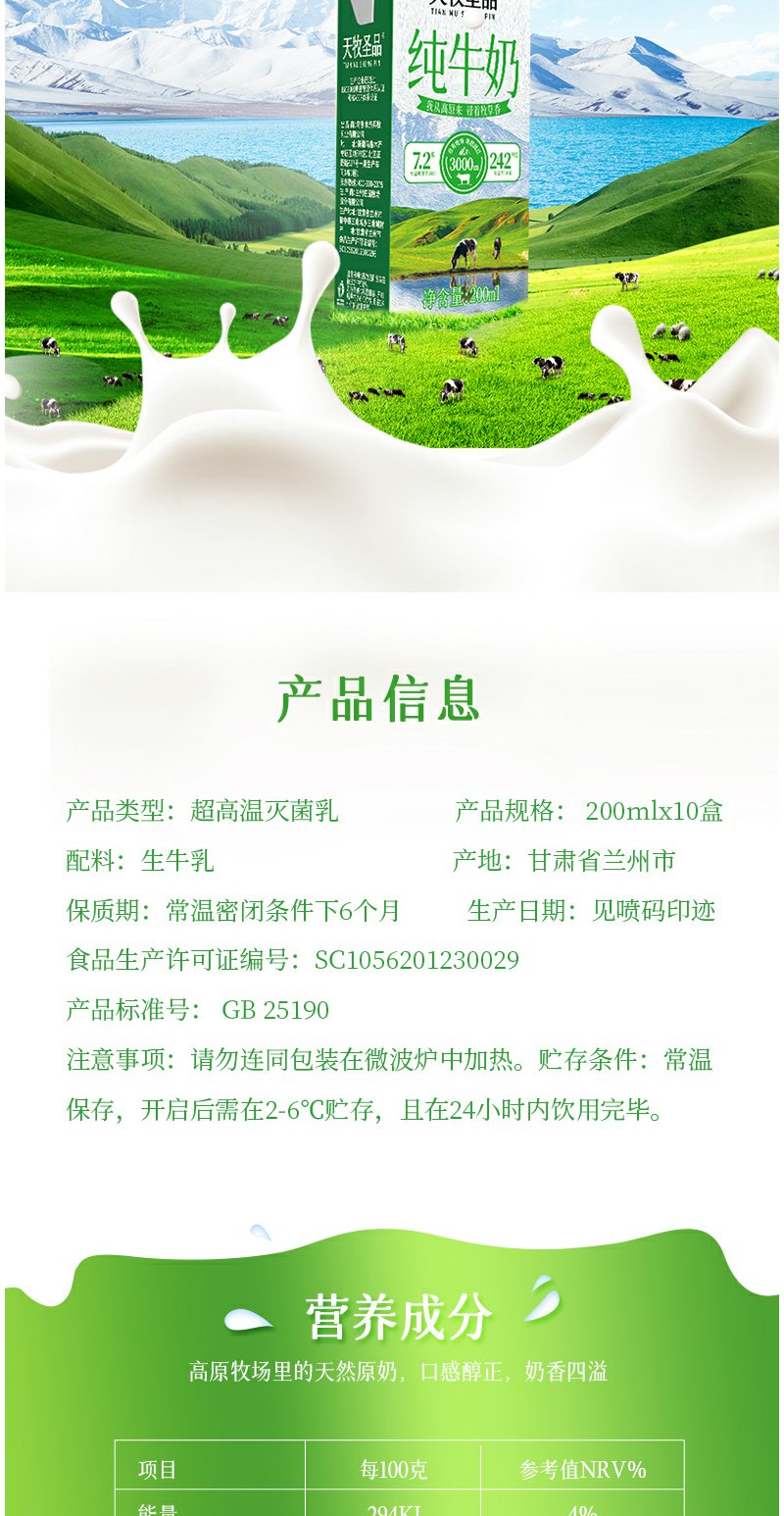 天牧圣品纯牛奶3.6g蛋白质——产自北纬39雪域高原牧场3提装