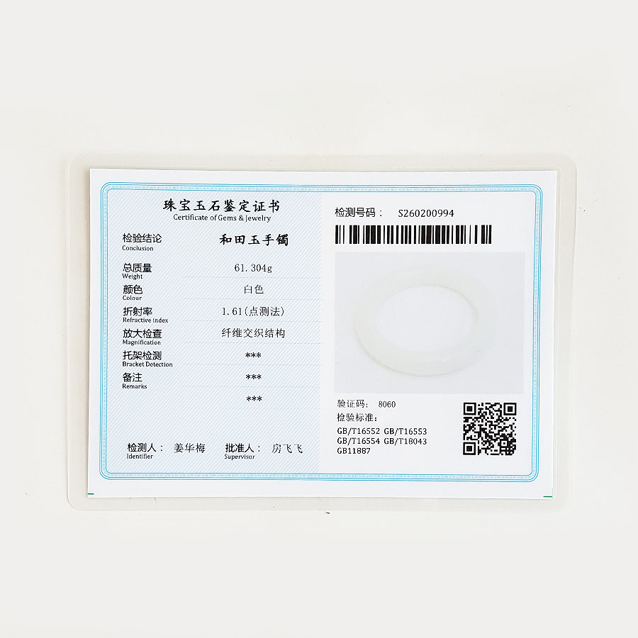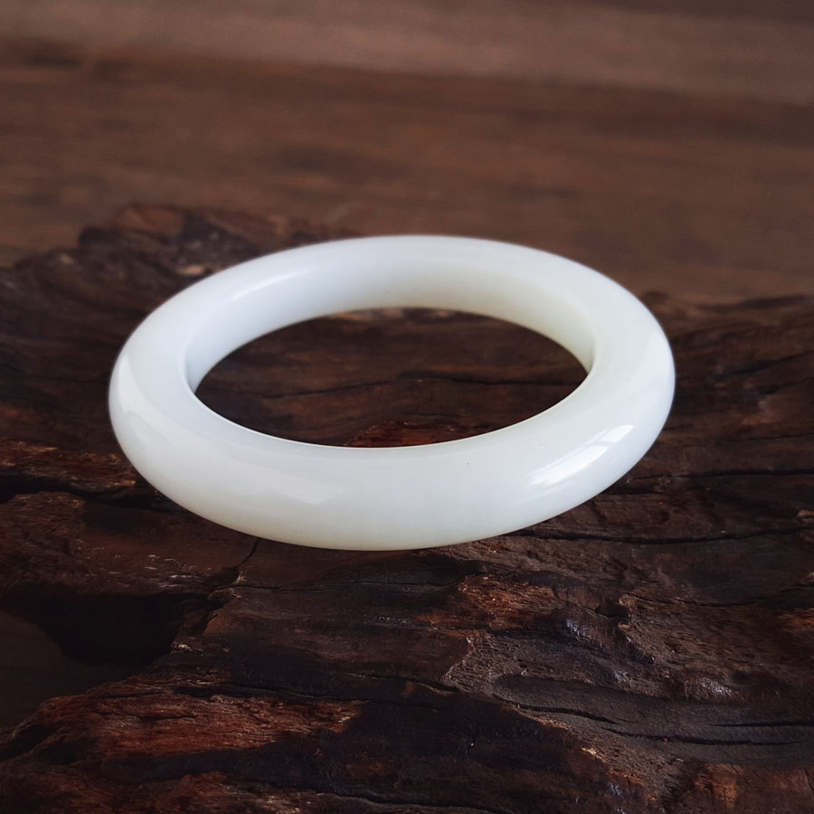 【天然正品】天然新疆且末料细腻一级白油润度佳55.5号和田玉手镯55.5号(皆取最大值)120226NJT52