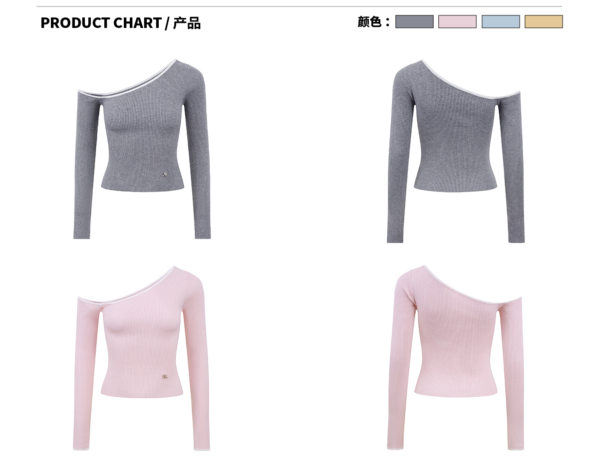 Ariseism 美式复古设计感斜肩长袖t恤女春季款修身显瘦打底上衣