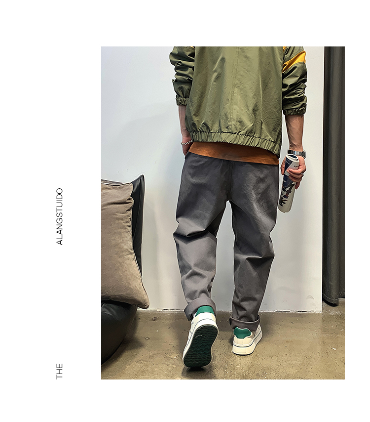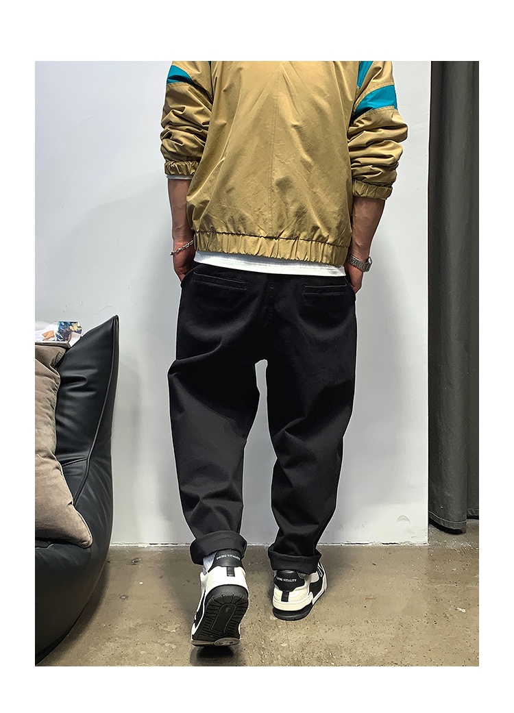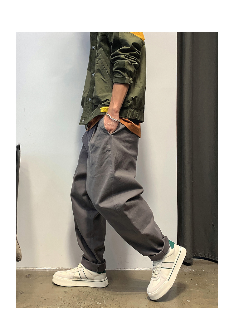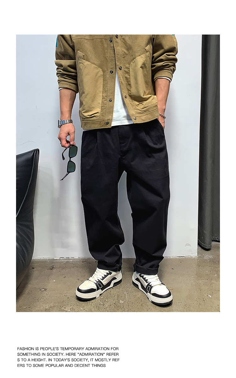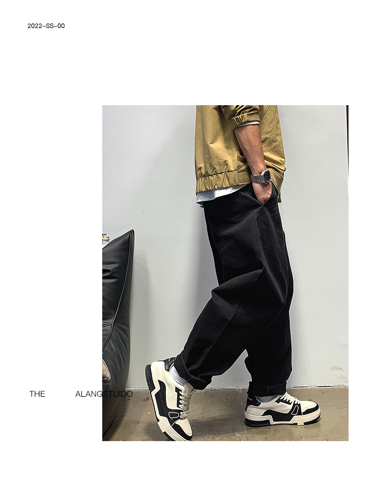 徐太浪春秋日系休闲纯色宽松小脚裤男士高级感潮流阔腿直筒长裤子