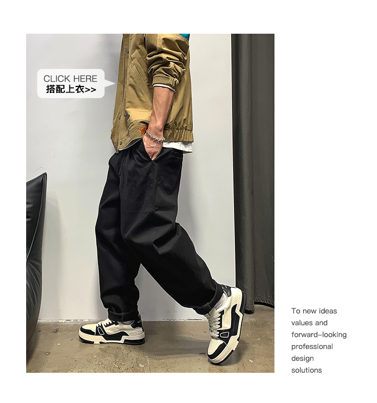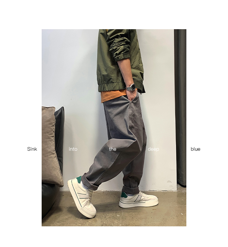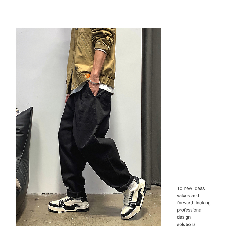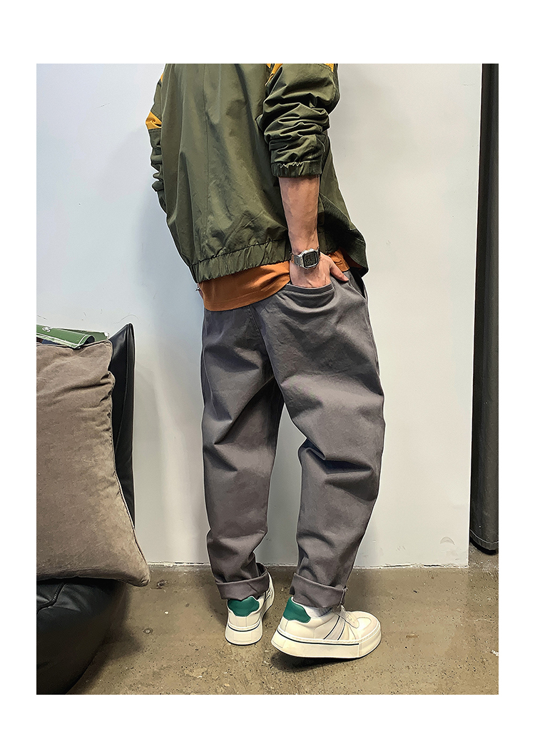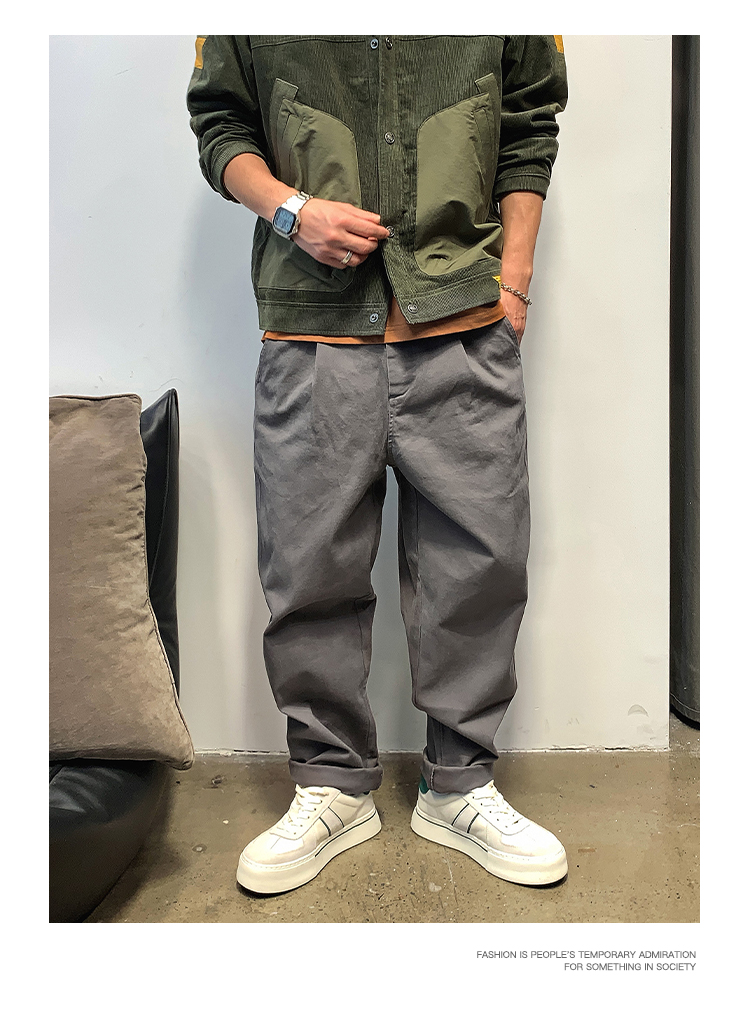 徐太浪春秋日系休闲纯色宽松小脚裤男士高级感潮流阔腿直筒长裤子
