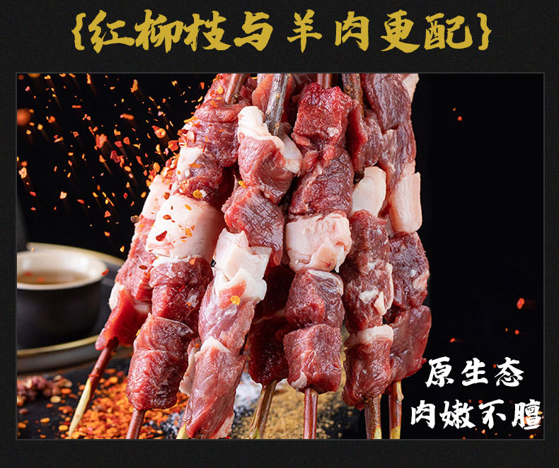 【顺丰冷链】新疆羊肉红柳大串 生鲜纯手工羊肉串 散养大尾羔羊后腿 野餐烧烤 新疆羊肉串30g*10串/包大串ASJMY