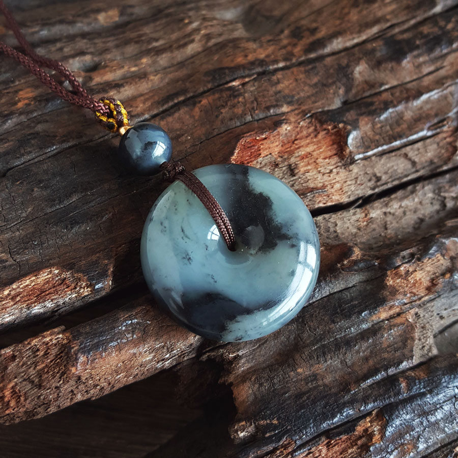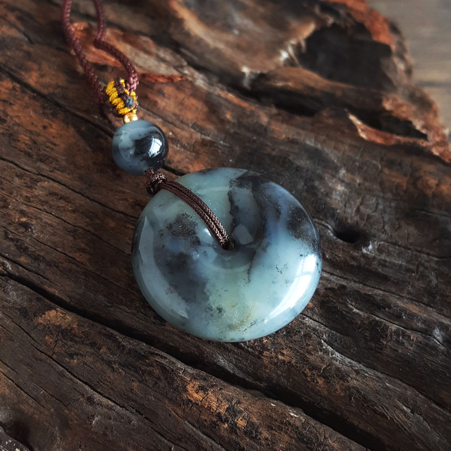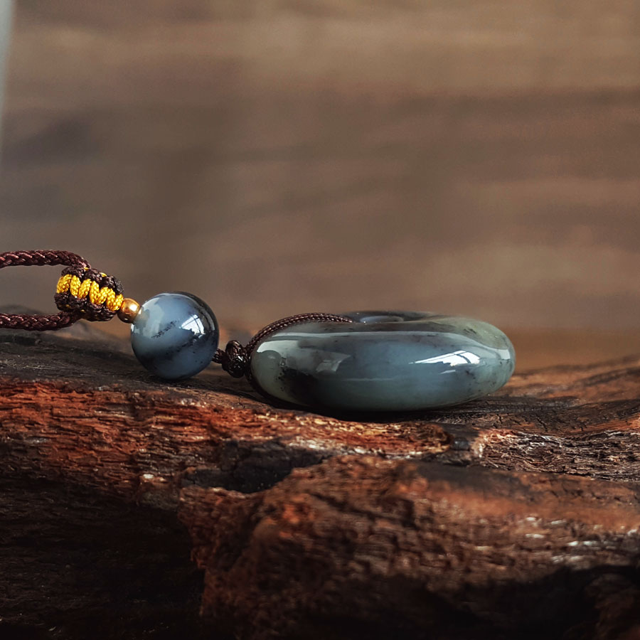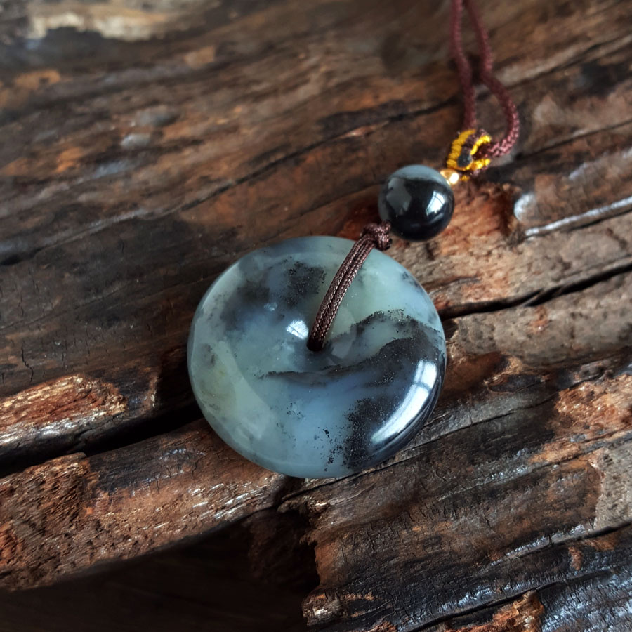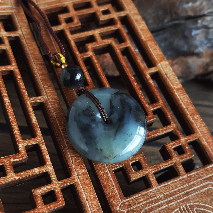 名称 | 天然精品平安扣造型青花籽料(和田玉吉祥、圆满)吊坠项链 |