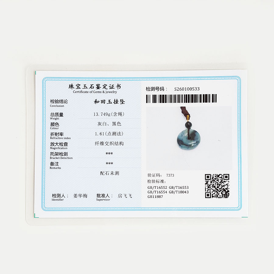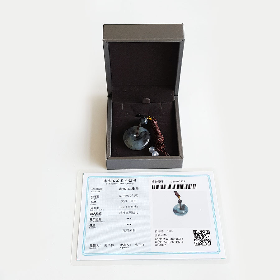 【天然正品】天然精品平安扣造型青花籽料(和田玉吉祥、圆满)吊坠项链27.1*27.1*8.5MM(皆取最大值)130126NJS38特价:1680
