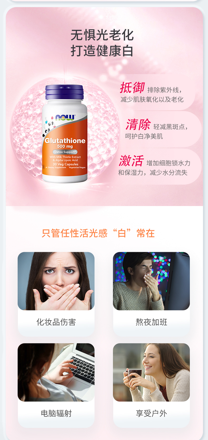 NOW诺奥双倍强度谷胱甘肽胶囊500mg30粒/瓶