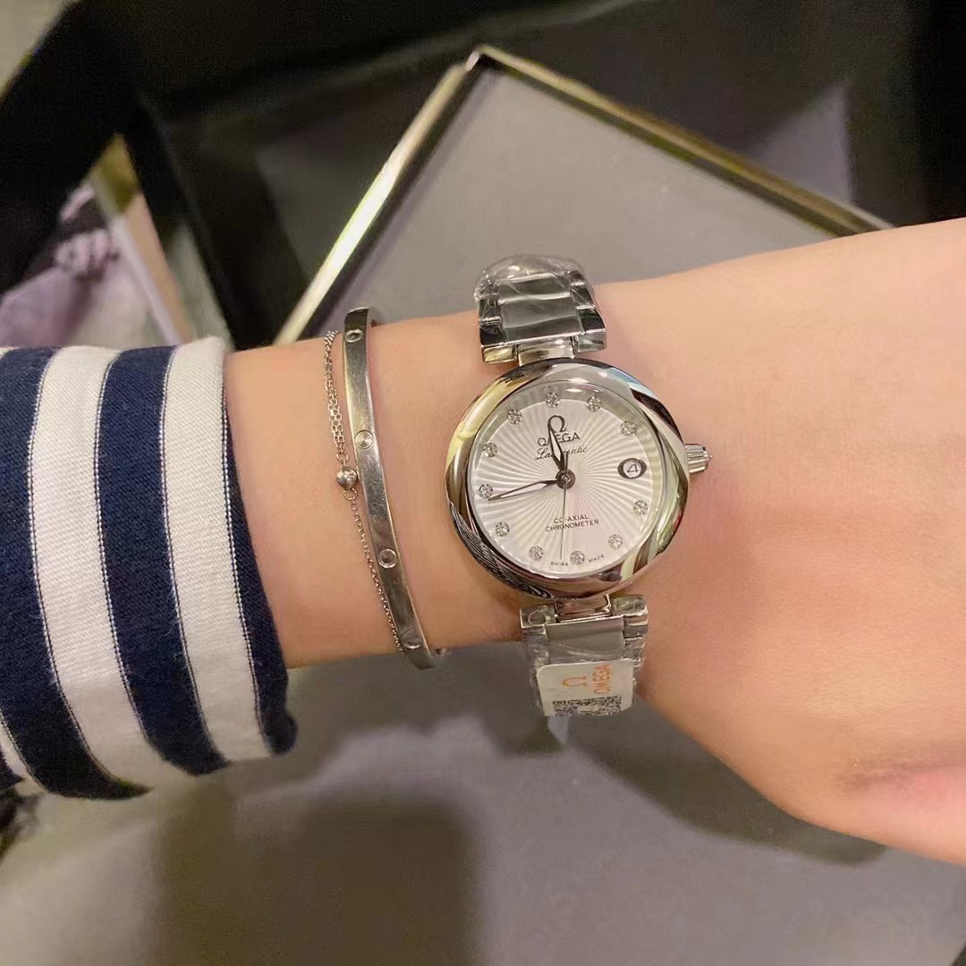【欧米茄碟飞系列】石英机芯 100米防水 女表 瑞表 34mm 白色表盘 精钢 镀金(SP)