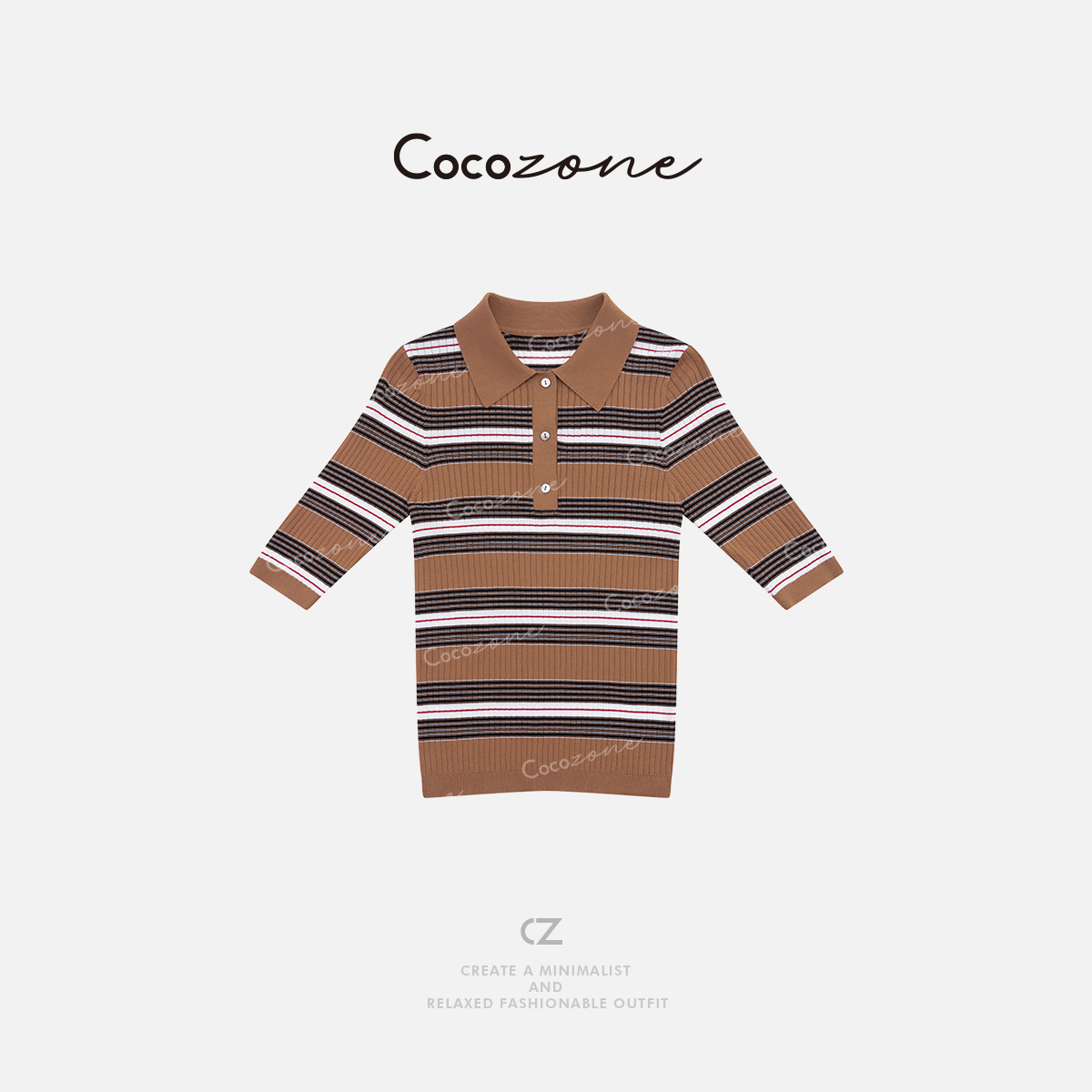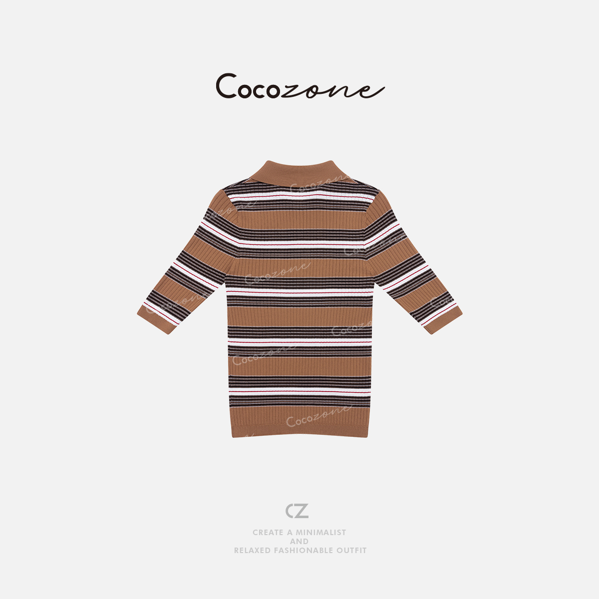 COCO ZONE 刘一一 【人丝混纺】复古撞色条纹毛织上衣CD1A0800