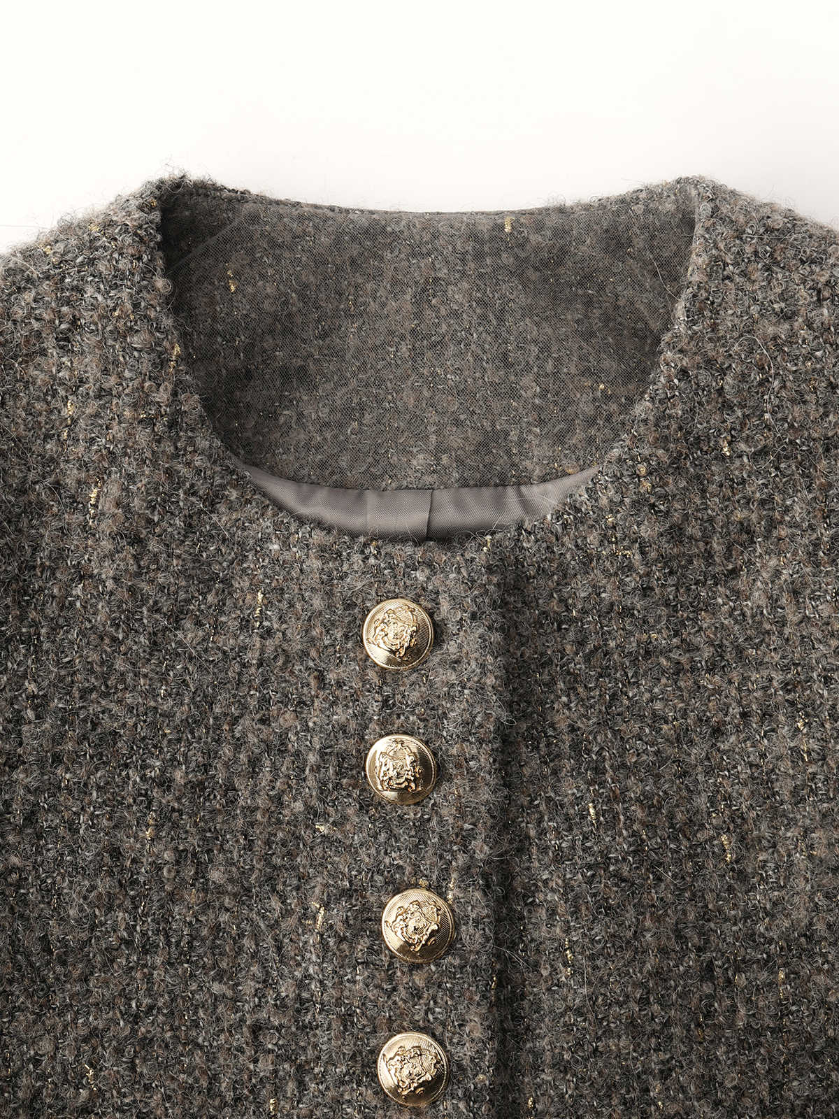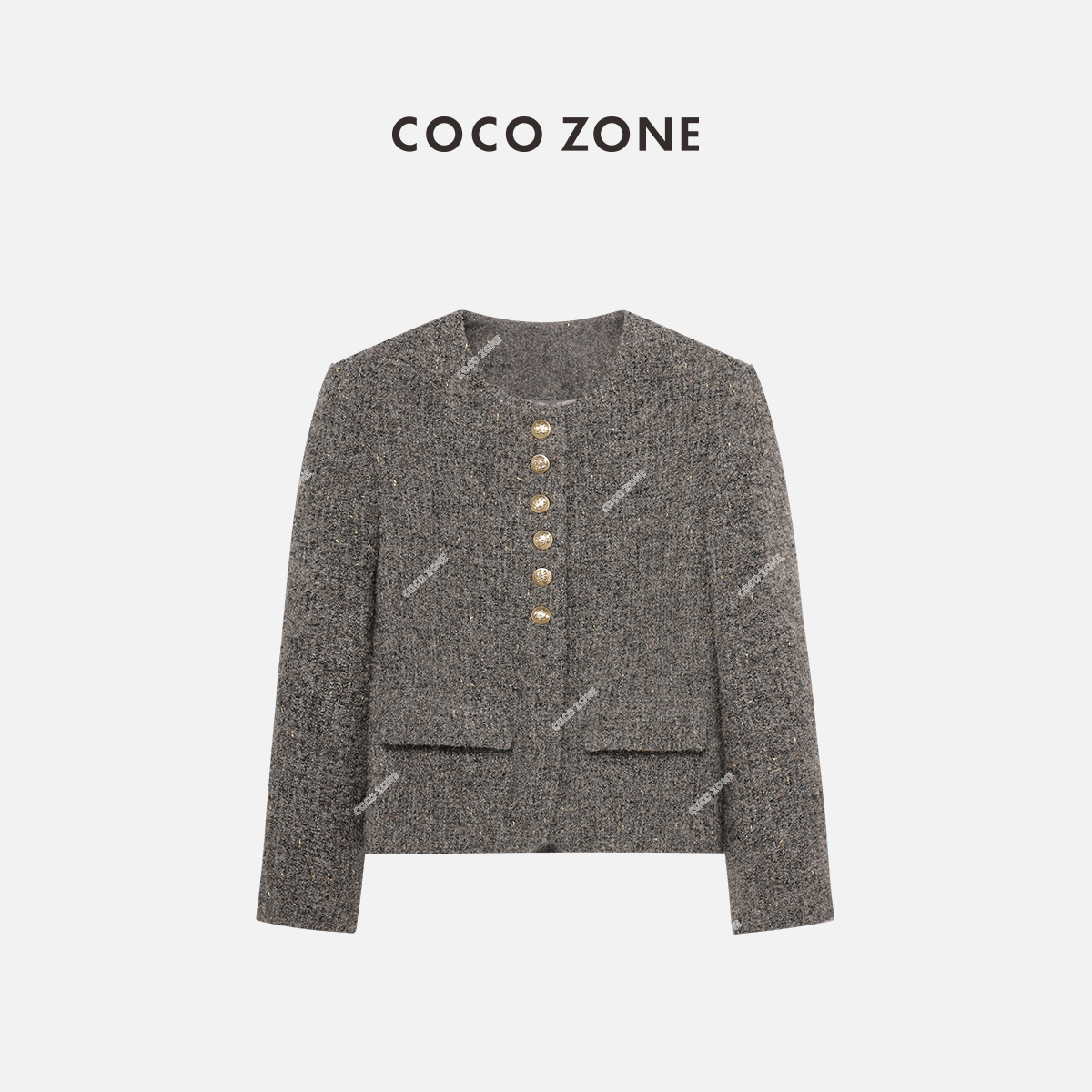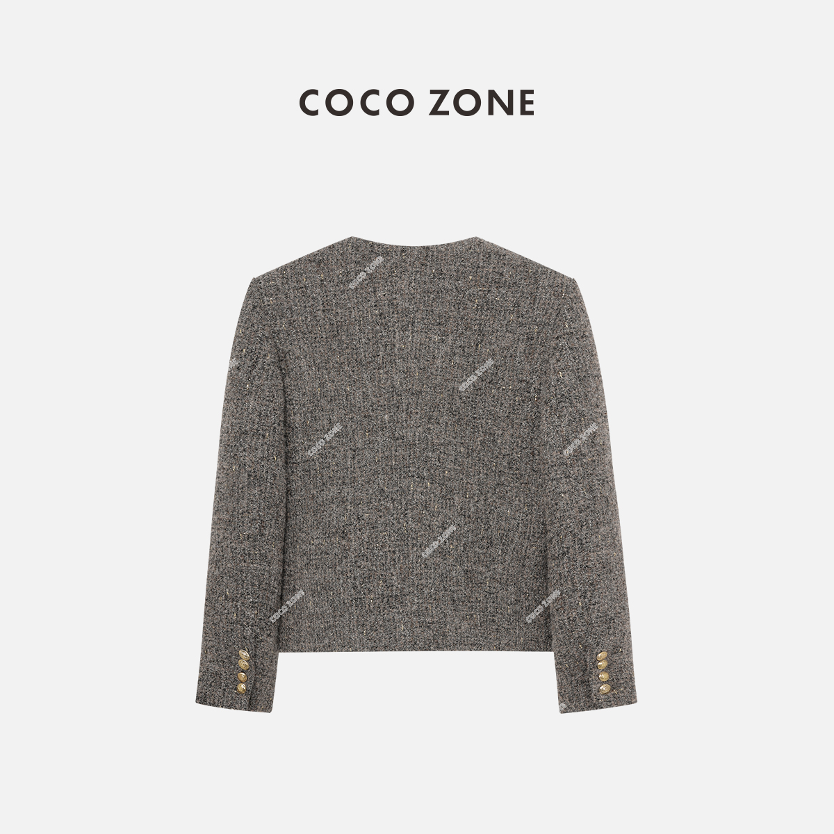 COCO ZONE 高级感小香风圆领金属单排扣气质短款外套 24C10161