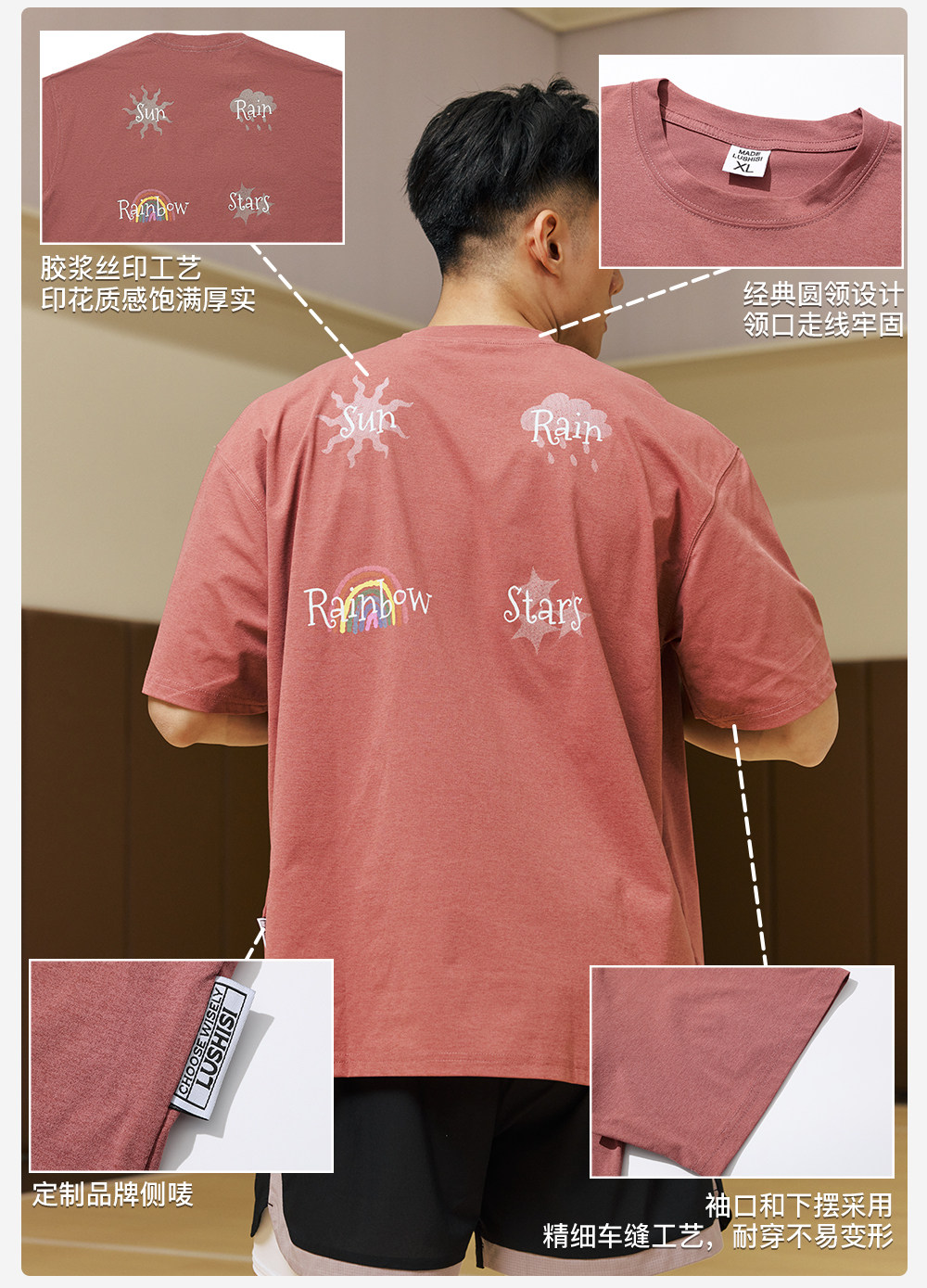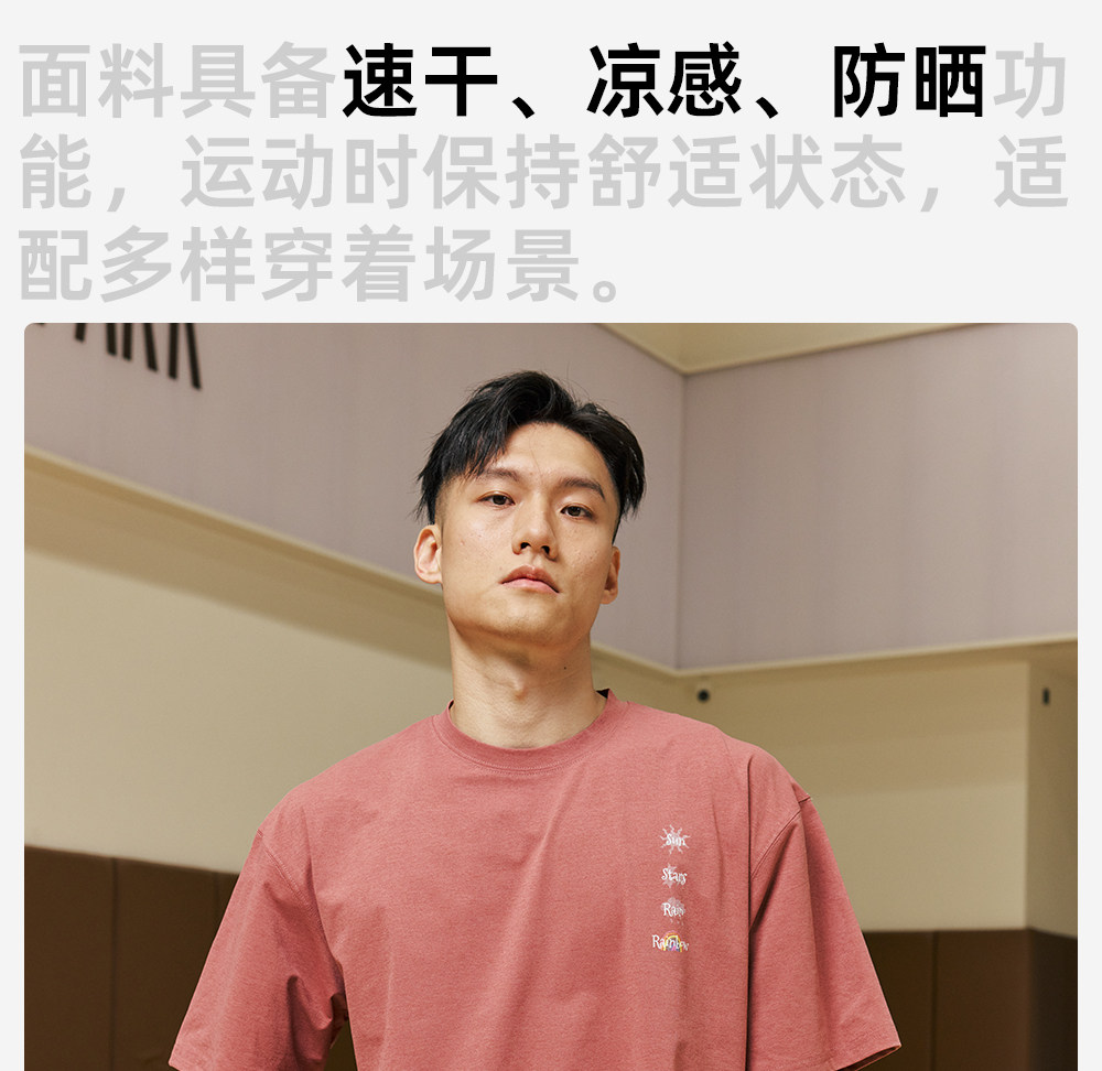 录士LUSHISI绚烂主题速干印花运动休闲t恤情侣篮球短袖宽松潮tee