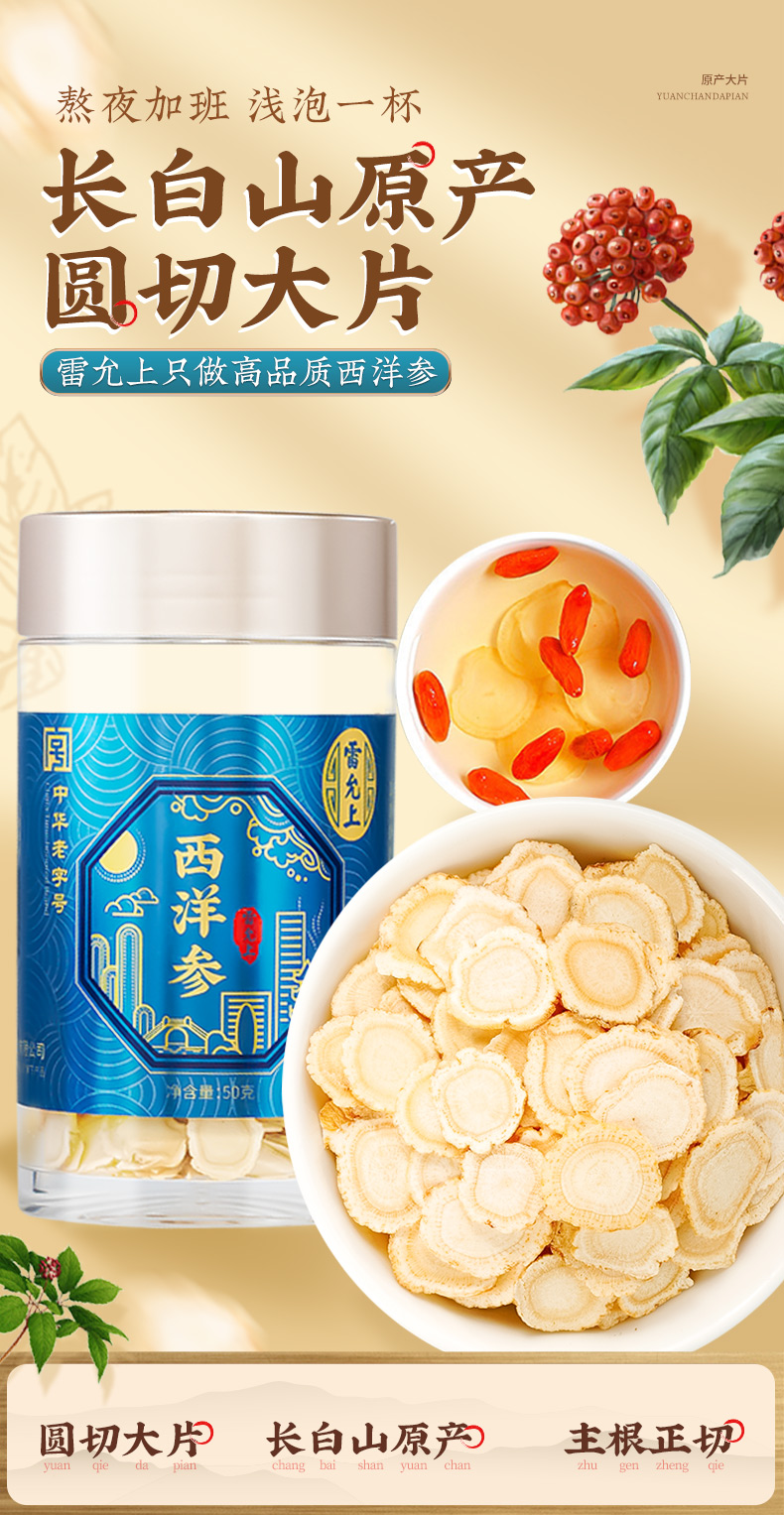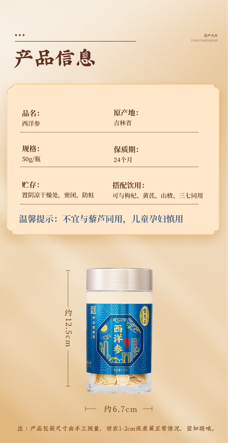 雷允上国产西洋参片50g/瓶(1.2cm-1.6cm)