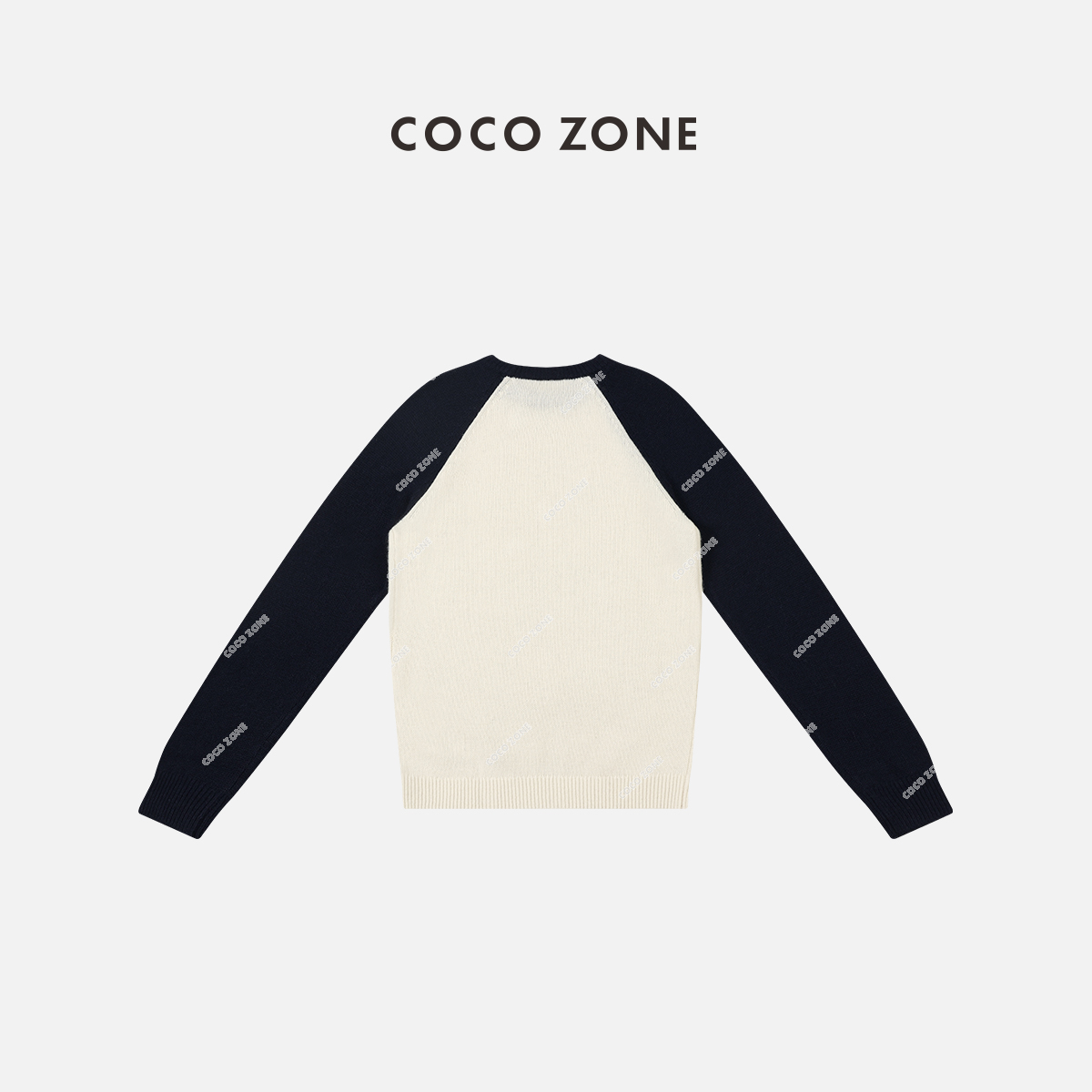 COCO ZONE100%羊毛撞色拼接针织衫打底圆领长袖23C19535