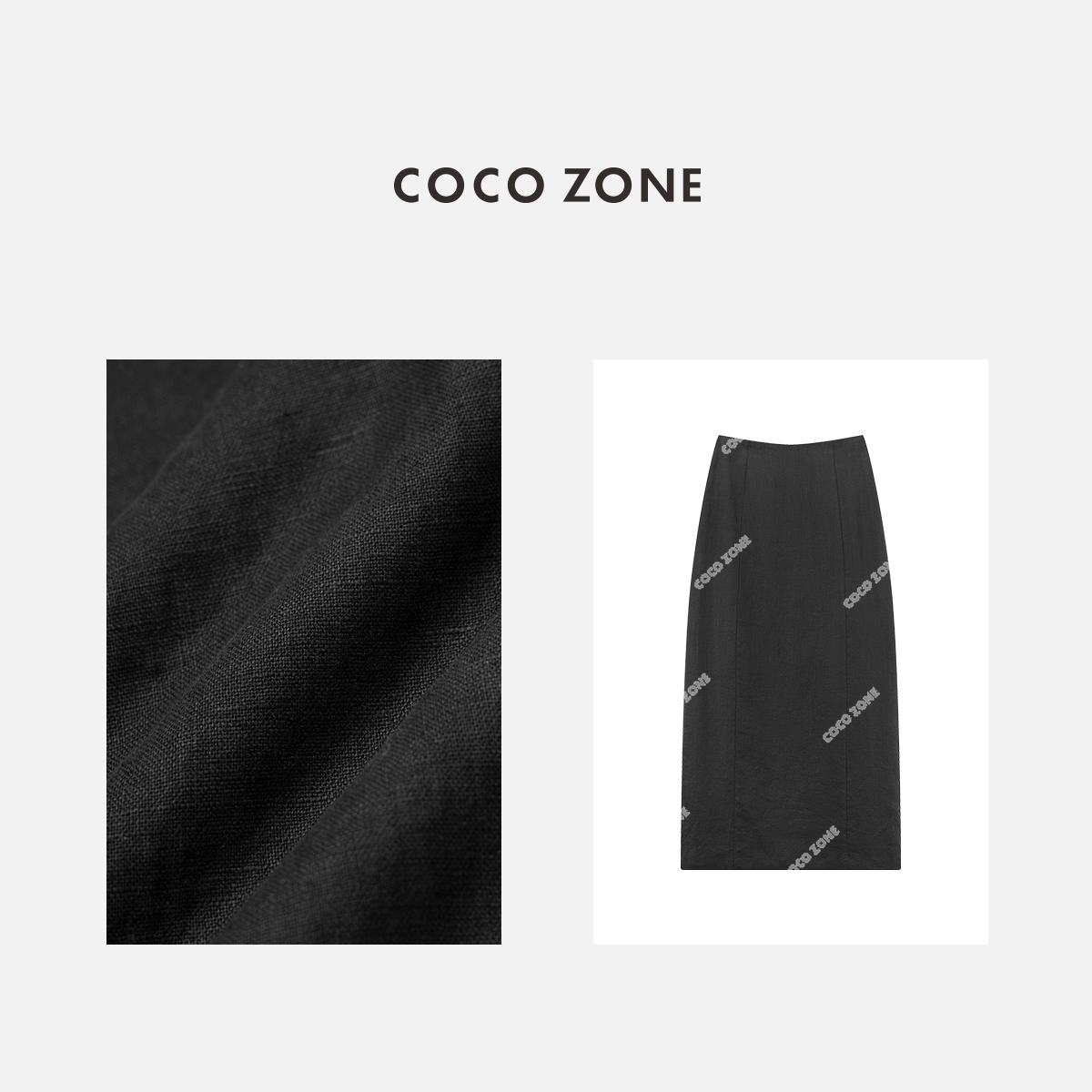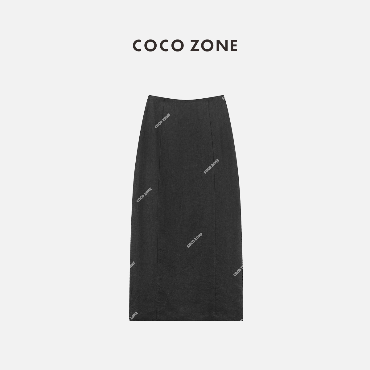 COCO ZONE2024“麻麻感”时尚简约A字半身裙设计感后开叉中长裙CC1B0723