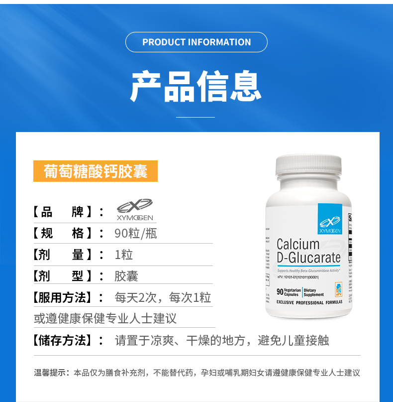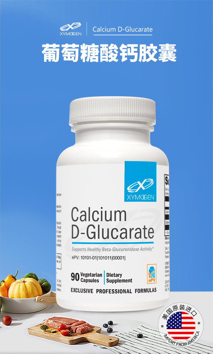 【效期至27年4月】葡萄pu糖酸钙胶囊 XYMOGEN Calcium D-Glucarate 90 C 90粒/瓶