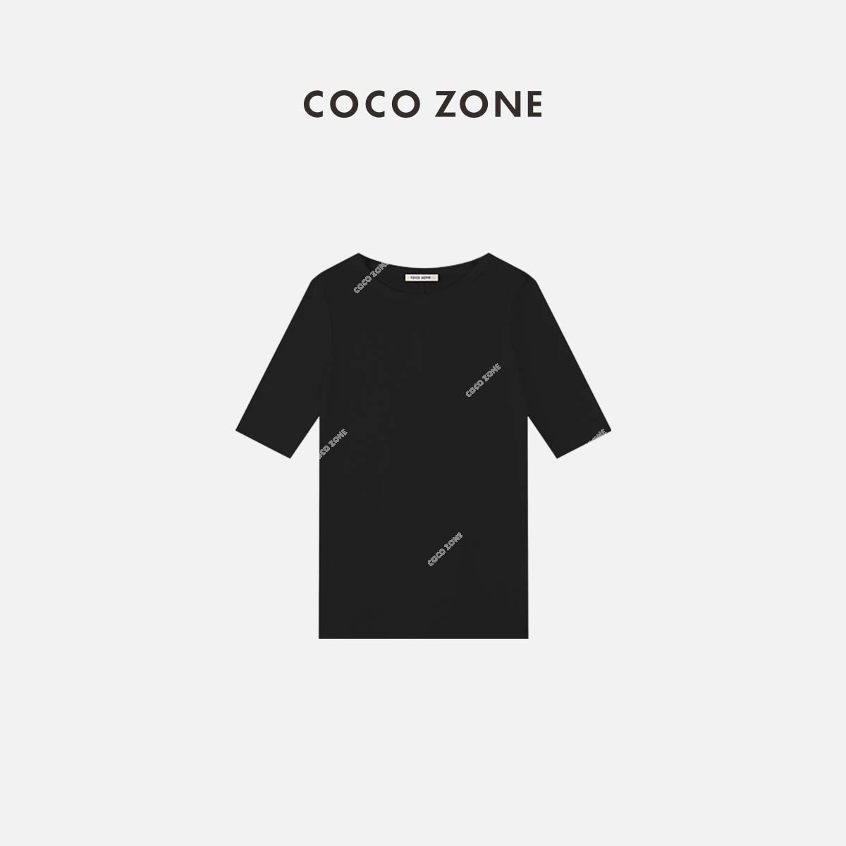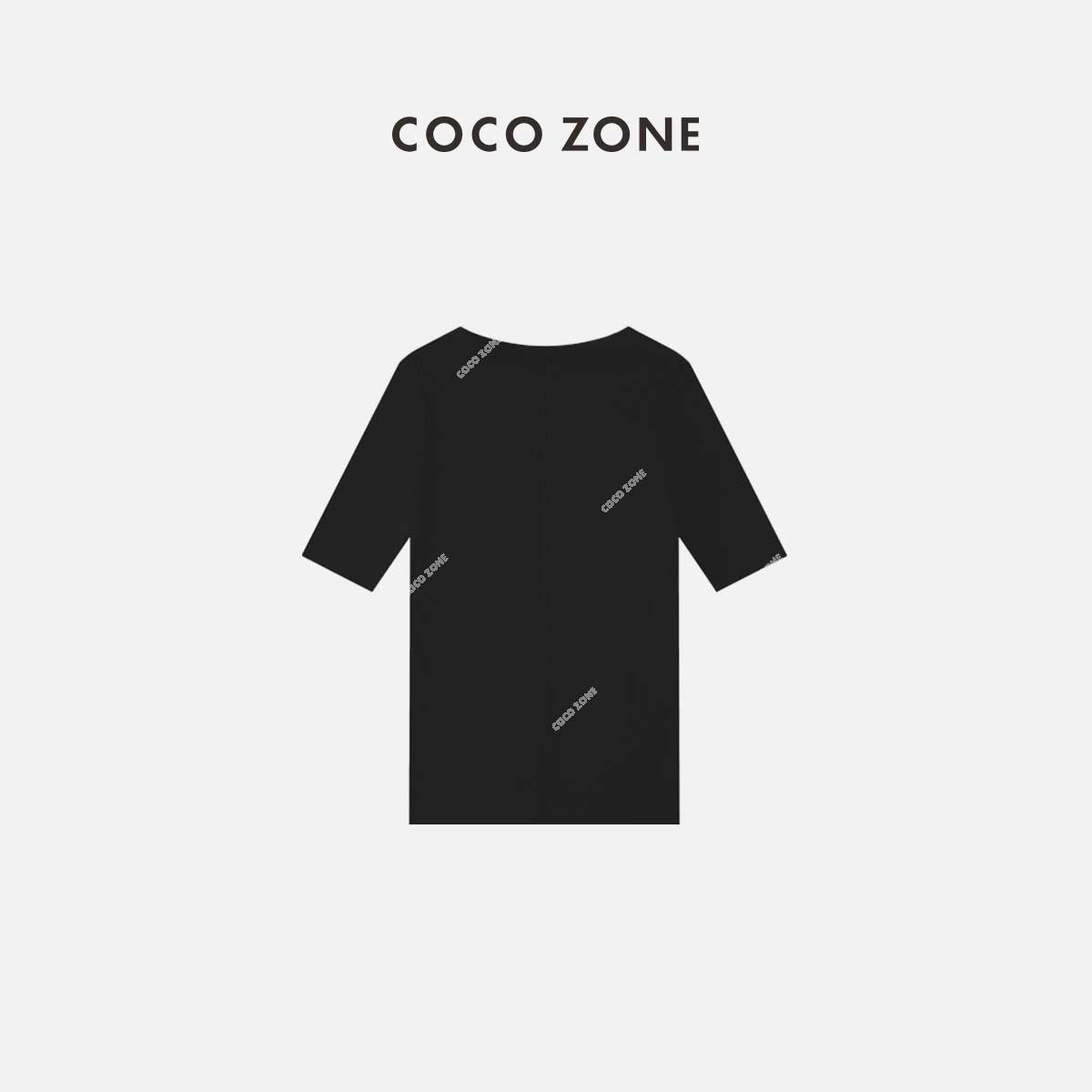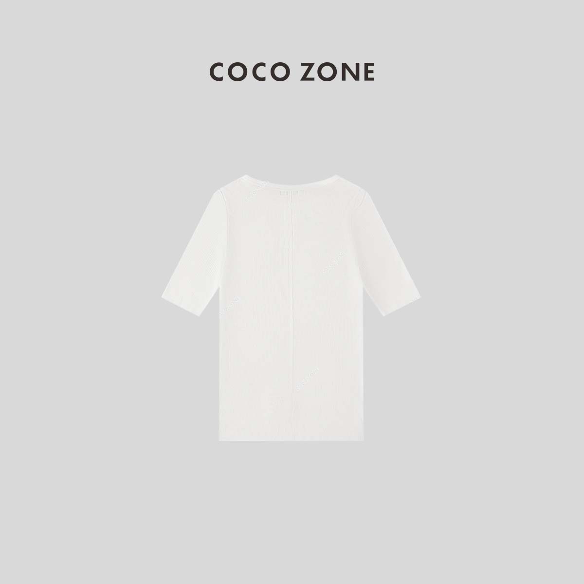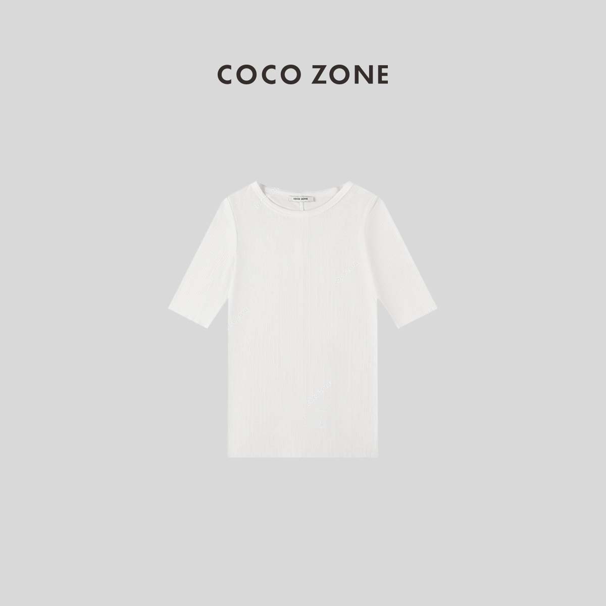 COCO ZONE 气质螺纹T恤纯色中袖打底衫百搭上衣 23C18632