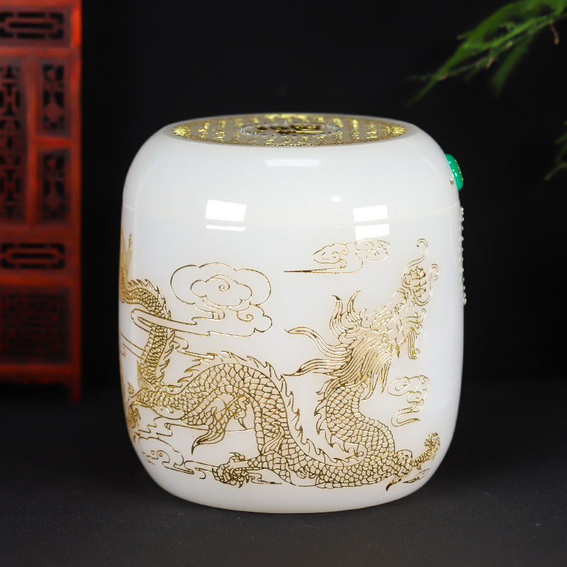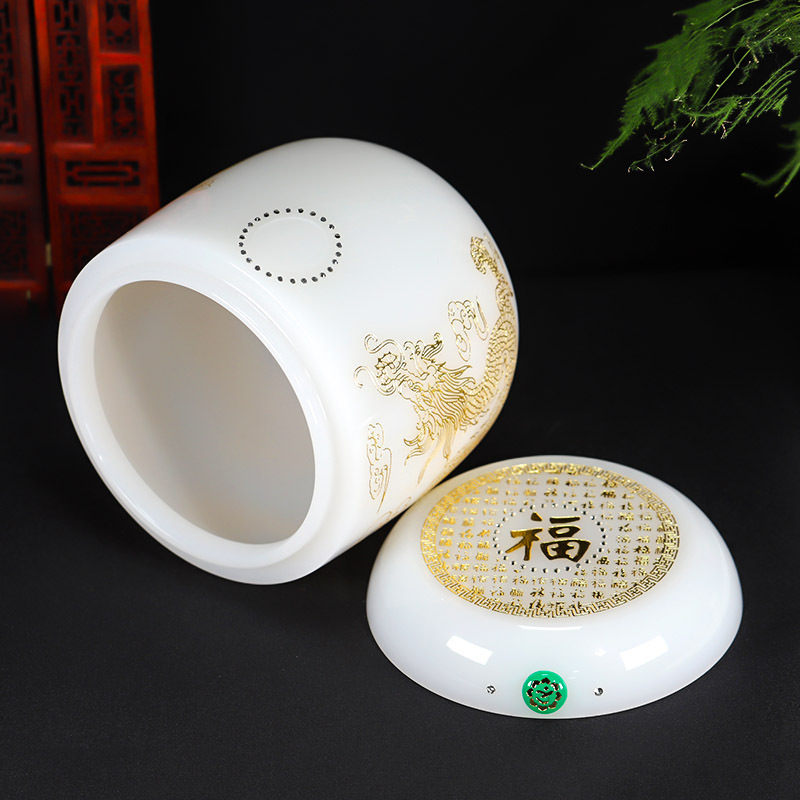 骨灰坛琉璃白玉龙凤骨灰桶骨灰坛