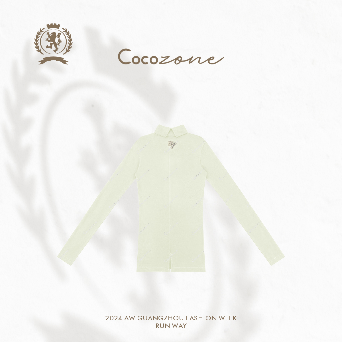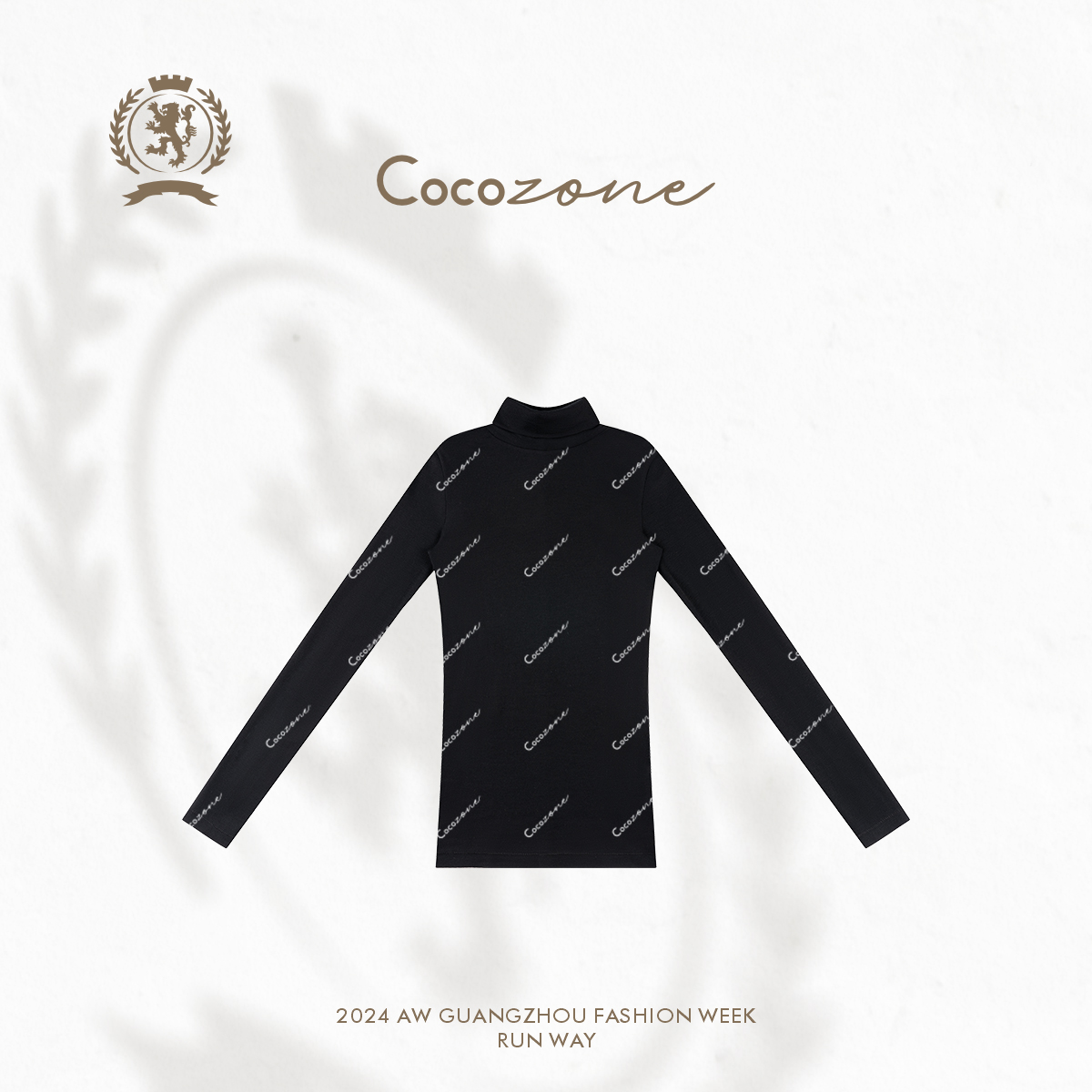 COCO ZONE 刘 一一 “十字花打底”莱赛尔混纺立领长袖T恤 CD1A1791