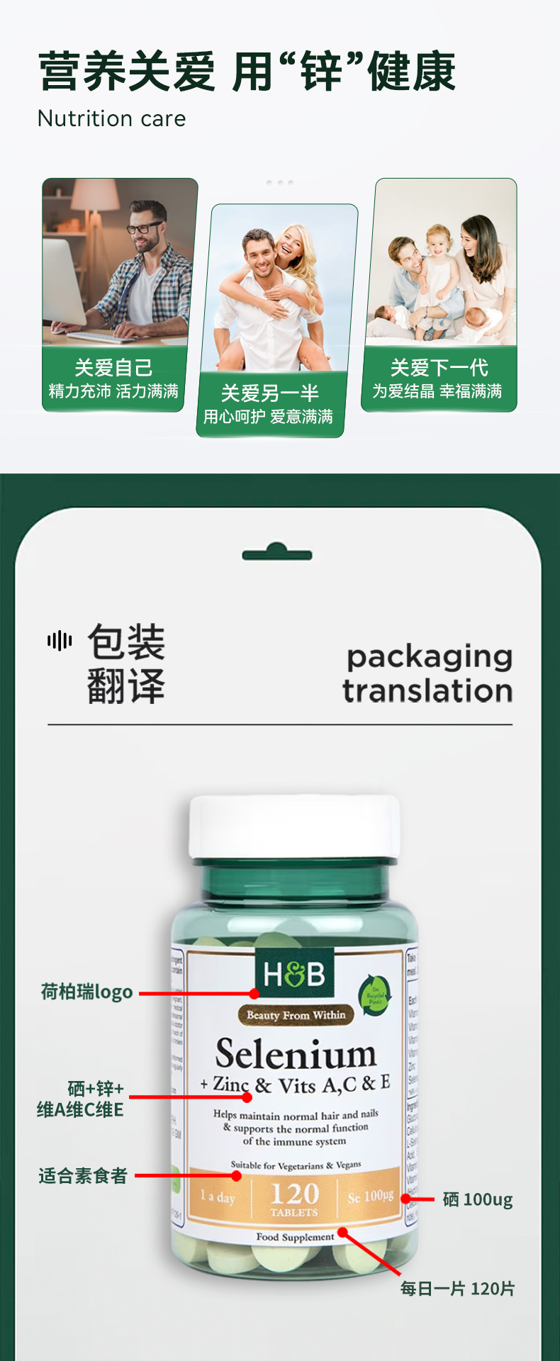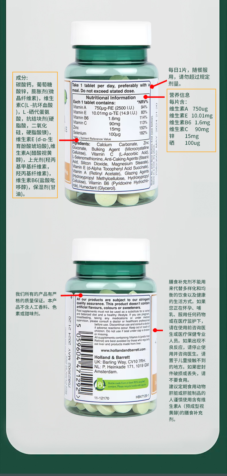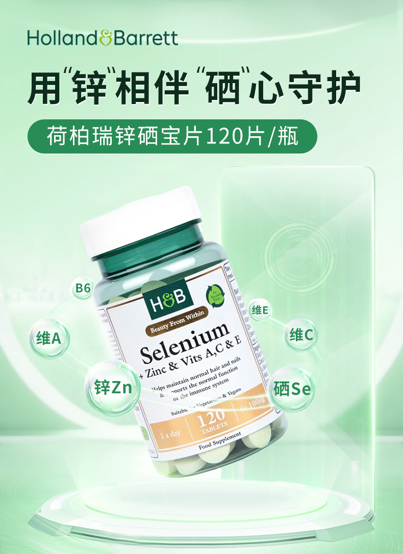 (偏远地区需联系客服拍)英国荷柏瑞锌硒宝 硒+锌和维生素A, C和E 120片/瓶