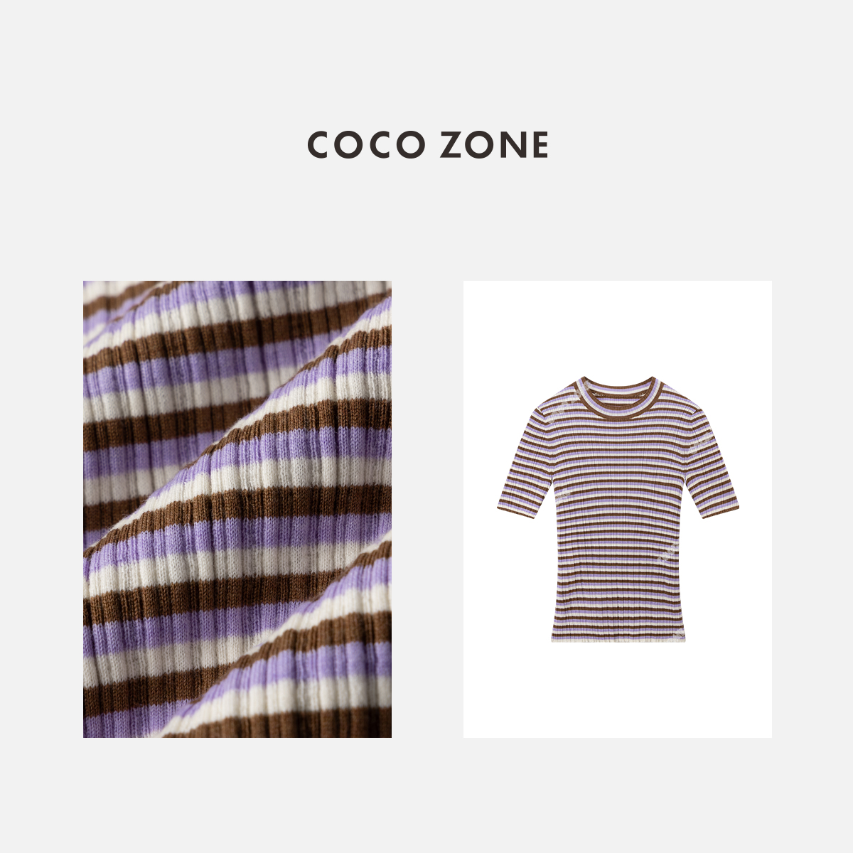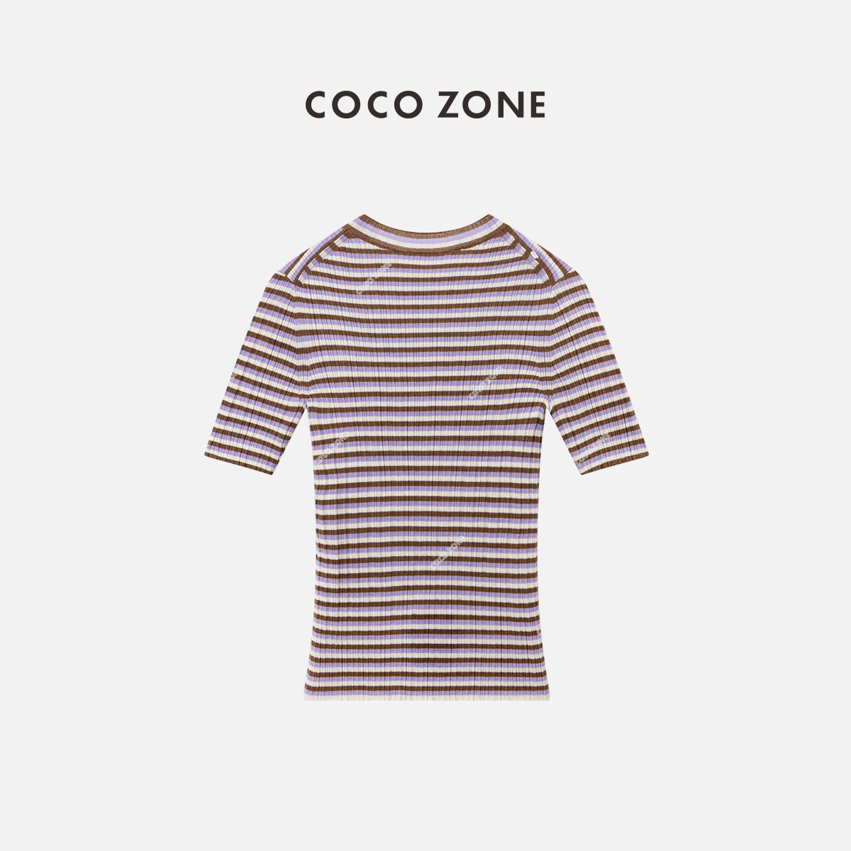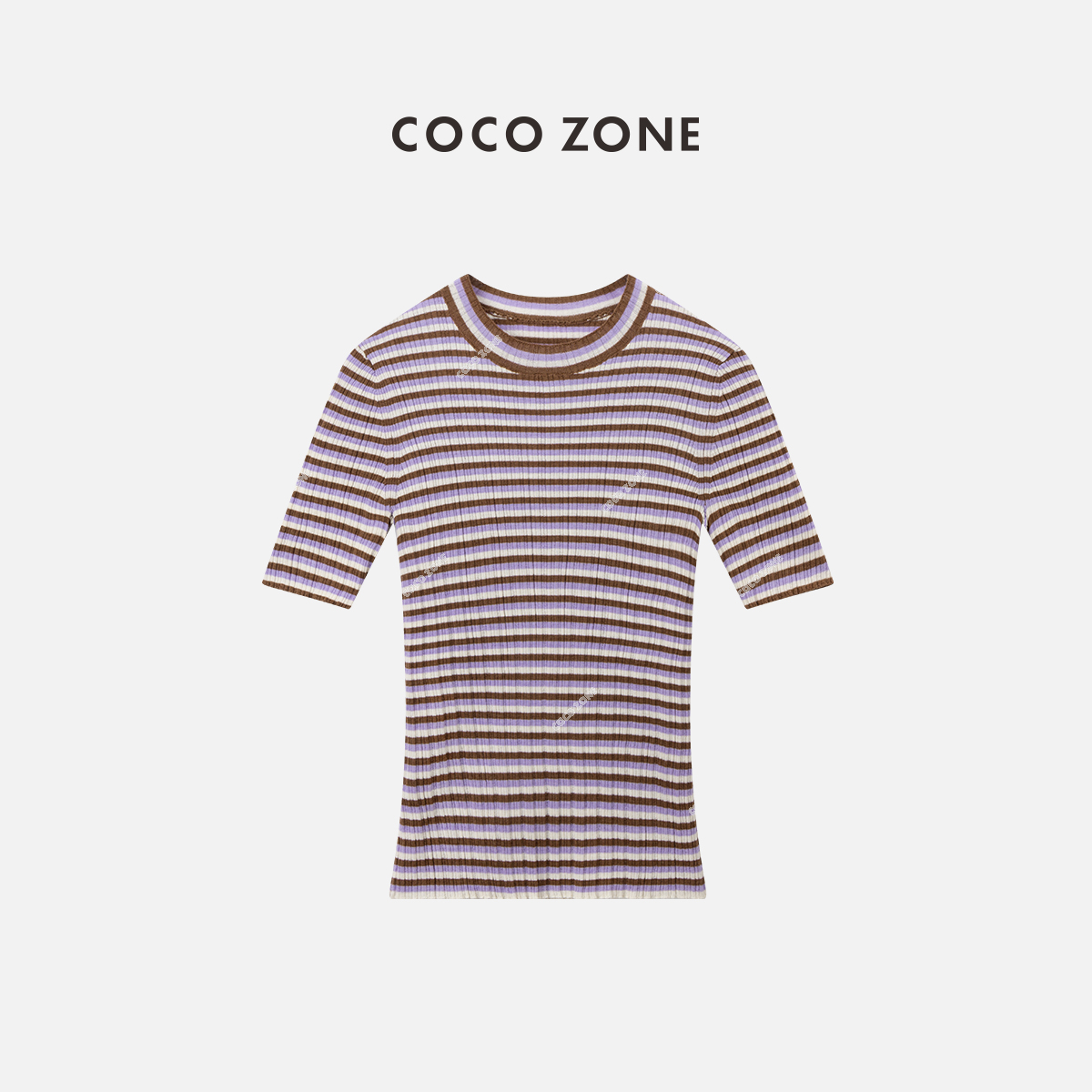COCO ZONE2024早春穿搭条纹短袖针织衫短款圆领上衣CC1A0375
