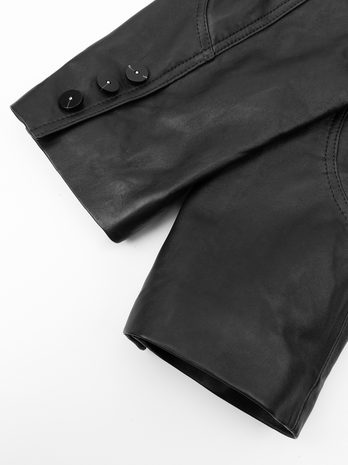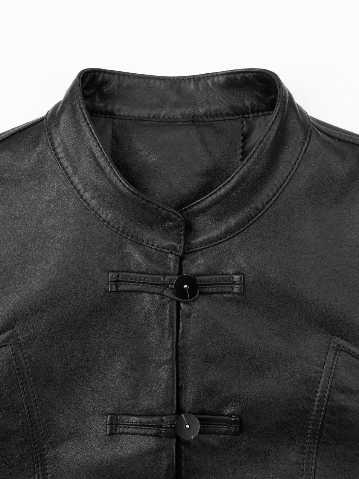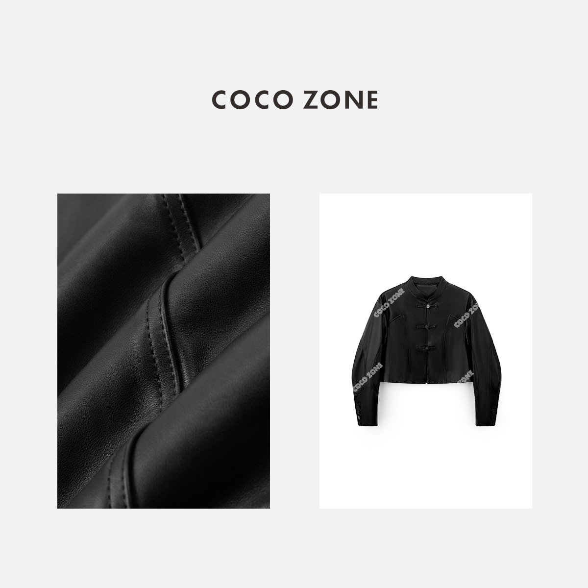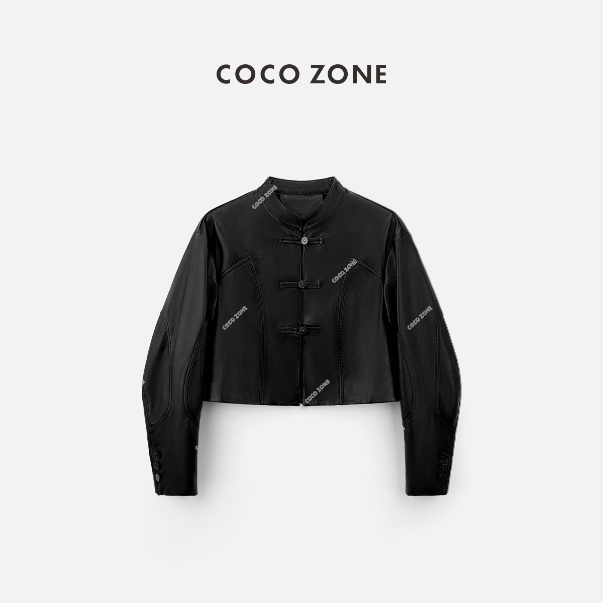 COCO ZONE 新中式国风盘口皮衣立领气质外套 CC2A0303