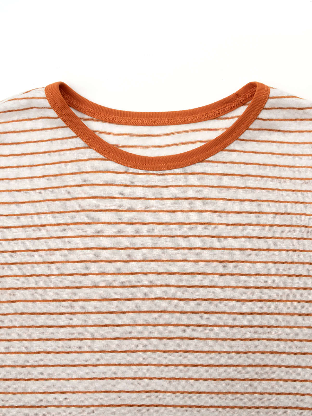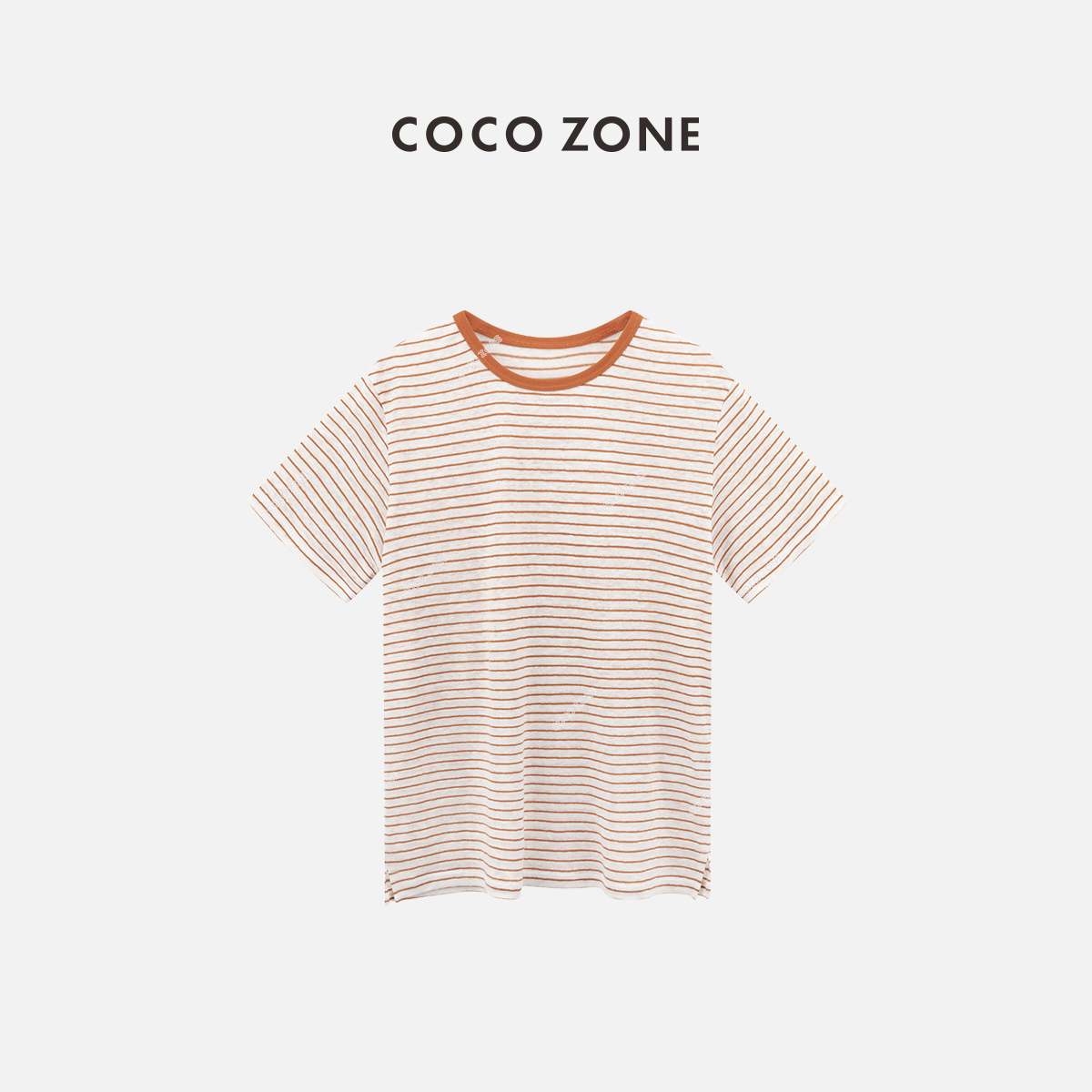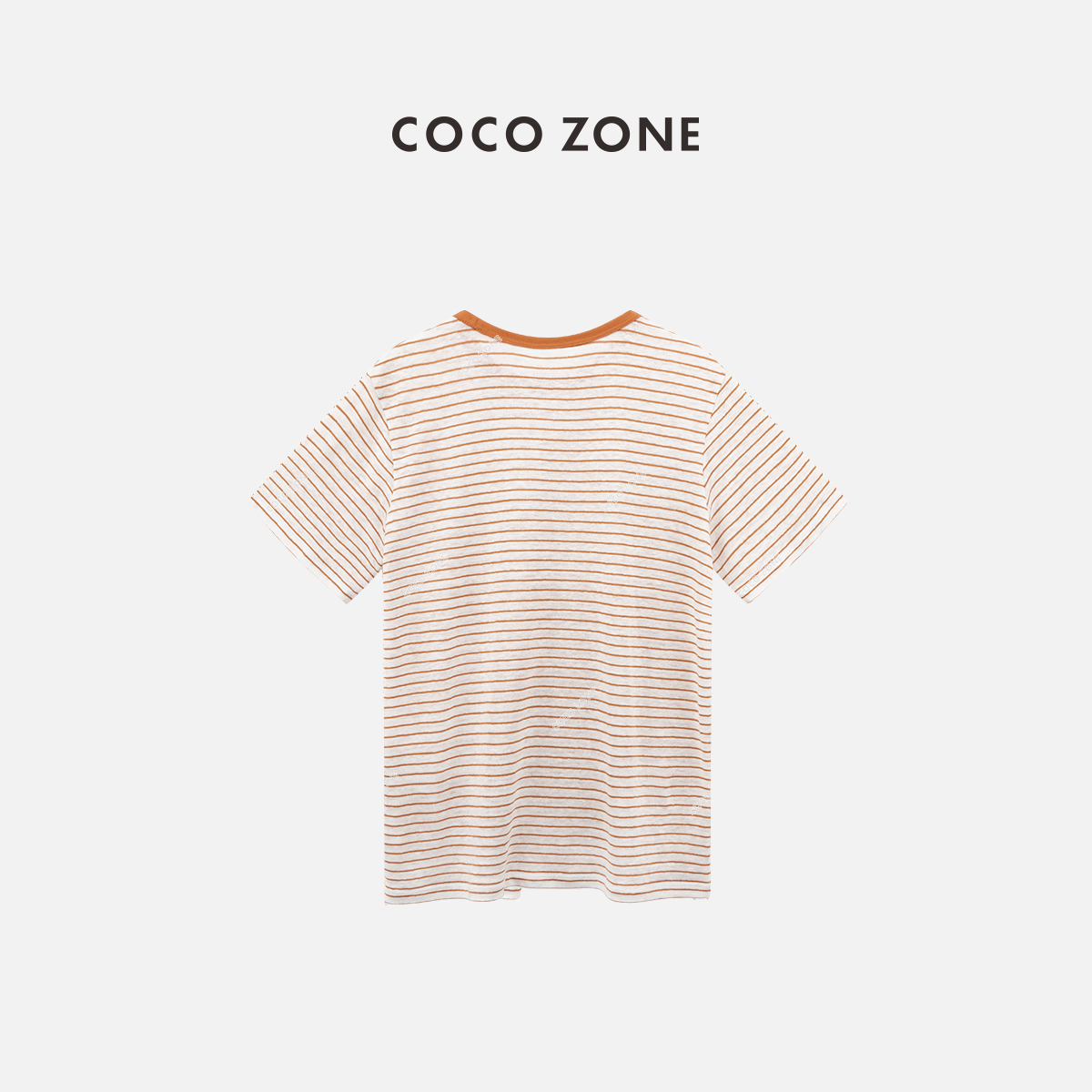 COCO ZONE“橘子”夏季时尚条纹短袖T恤复古撞色圆领修身显瘦上衣CC1B1089