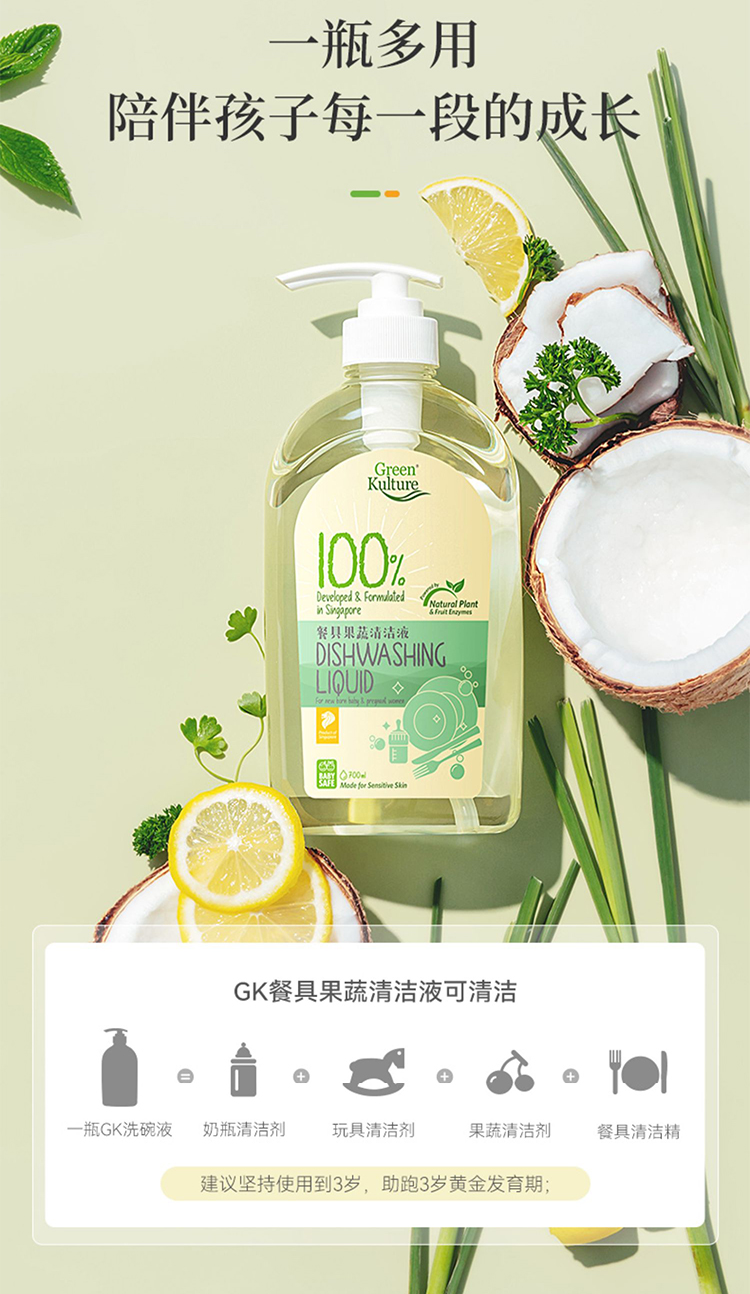 GreenKulture露力可进口婴儿奶瓶清洁剂果蔬清洗剂宝宝餐具洗洁精洗碗液