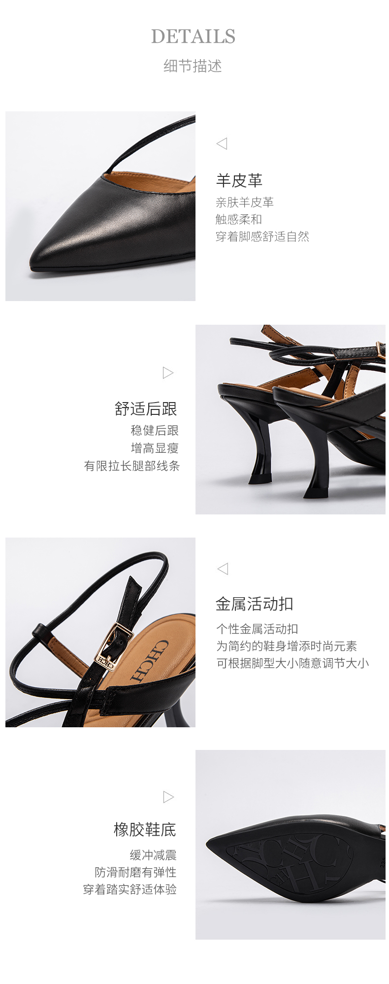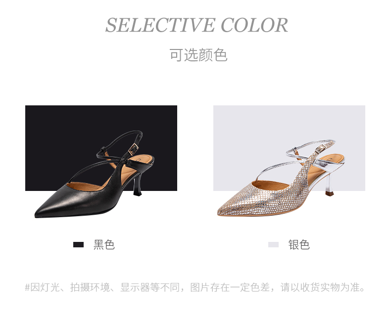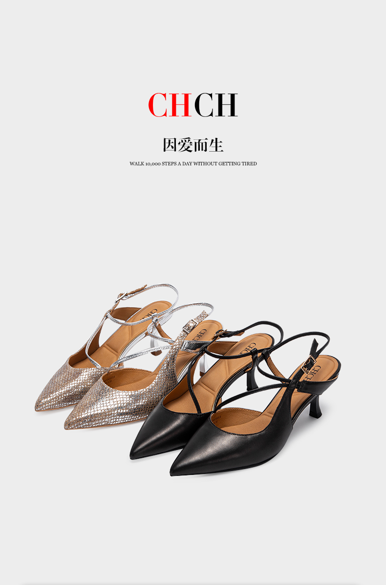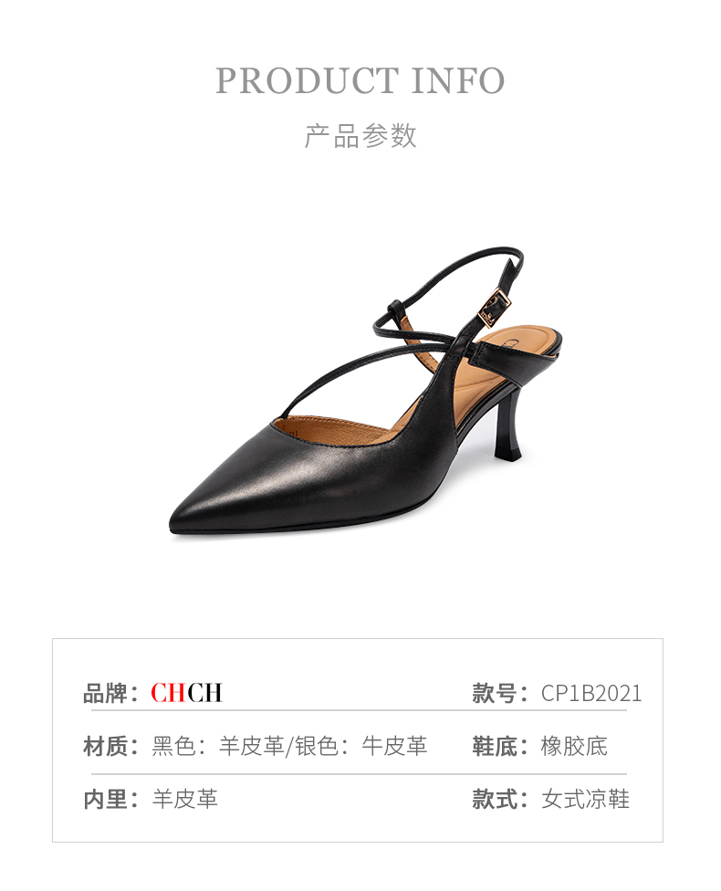 CHCH祈祈尖头包头凉鞋女2025夏季新款银色羊皮高跟浅口单鞋CP1B2021