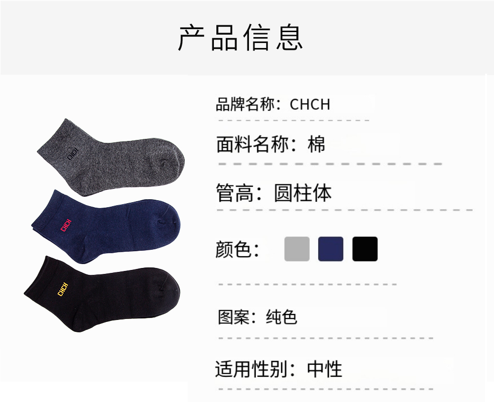 CHCH祈祈男士袜子单股纱精梳棉均码袜(不退不换,三件包邮)【袜子为透明塑料袋包装】