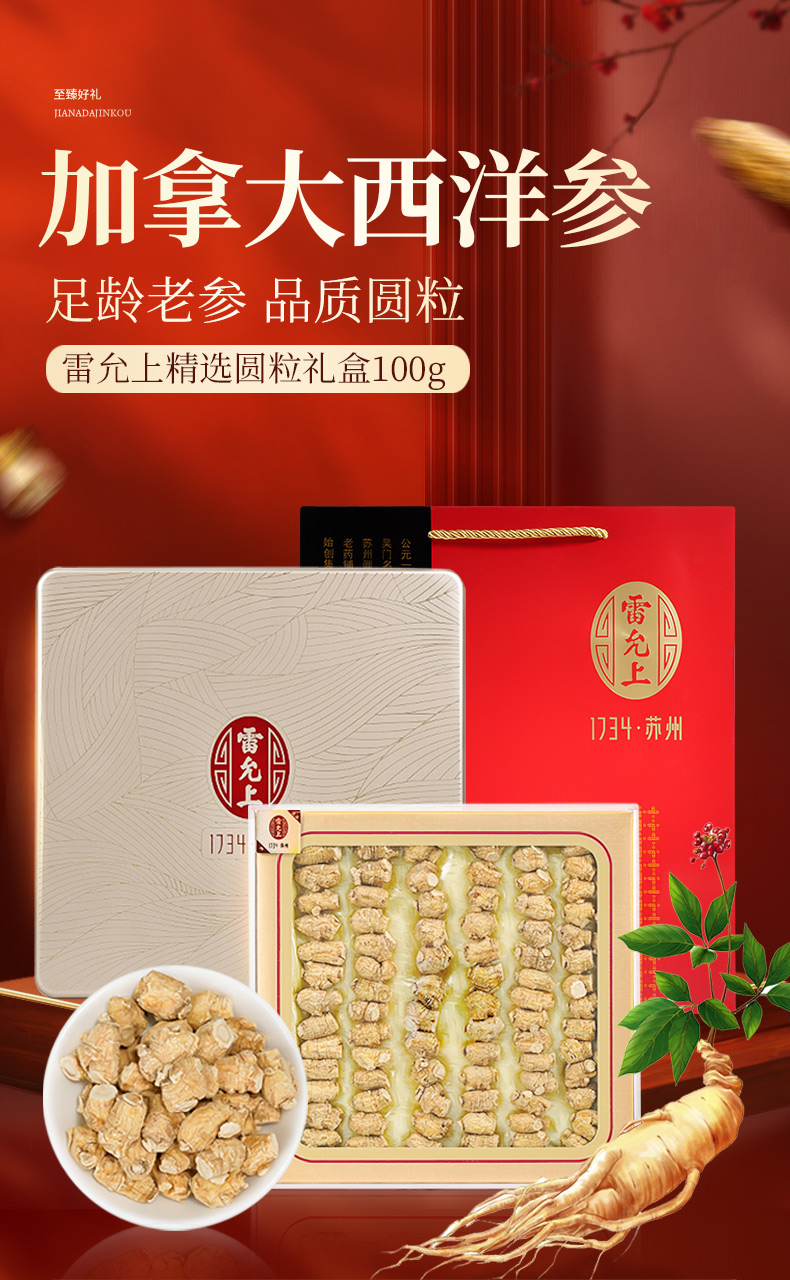 雷允上加拿大圆粒西洋参100g/盒(0.8g圆粒)